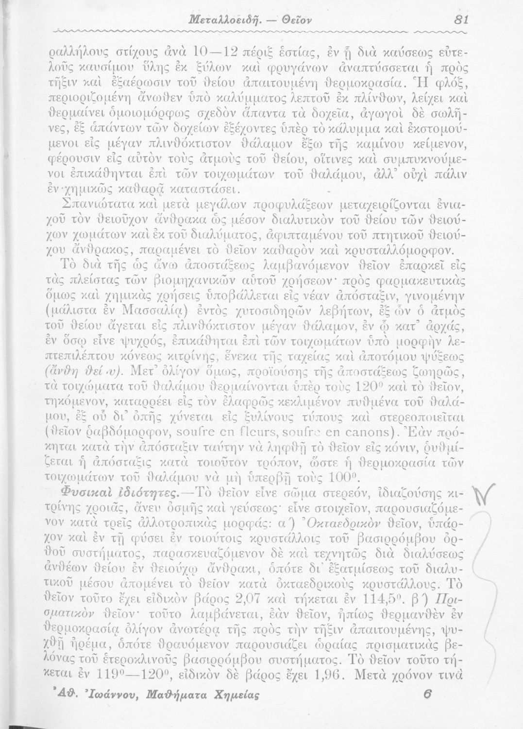 Σχολικό εγχειρίδιο Χημείας για τους μαθητές του Γυμνασίου. Παρουσιάζει μια συνολική επισκόπηση της Οργανικής και της Ανόργανης Χημείας, τις ιδιότητες των χημικών ενώσεων, των μέταλλα και των αμέταλλων.