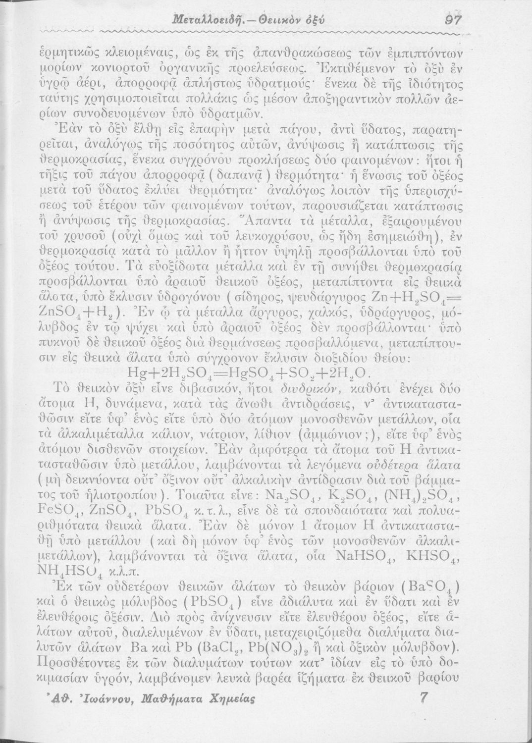 Μαθητικό βοήθημα Χημείας για τους υποψήφιους των Πανεπιστημίων και των Ανωτάτων Σχολών που εστιάζει στην Ανόργανη Χημεία και εξετάζει τα οξέα, τις βάσεις και άλατα, και τα μέταλλα και τα αμέταλλα.