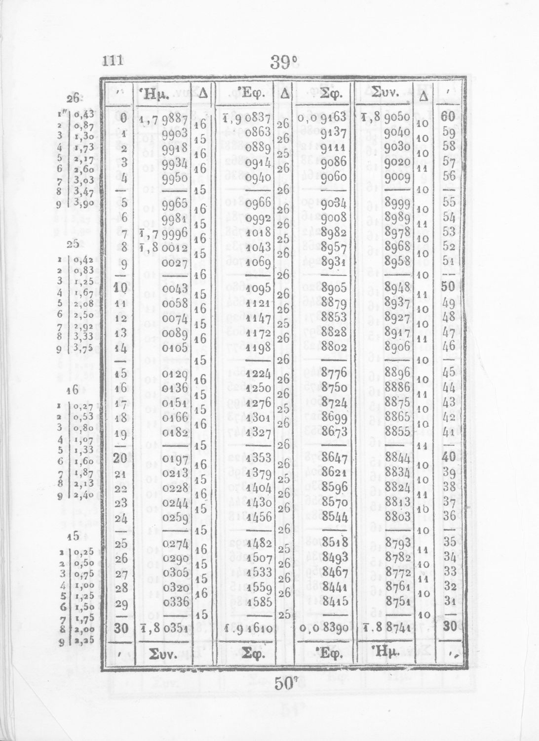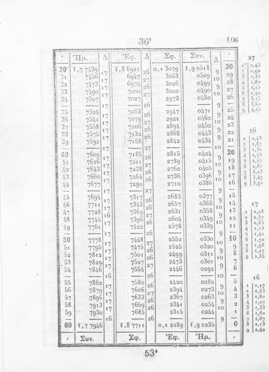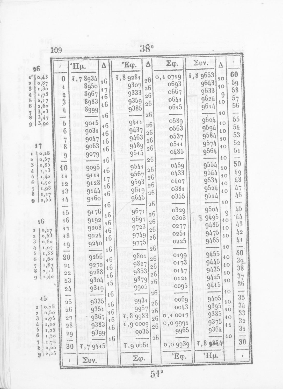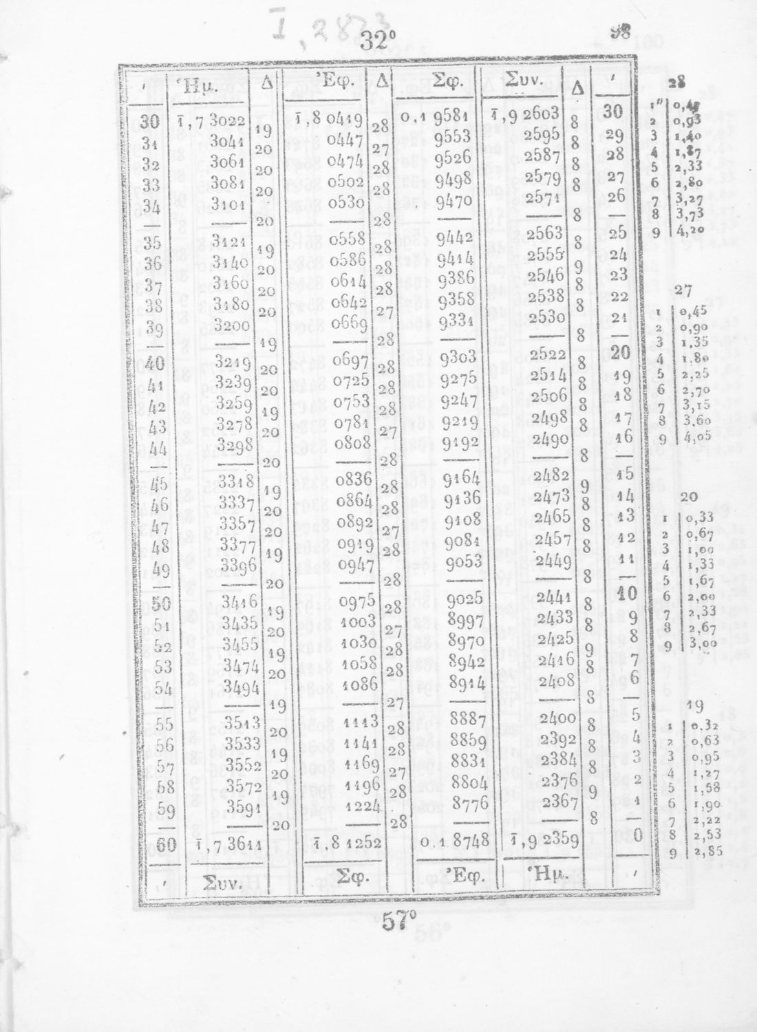 Τίτλος: Λογαριθμικοί Πίνακες Αριθμών και Τόξων, πλείστον τύπου και οδηγιών