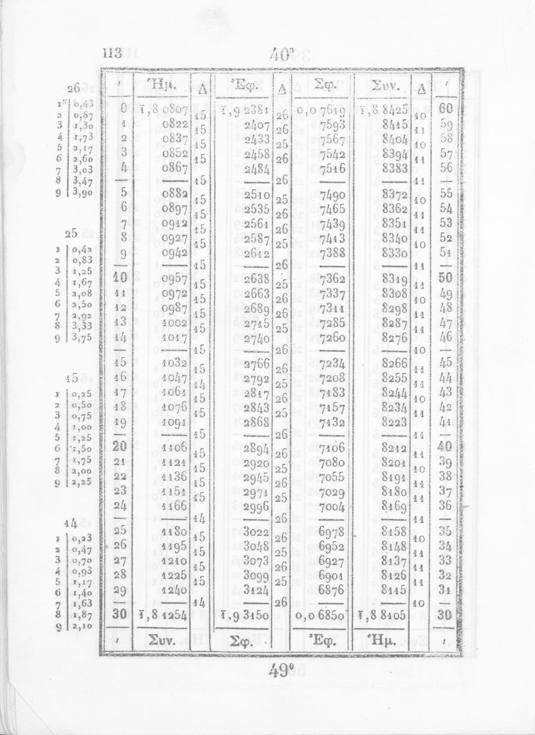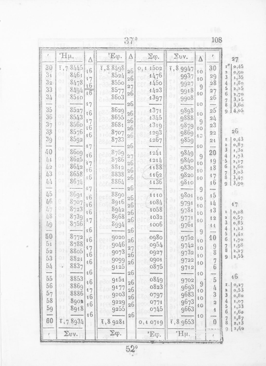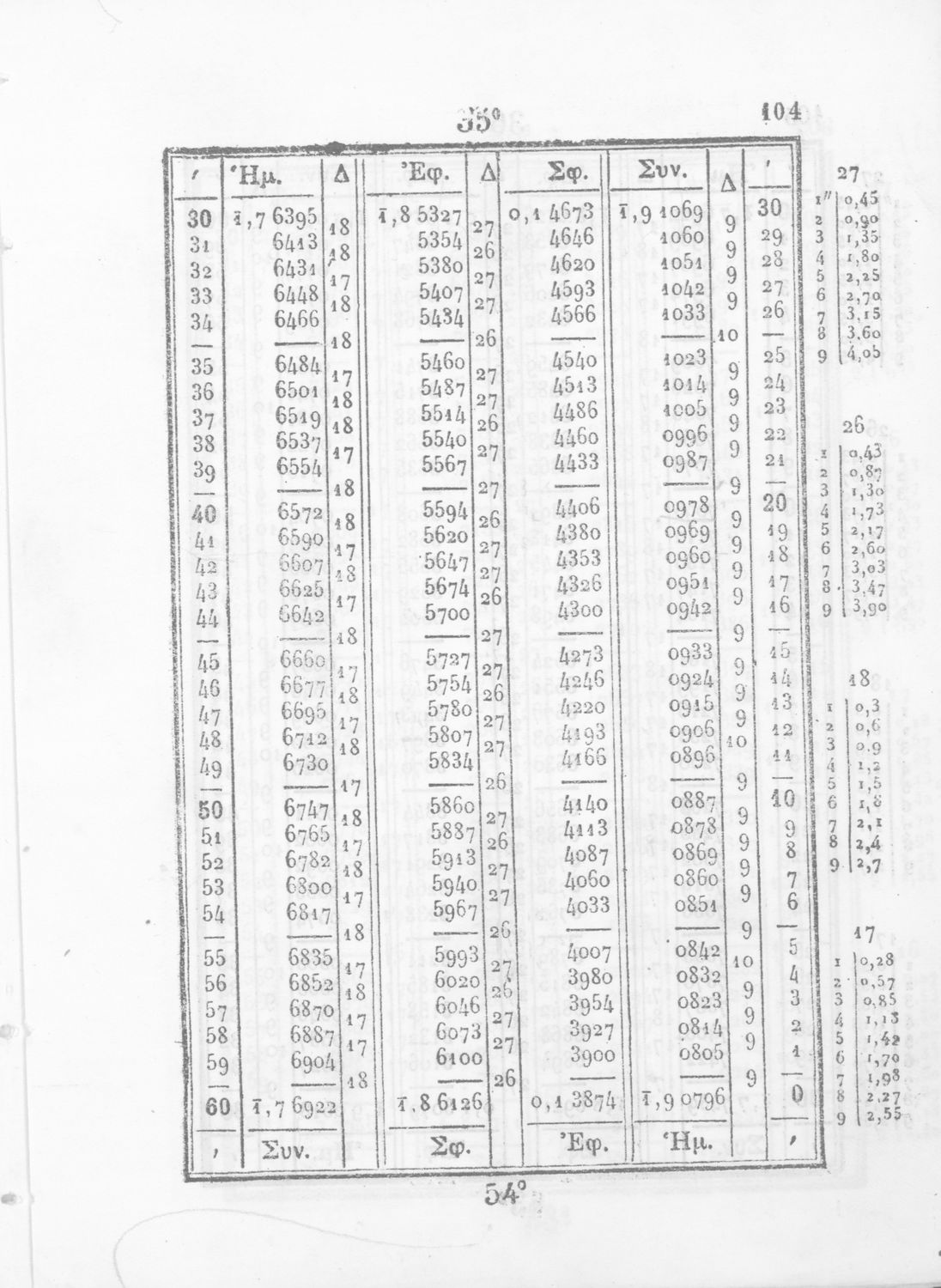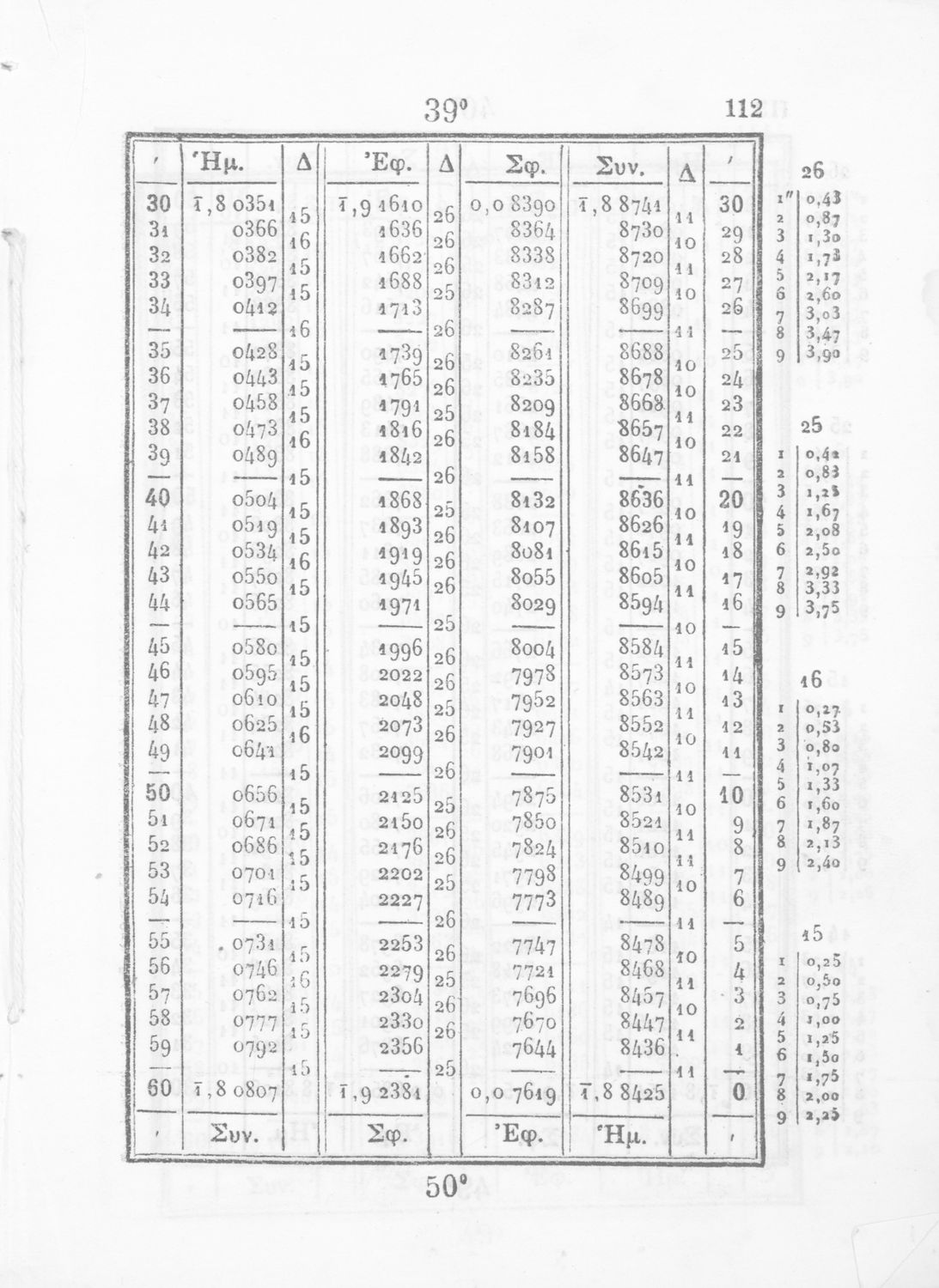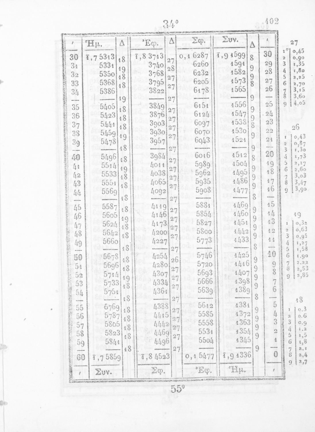 Τίτλος: Λογαριθμικοί Πίνακες Αριθμών και Τόξων, πλείστον τύπου και οδηγιών