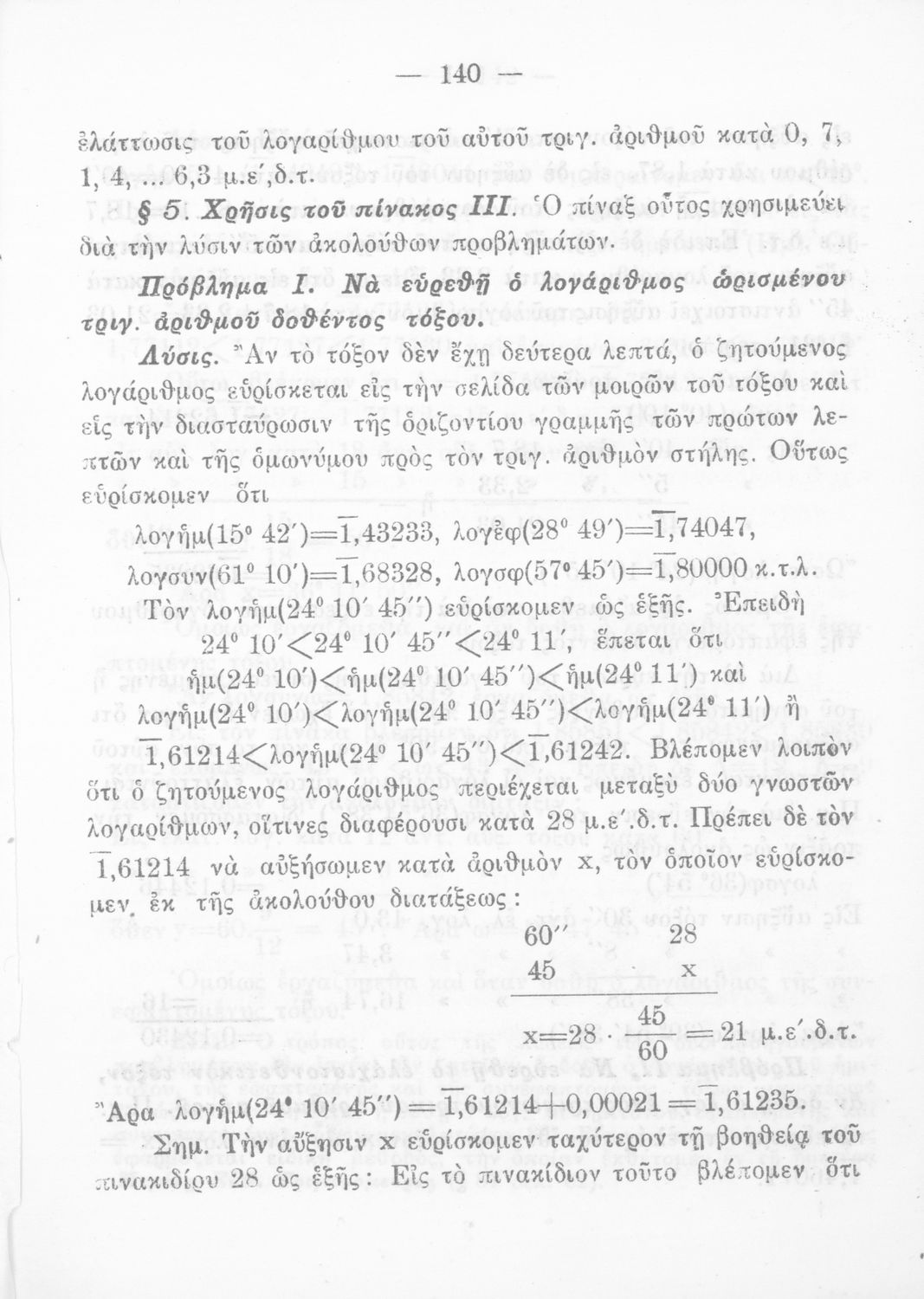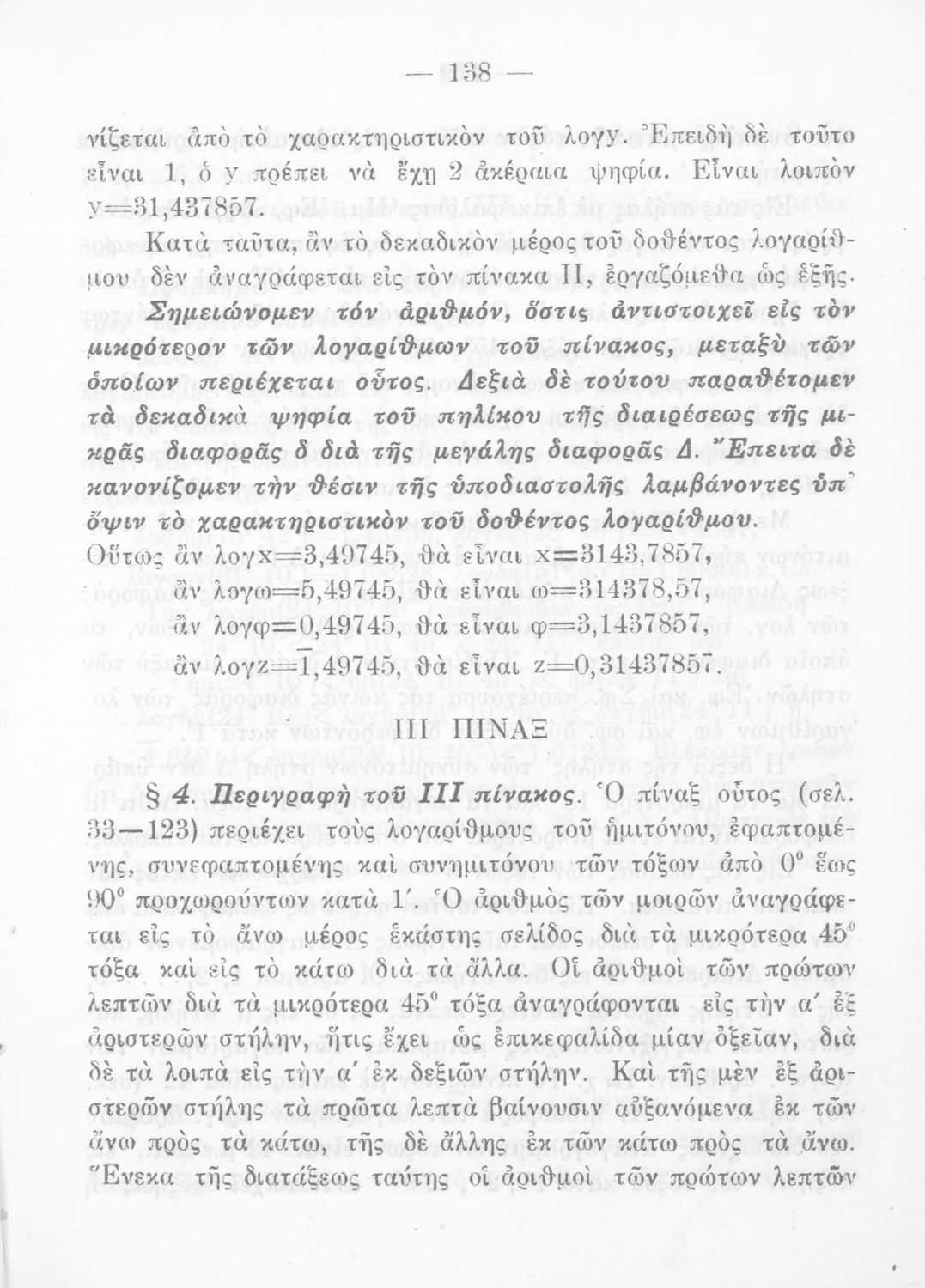 Μαθητικό βοήθημα το οποίο περιλαμβάνει λογαριθμικούς πίνακες των αριθμών από το 1 έως το 1000 και τους λογάριθμους των τεσσάρων κυριοτέρων τριγωνομετρικών αριθμών και τόξων.