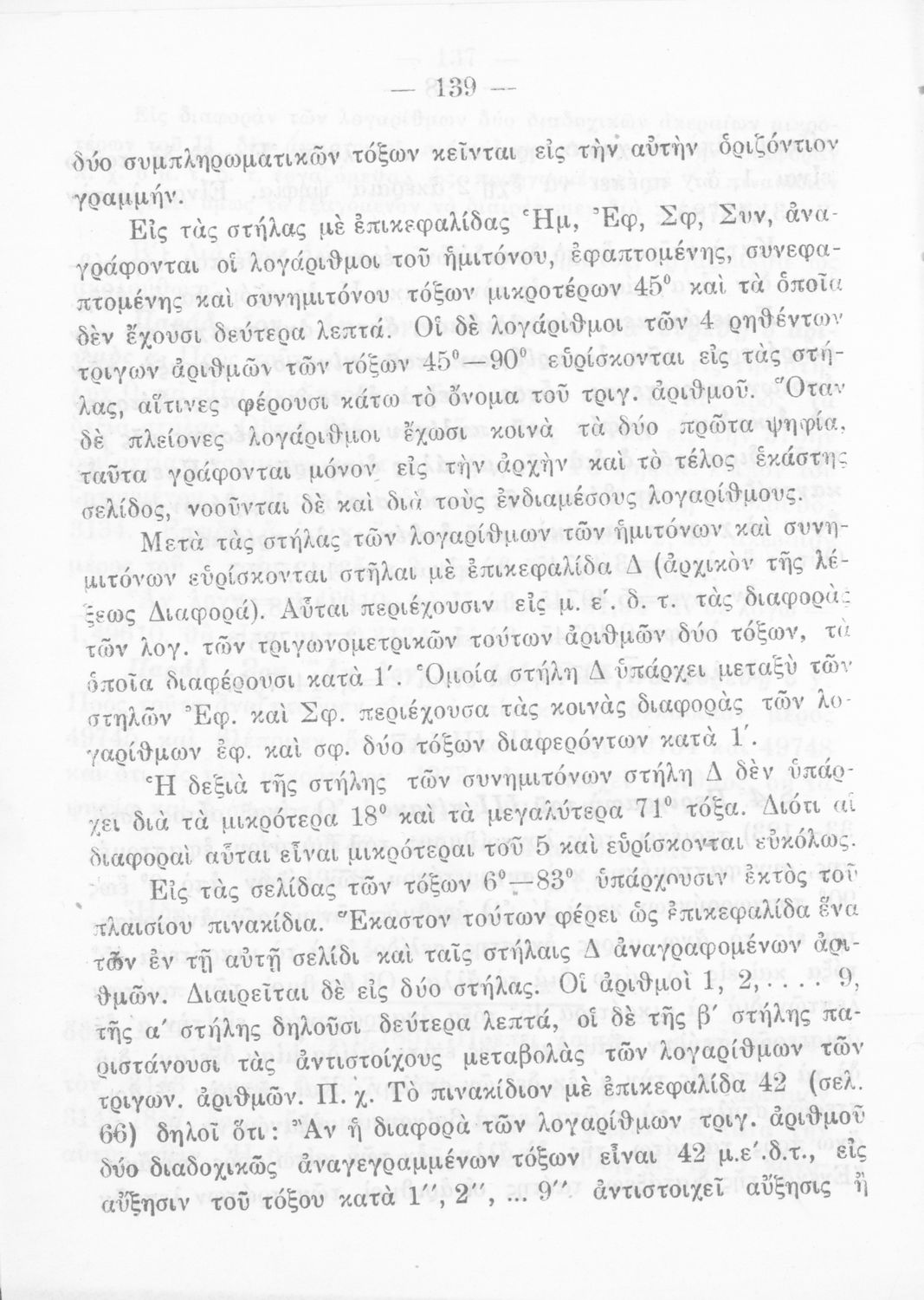 Τίτλος: Λογαριθμικοί Πίνακες Αριθμών και Τόξων, πλείστον τύπου και οδηγιών