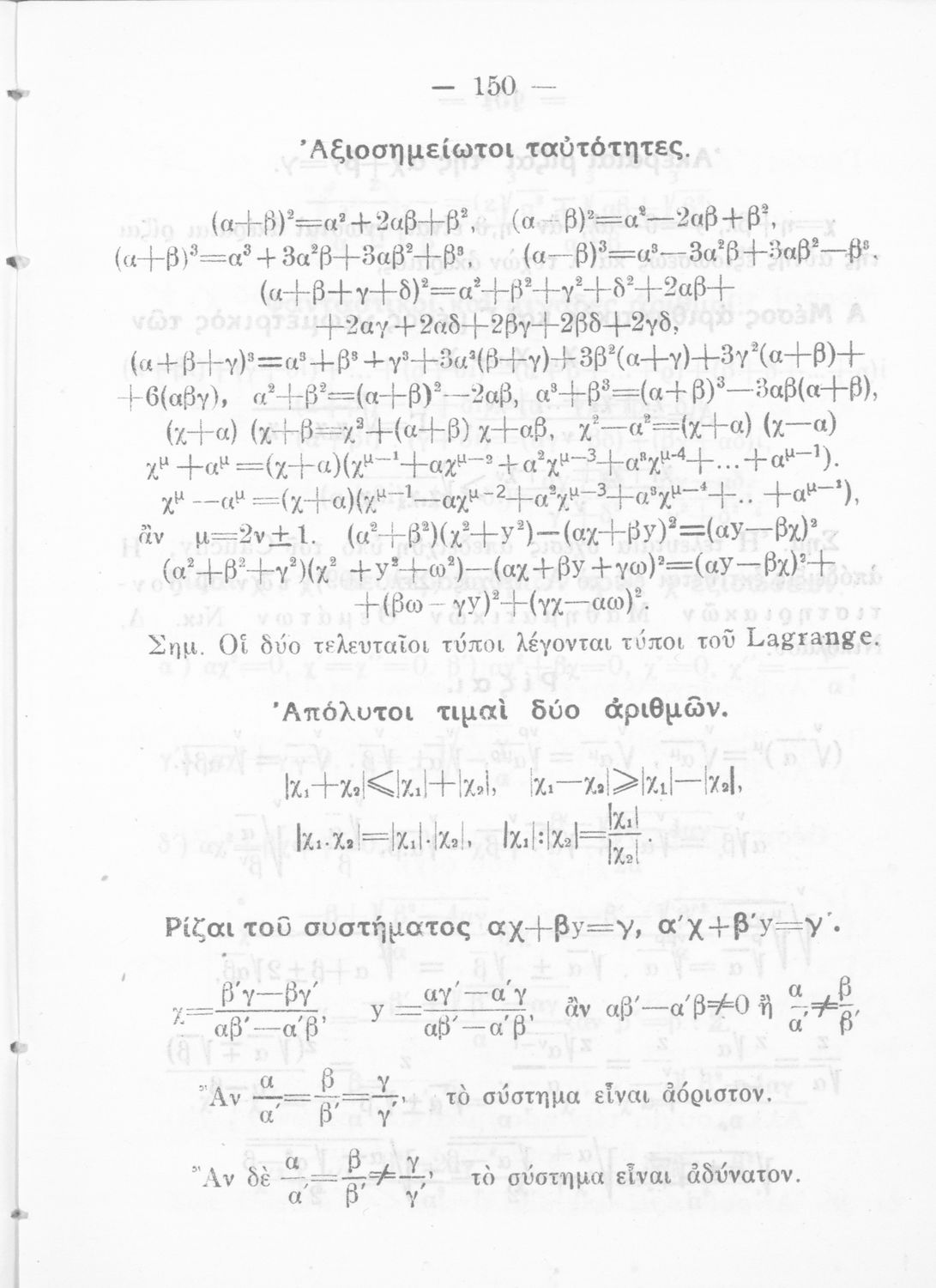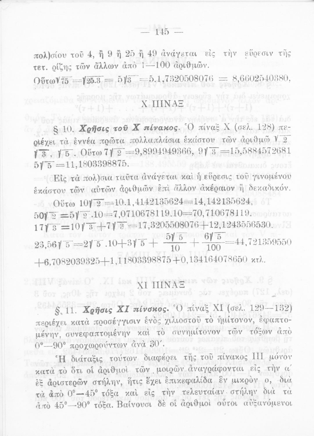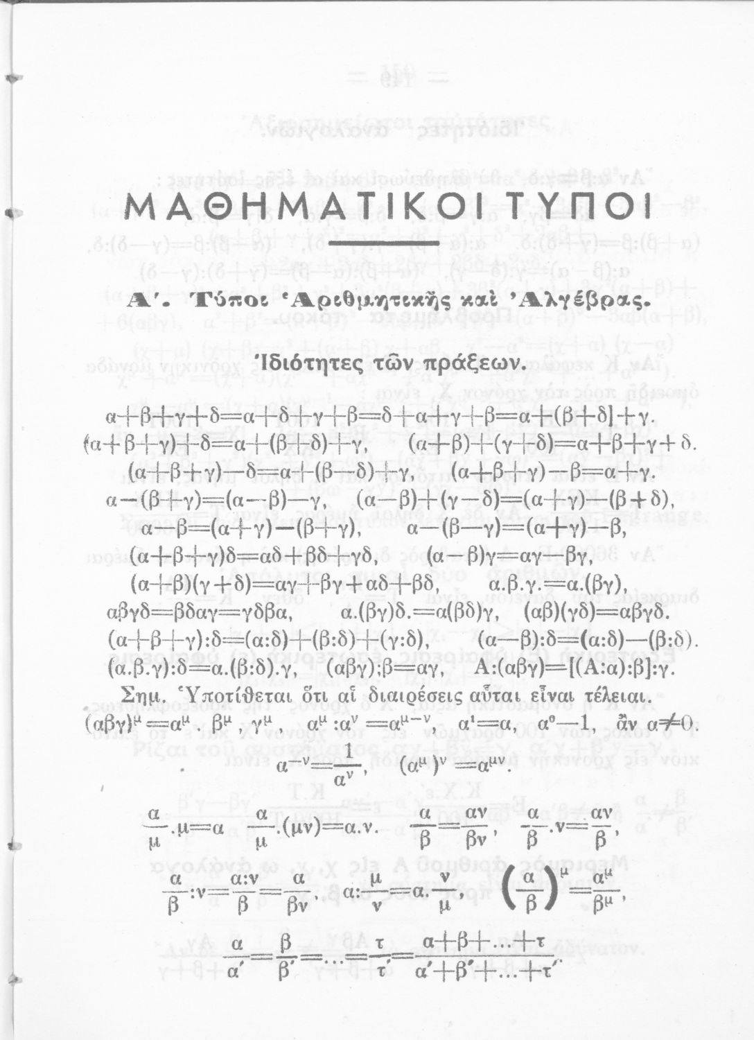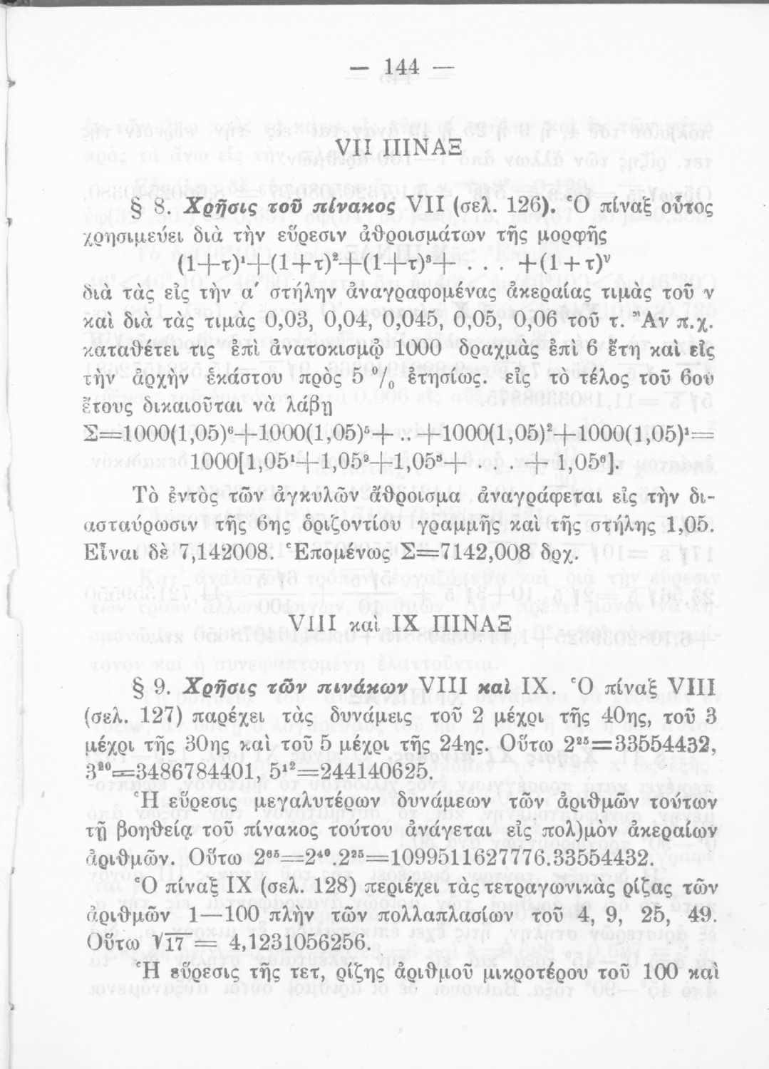 Μαθητικό βοήθημα που περιέχει πίνακες με λογαριθμικούς και τριγωνομετρικούς αριθμούς των τόξων, πίνακες δυνάμεων και πίνακες μετατροπών.