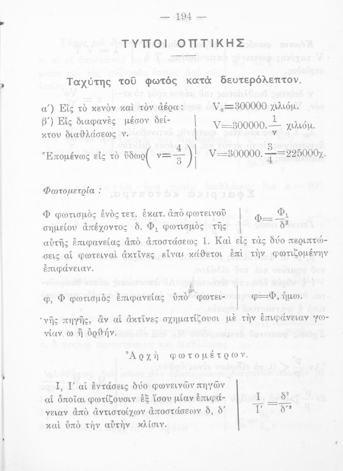 Βαθμίδα εκπαίδευσης: Δευτεροβάθμια Τάξη: Γυμνάσιο / Λύκειο Μάθημα: Μαθηματικά Γλώσσα: Καθαρεύουσα Παρουσίαση περιεχομένου: Μαθητικό βοήθημα το οποίο περιλαμβάνει λογαριθμικούς πίνακες των αριθμών από το 1 έως το 1000 και τους λογάριθμους των τεσσάρων κυριοτέρων τριγωνομετρικών αριθμών και τόξων. |