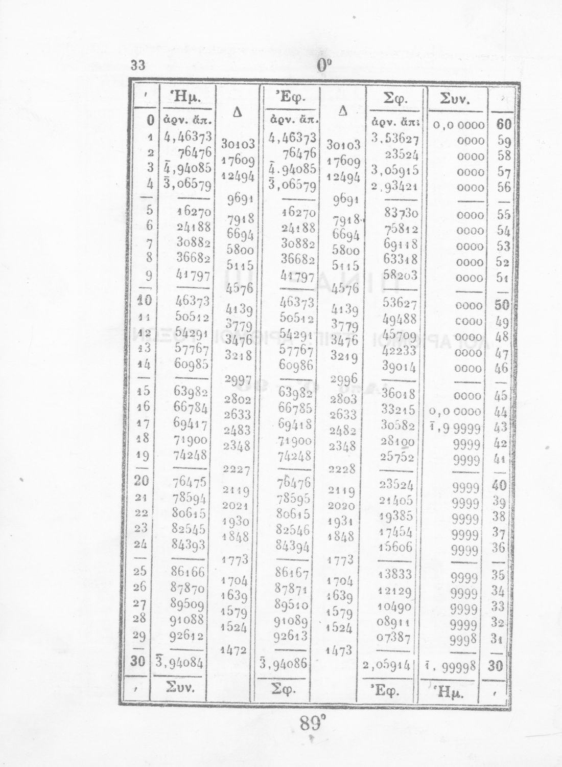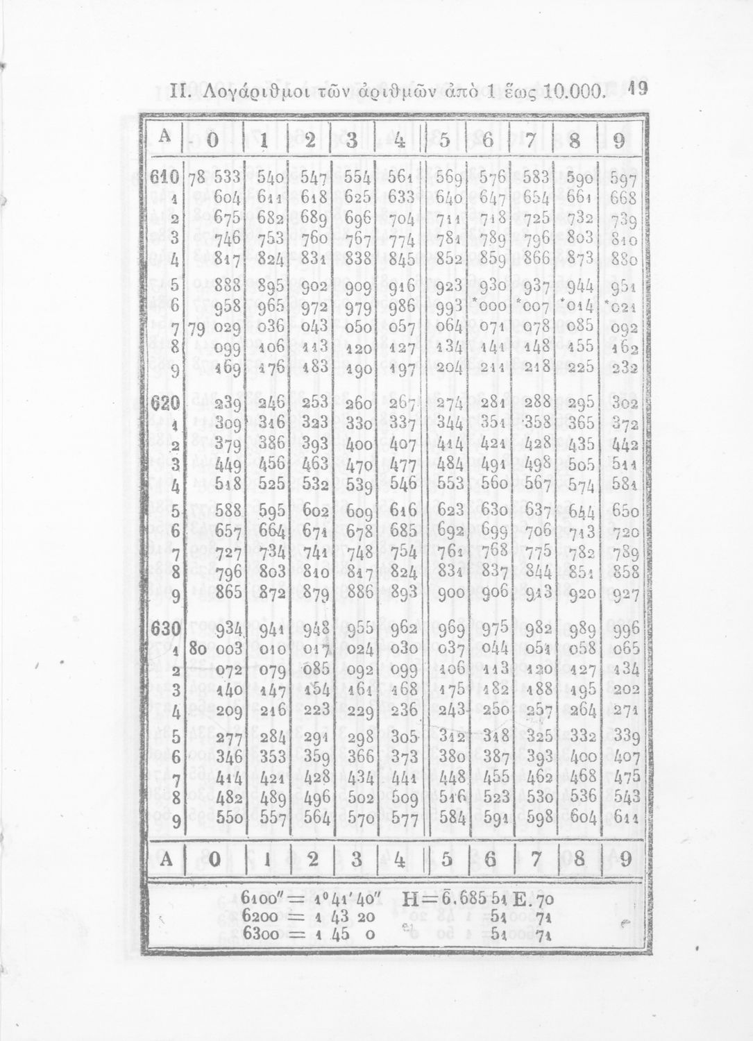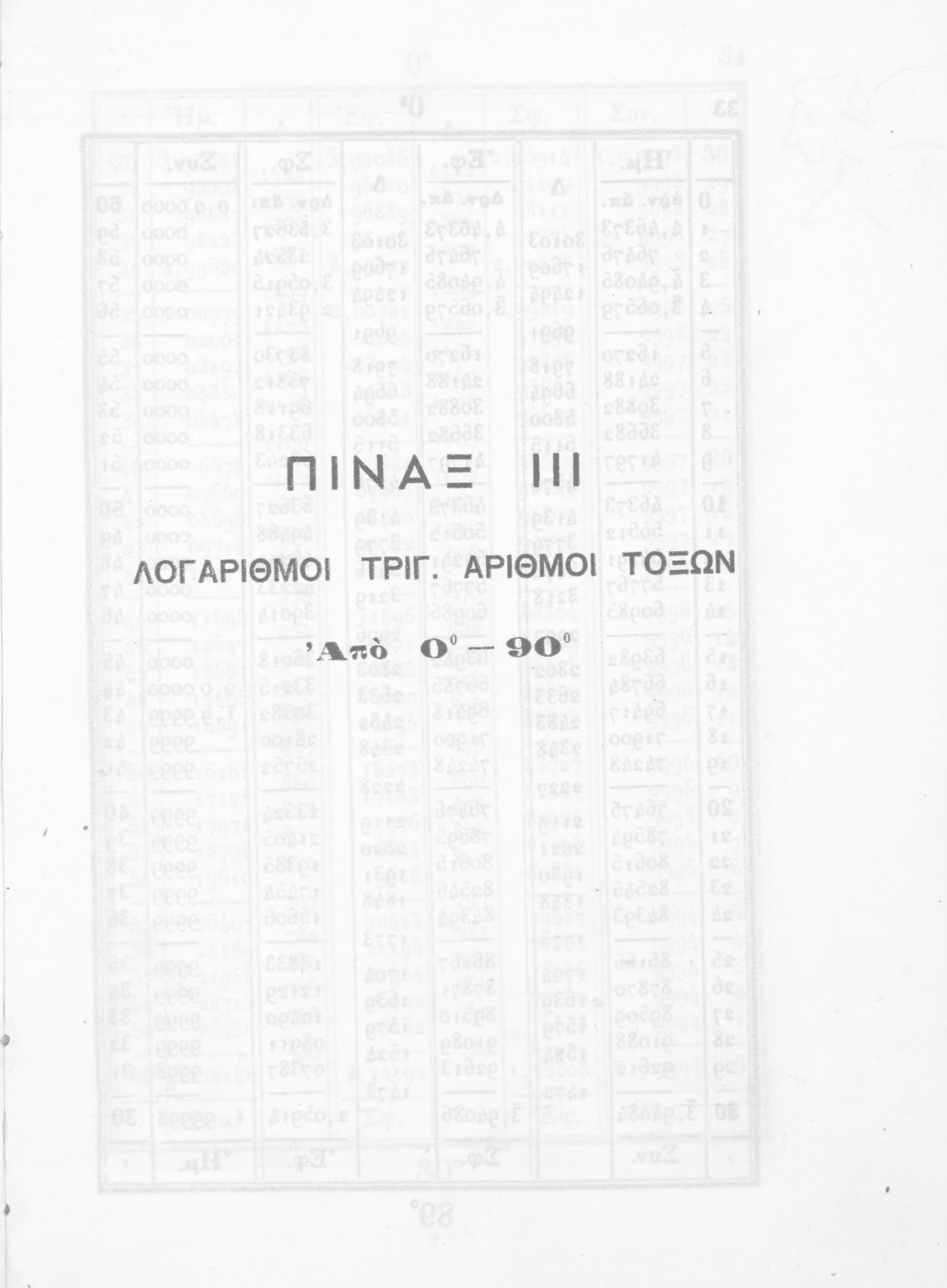 Τίτλος: Λογαριθμικοί Πίνακες Αριθμών και Τόξων, πλείστον τύπου και οδηγιών