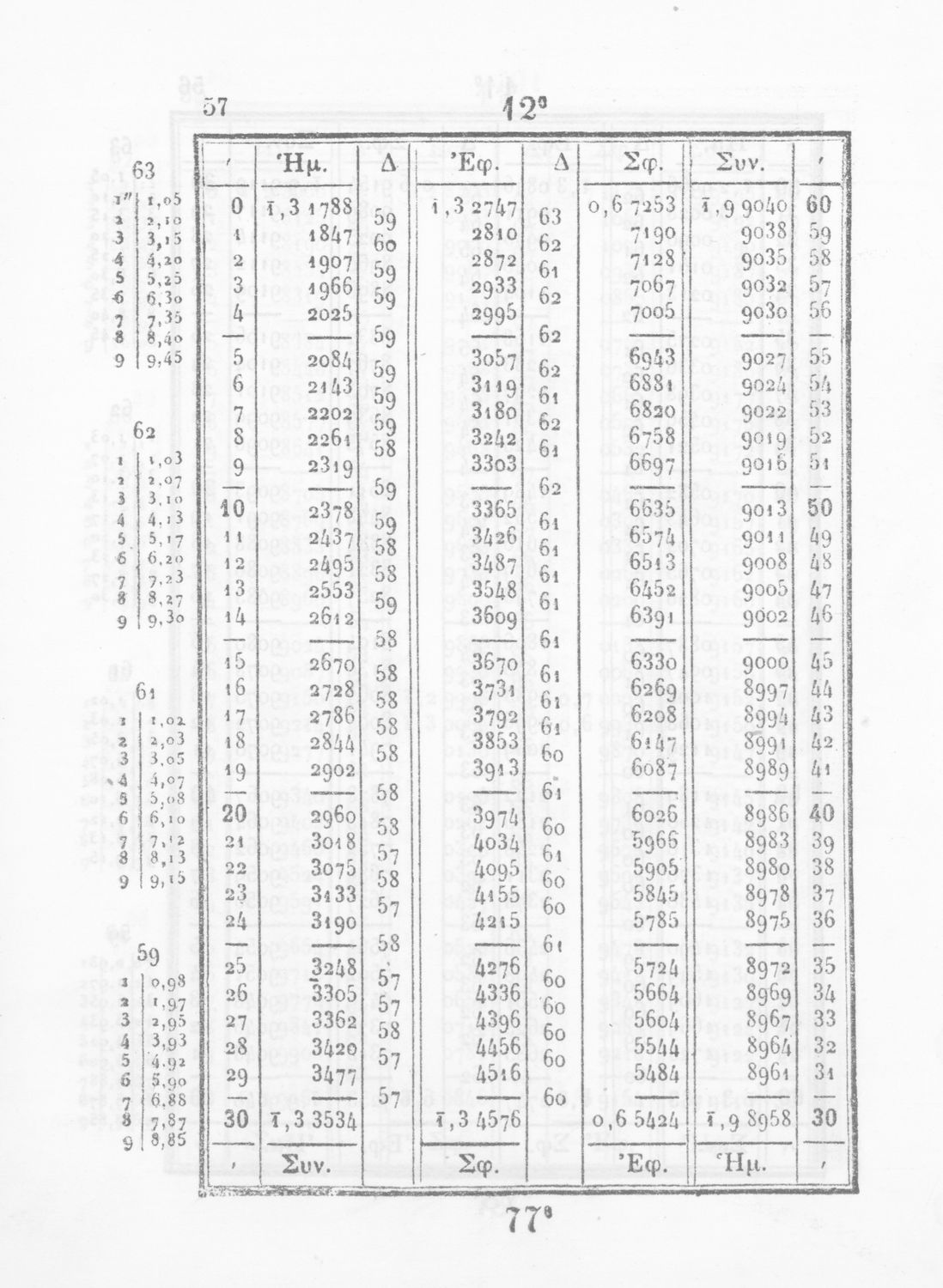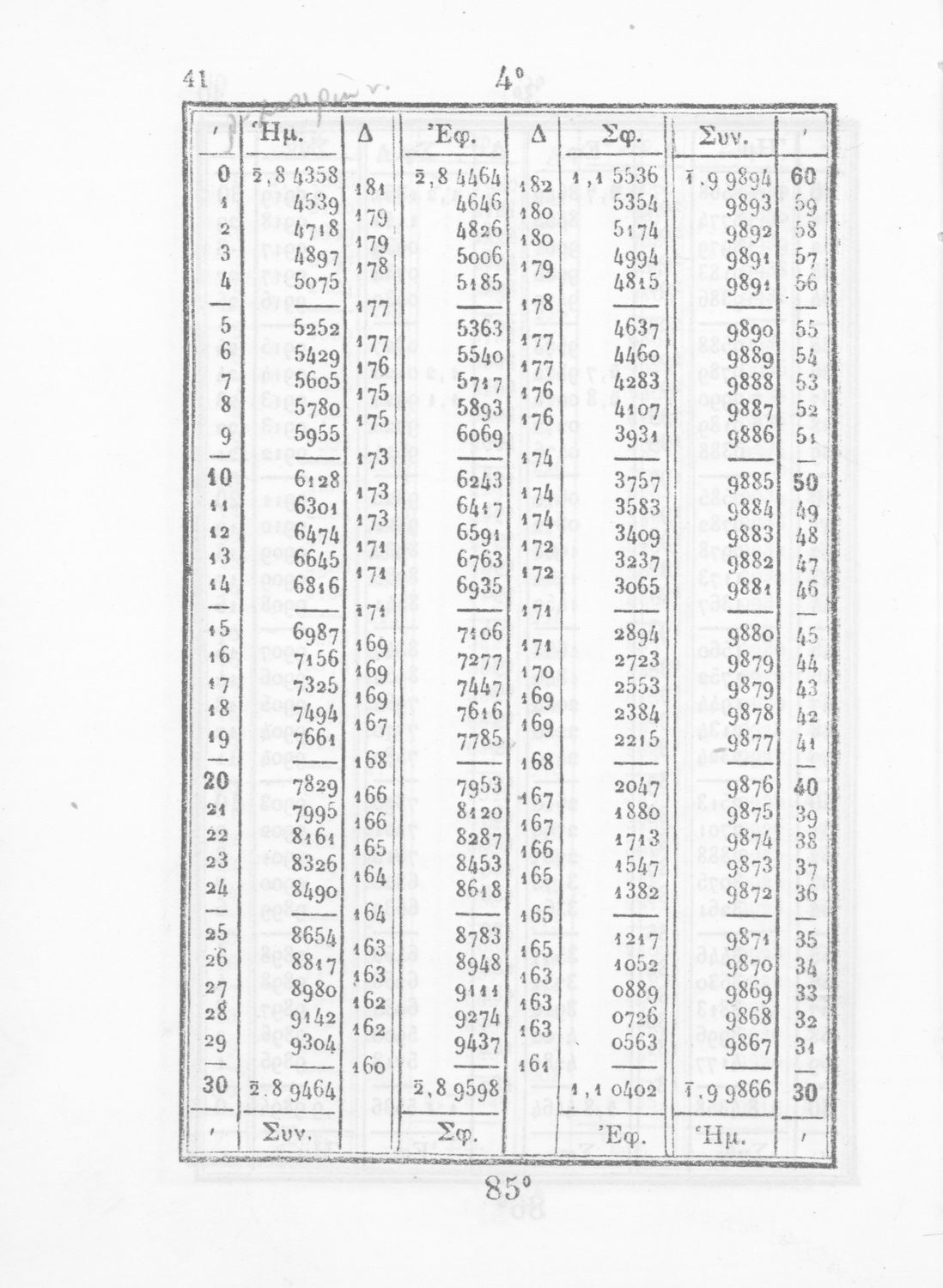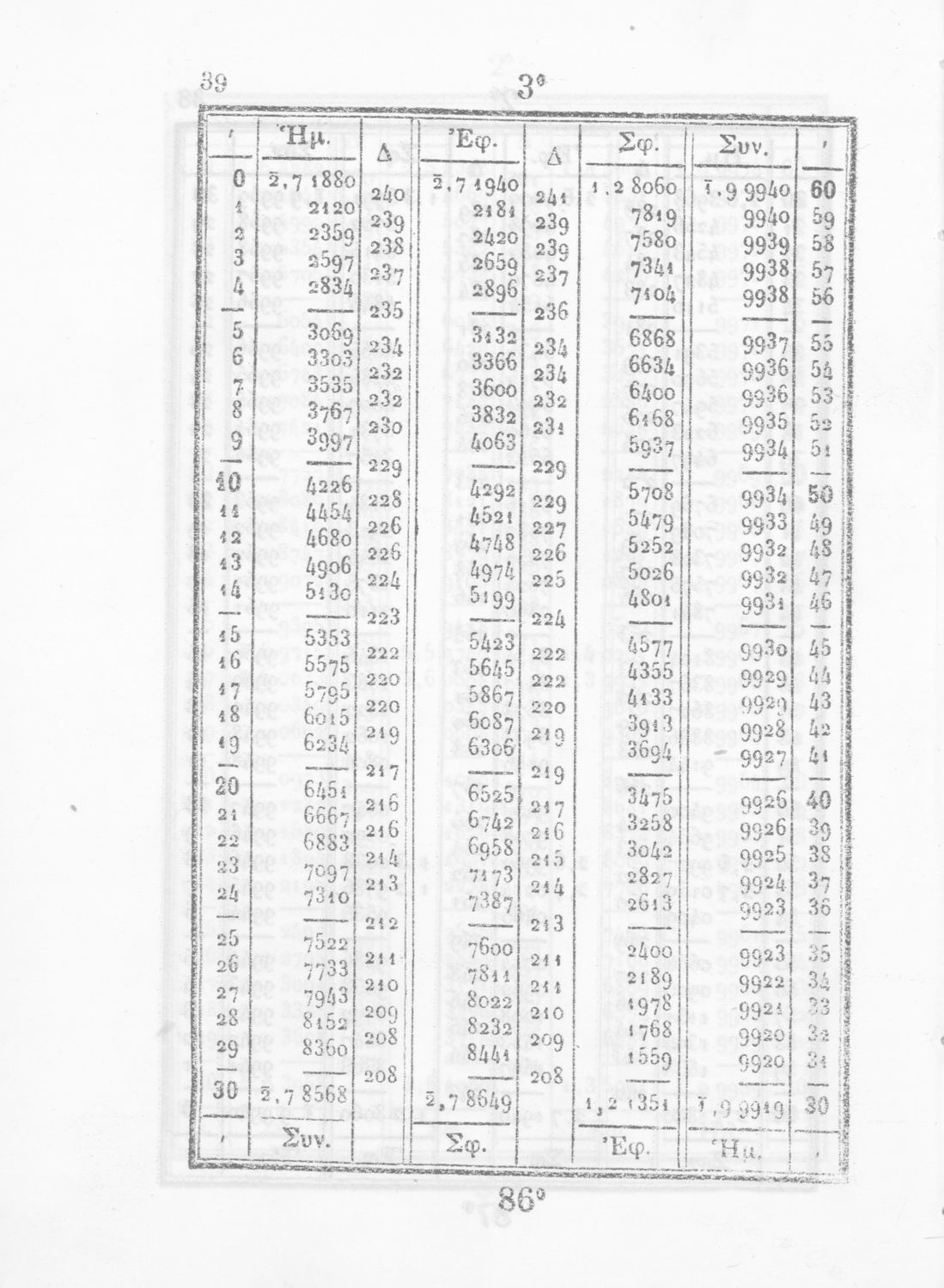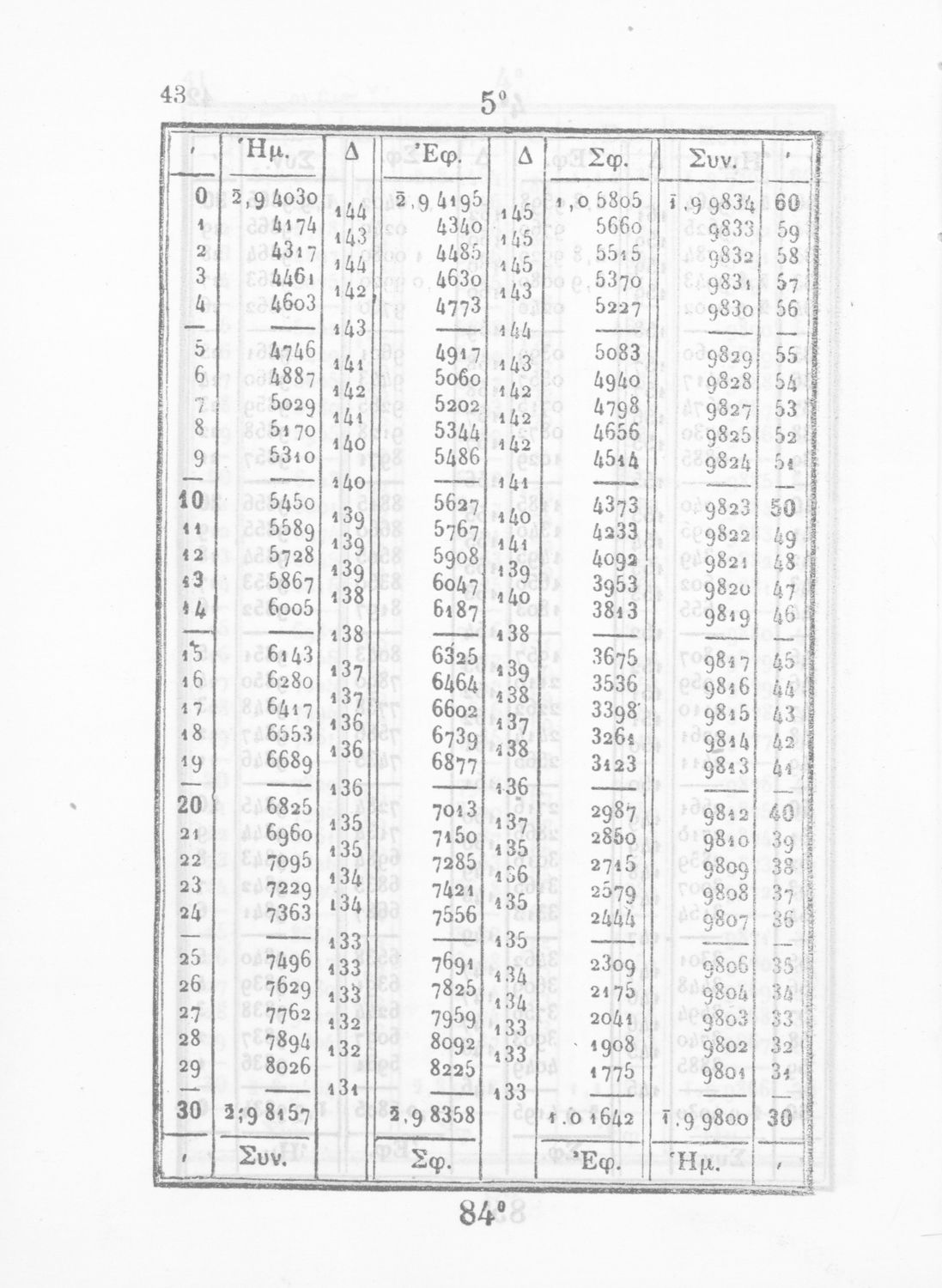 Τίτλος: Λογαριθμικοί Πίνακες Αριθμών και Τόξων, πλείστον τύπου και οδηγιών