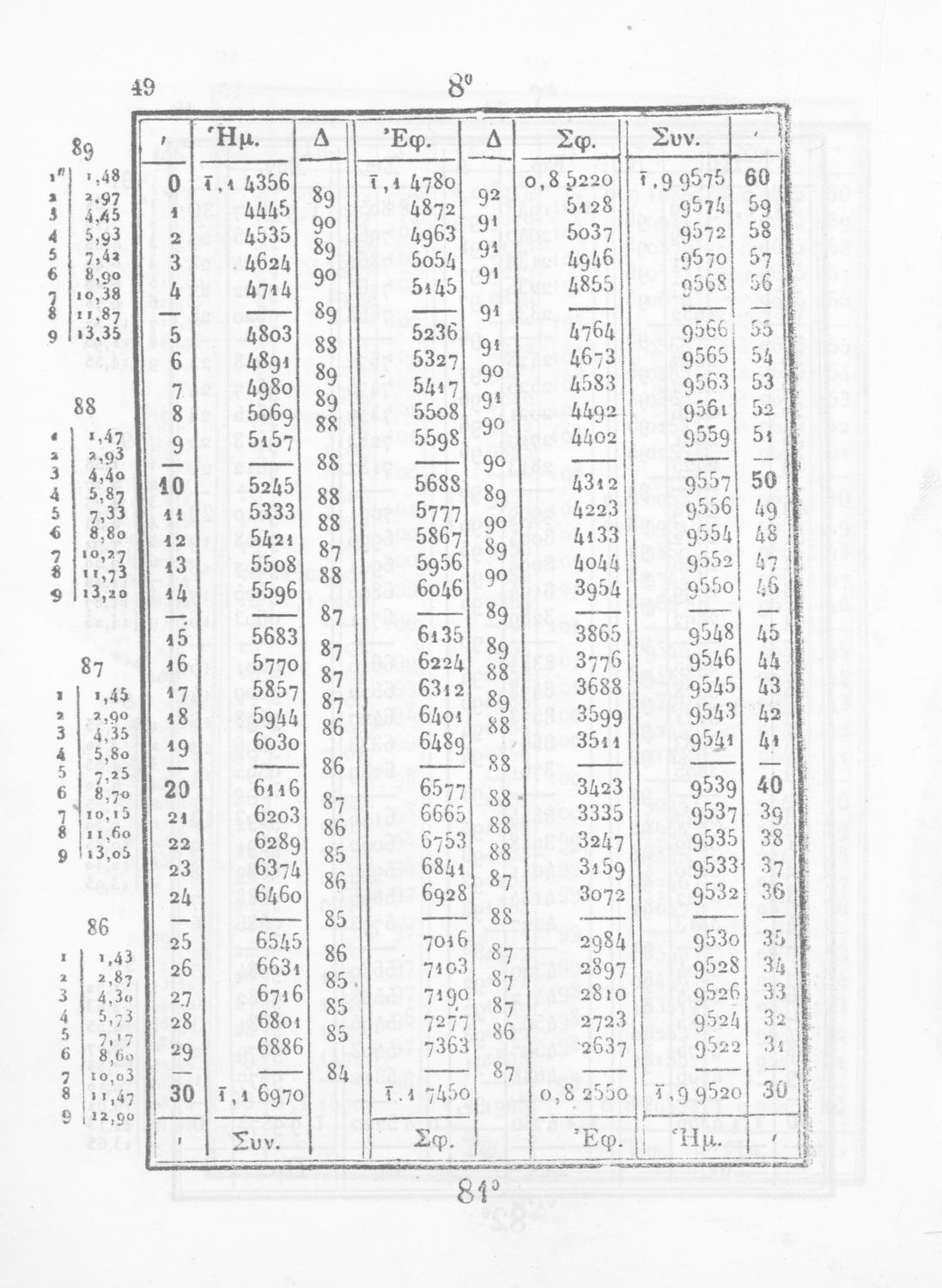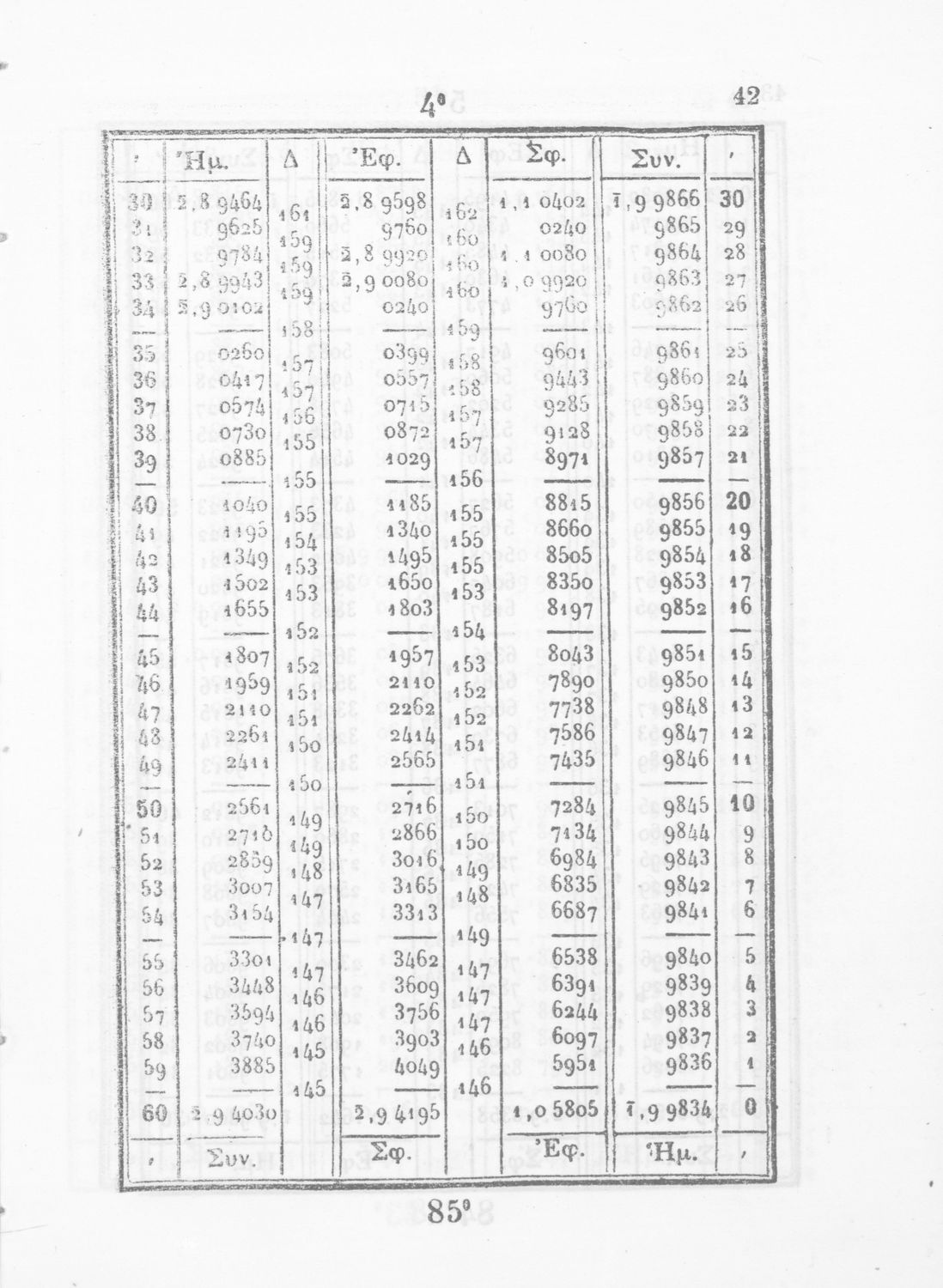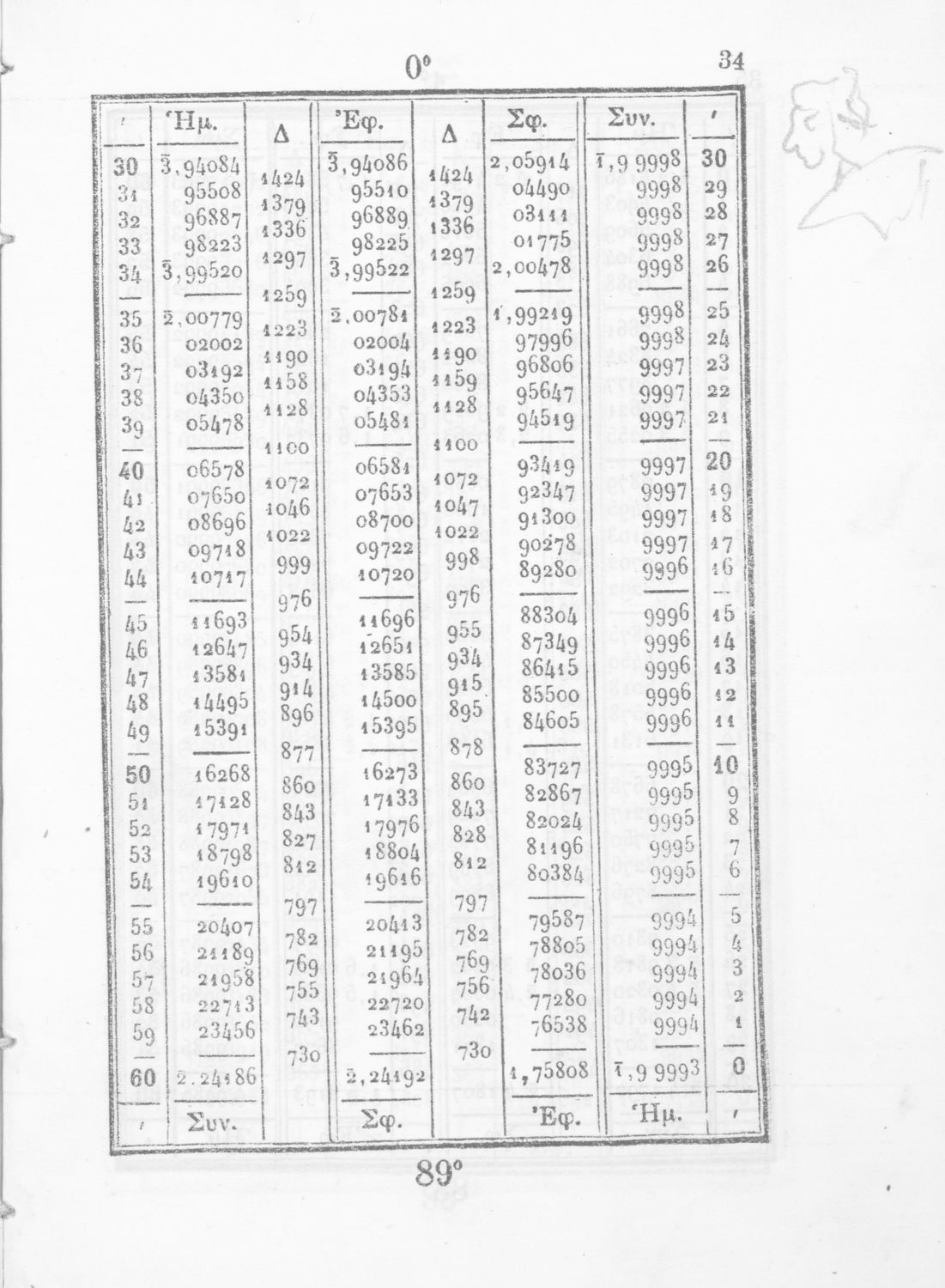 Τίτλος: Λογαριθμικοί Πίνακες Αριθμών και Τόξων, πλείστον τύπου και οδηγιών