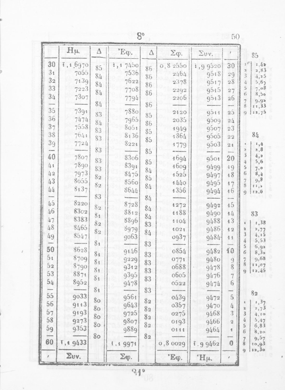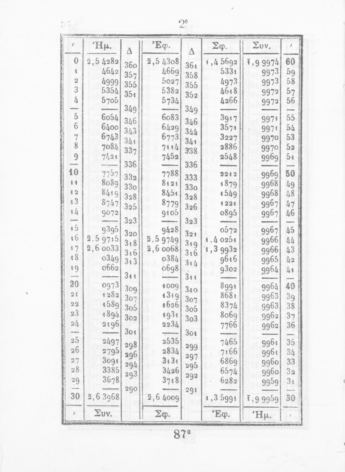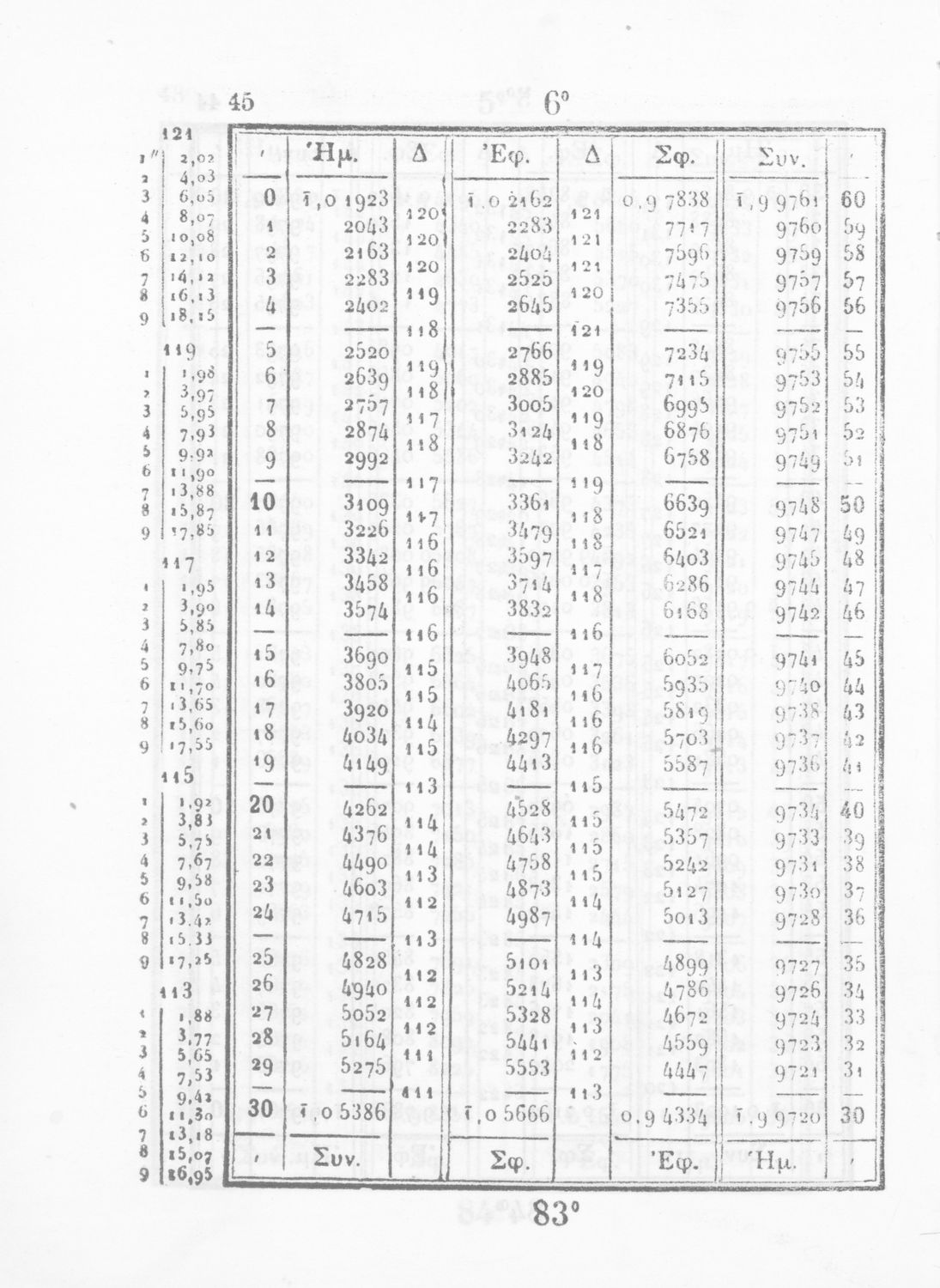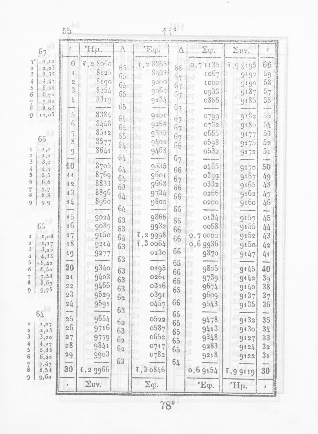 Τίτλος: Λογαριθμικοί Πίνακες Αριθμών και Τόξων, πλείστον τύπου και οδηγιών