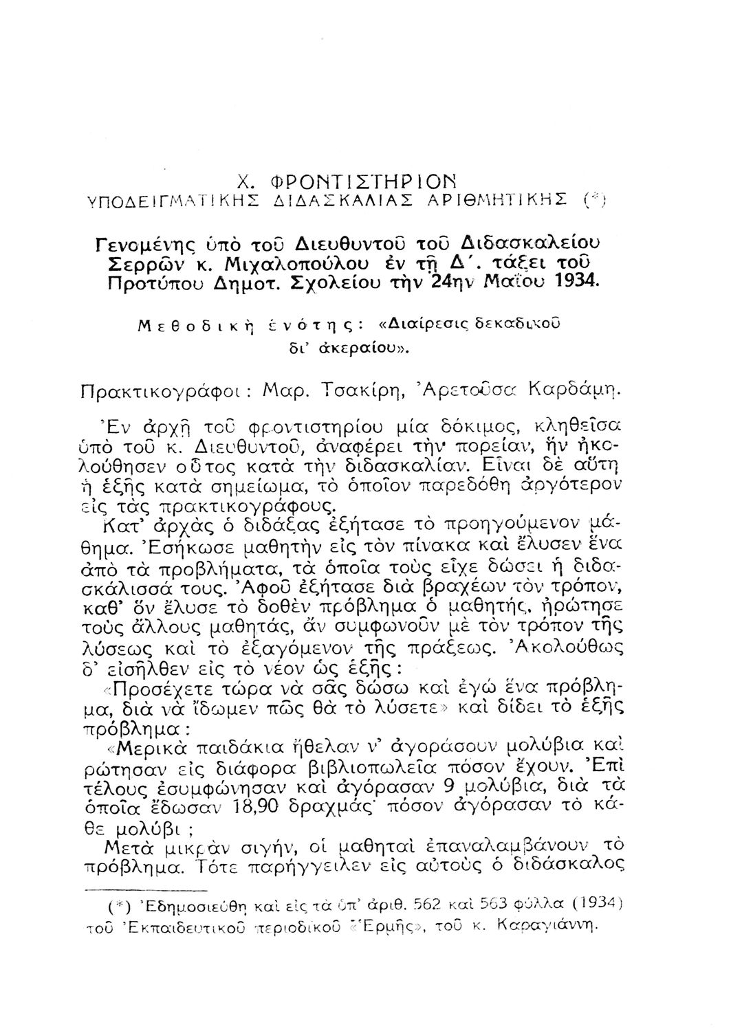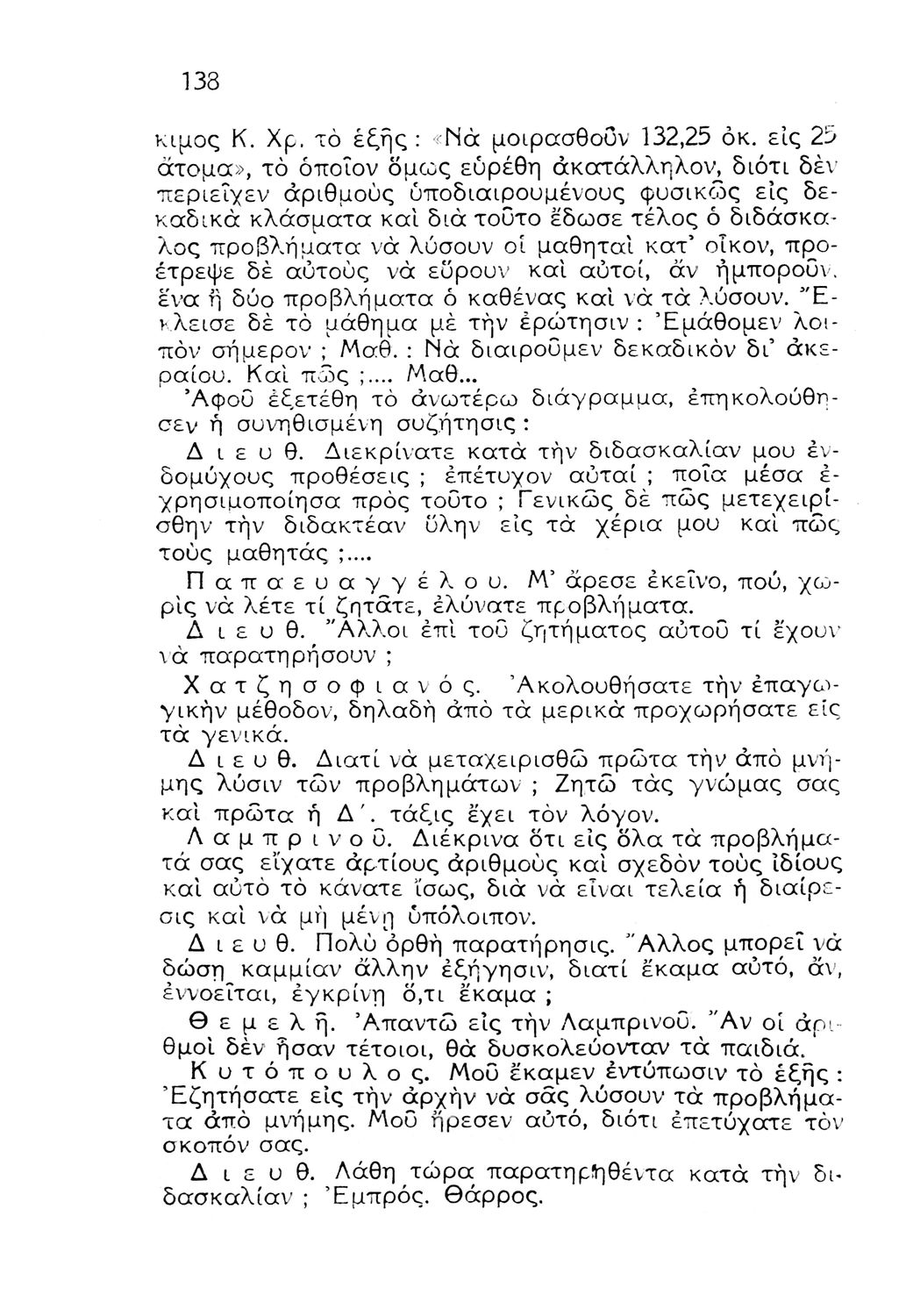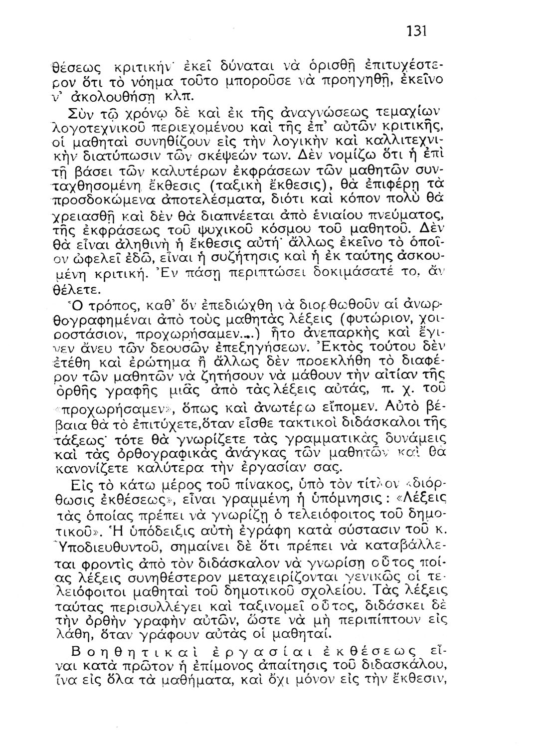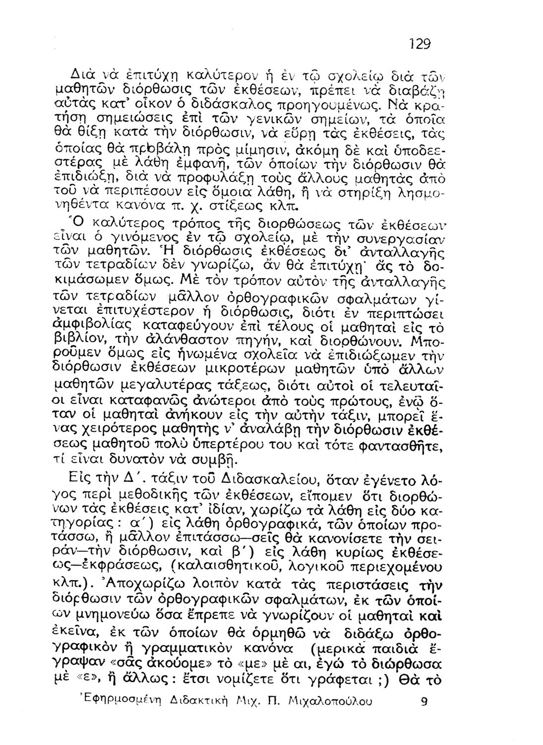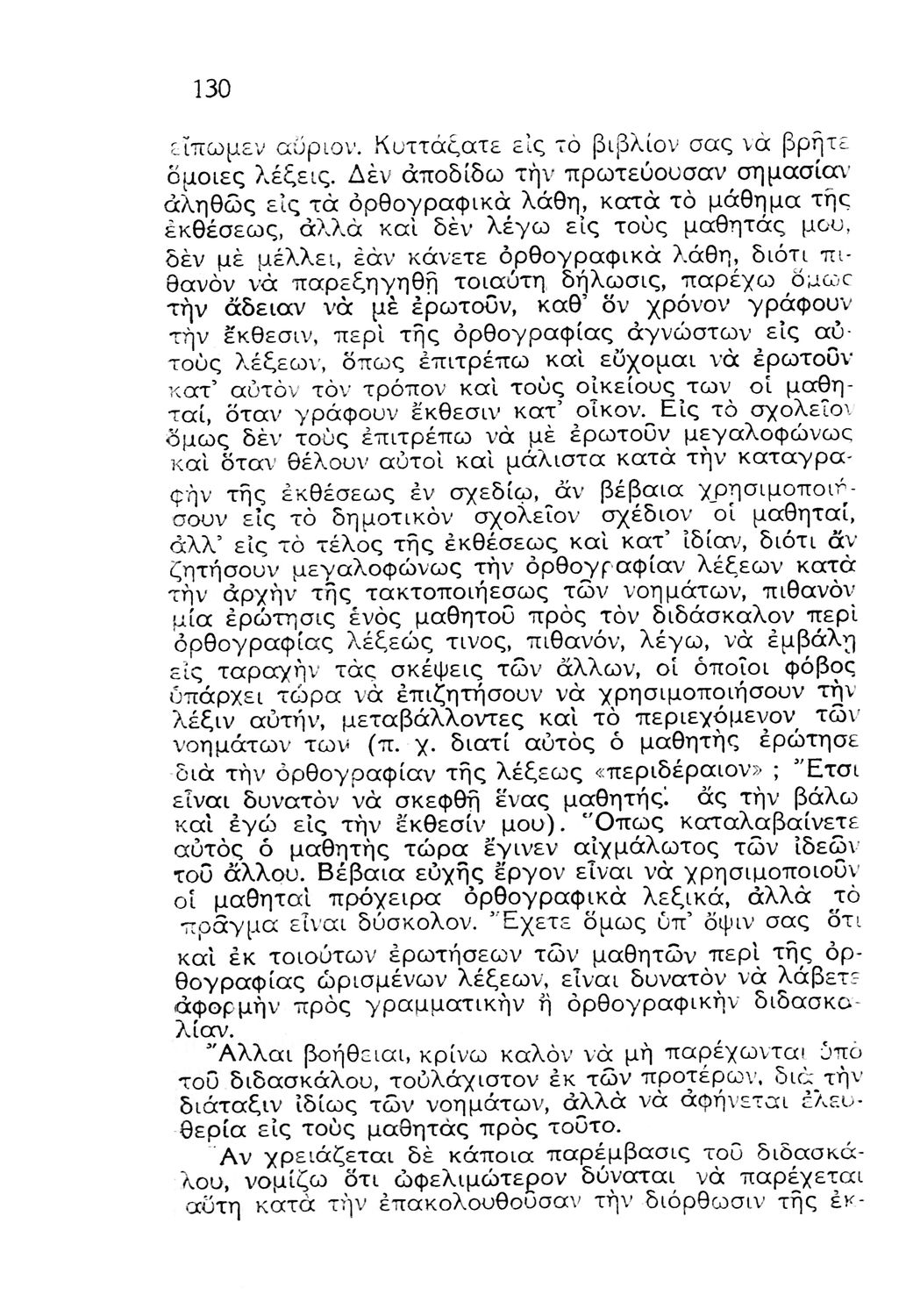 Παιδαγωγικό βοήθημα με διδακτικές εργασίες και υποδειγματικές διδασκαλίες που πραγματοποιήθηκαν στο Διδασκαλείο Σερρών και στο Μαράσλειο Διδασκαλείο. Ο συγγραφέας ήταν διευθυντής του Μαράσλειου Διδασκαλείου.