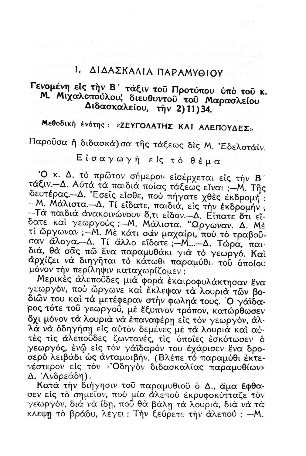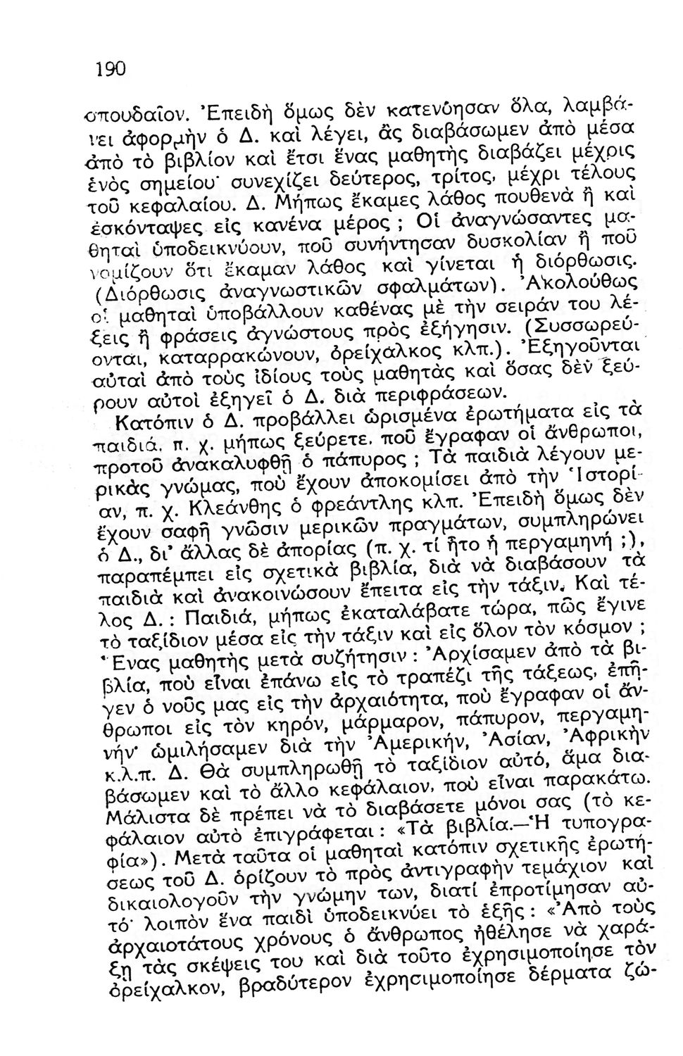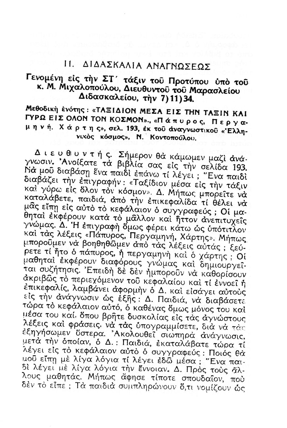 Παιδαγωγικό βοήθημα με διδακτικές εργασίες και υποδειγματικές διδασκαλίες που πραγματοποιήθηκαν στο Διδασκαλείο Σερρών και στο Μαράσλειο Διδασκαλείο. Ο συγγραφέας ήταν διευθυντής του Μαράσλειου Διδασκαλείου.