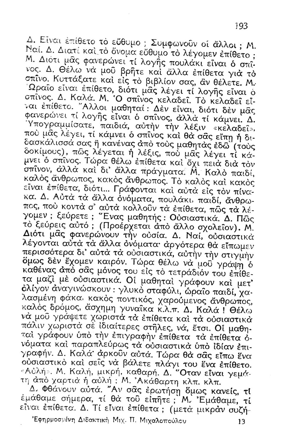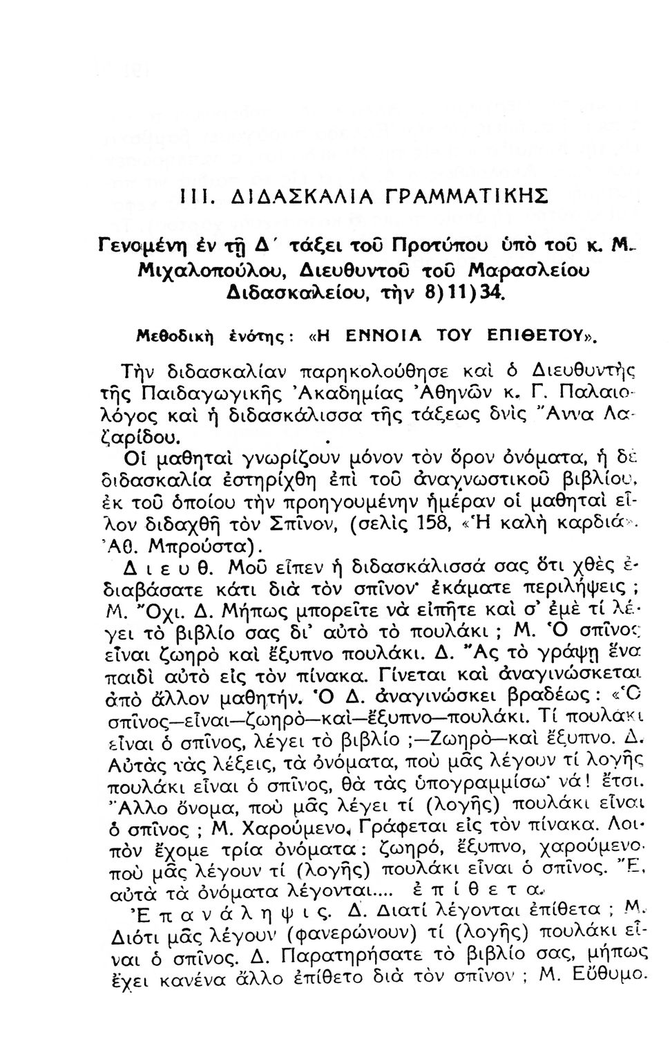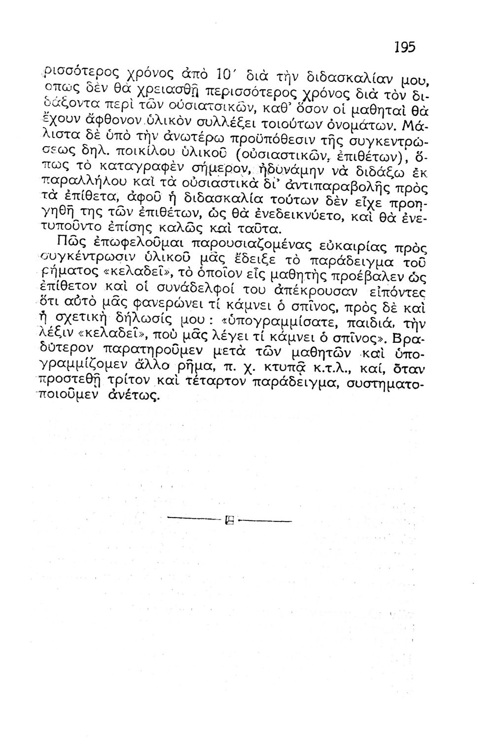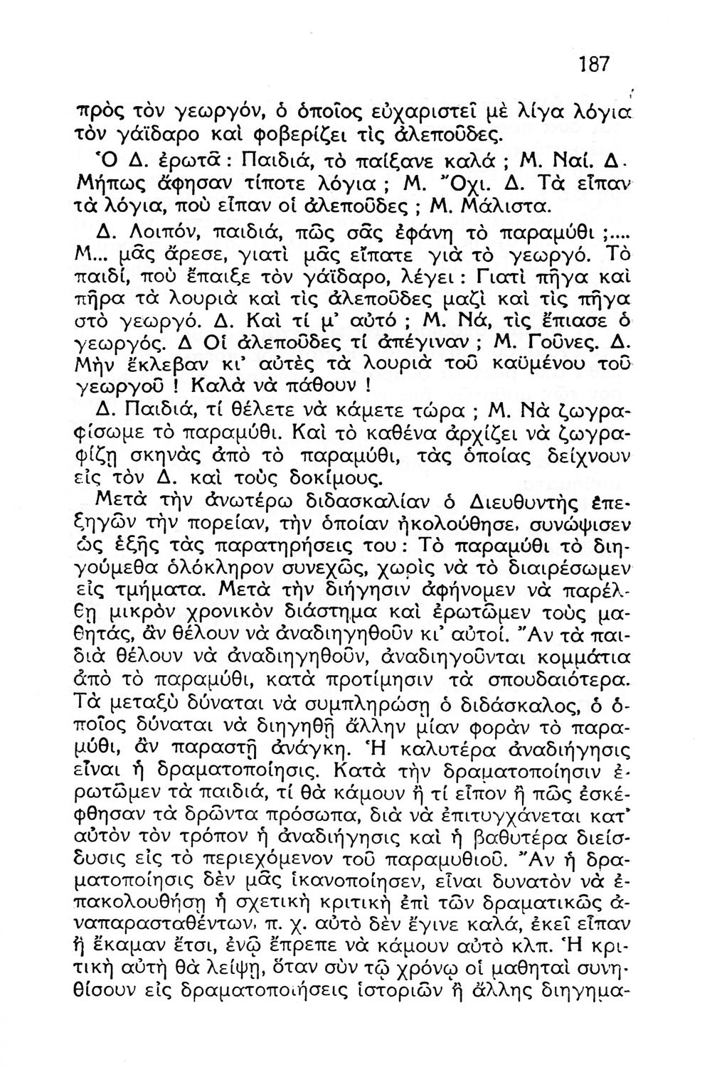 Παιδαγωγικό βοήθημα με διδακτικές εργασίες και υποδειγματικές διδασκαλίες που πραγματοποιήθηκαν στο Διδασκαλείο Σερρών και στο Μαράσλειο Διδασκαλείο. Ο συγγραφέας ήταν διευθυντής του Μαράσλειου Διδασκαλείου.