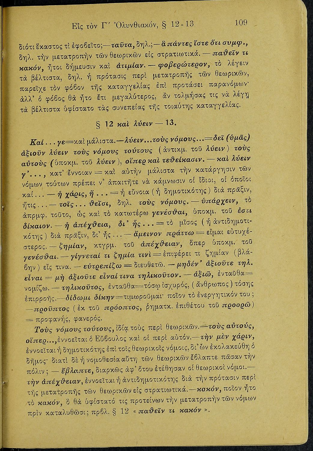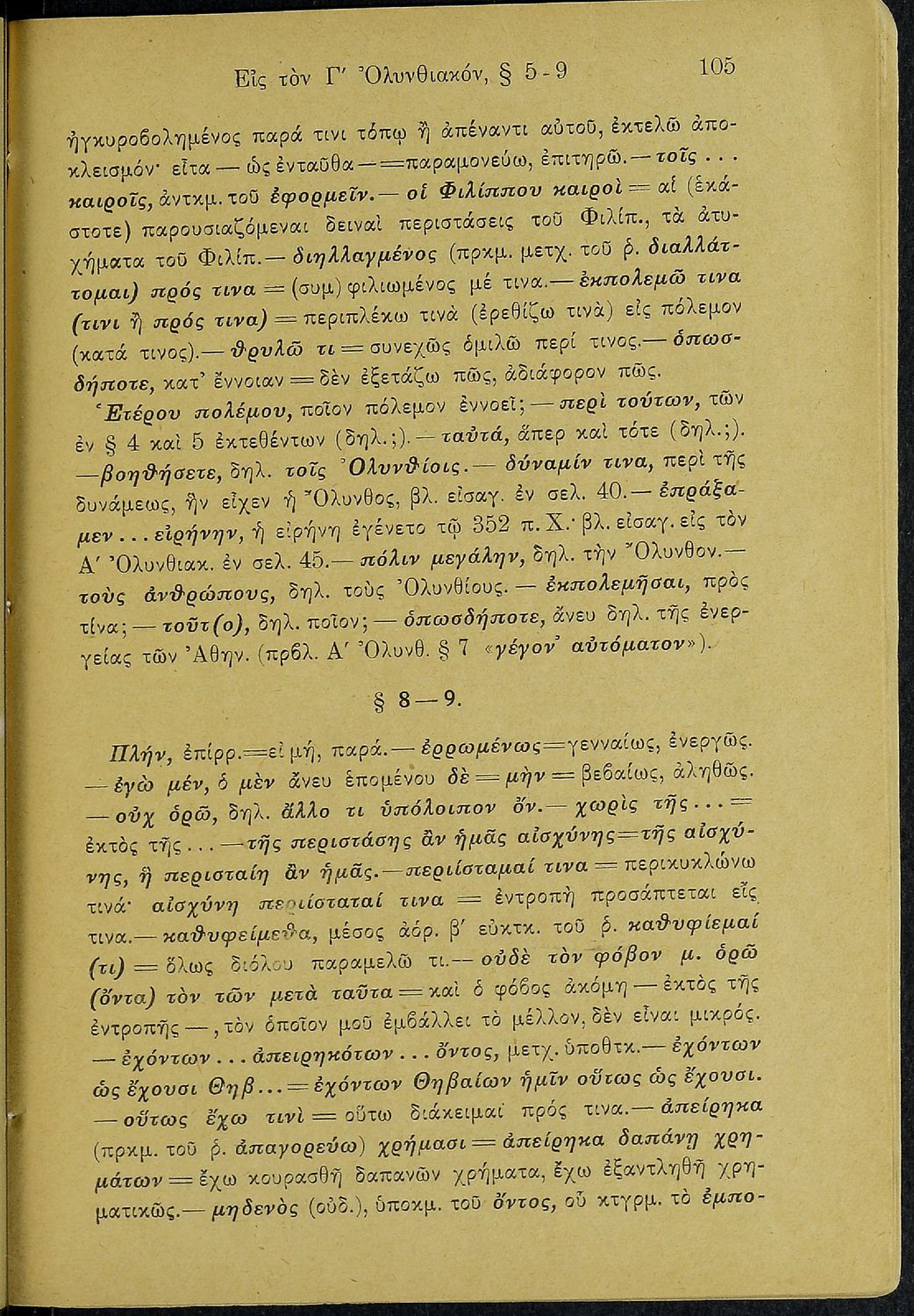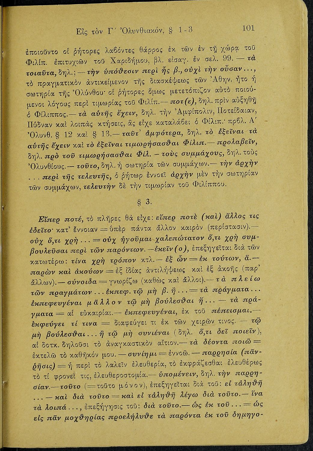 Σχολικό εγχειρίδιο Αρχαίων Ελληνικών Β΄ Γυμνασίου που περιλαμβάνει τους τρεις Ολυνθιακούς Λόγους του Δημοσθένη, ερμηνευτικά και πραγματολογικά σχόλια, λεξιλόγιο, γραμματικές παρατηρήσεις, εισαγωγικά σχόλια για