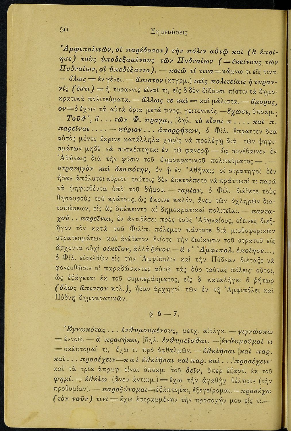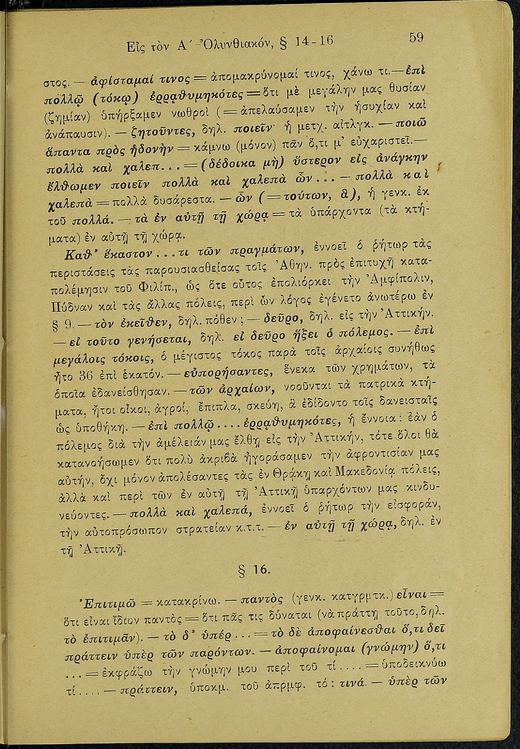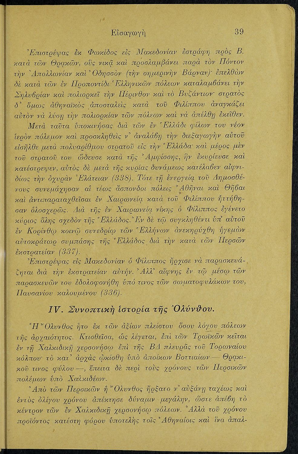 Σχολικό εγχειρίδιο Αρχαίων Ελληνικών Δ΄ Γυμνασίου που περιέχει τους Ολυνθιακούς Α΄ και Β΄ και τους Φιλιππικούς Α΄ και Β' του Δημοσθένη, ερμηνευτικά και πραγματολογικά σχόλια και γραμματικές παρατηρήσεις.