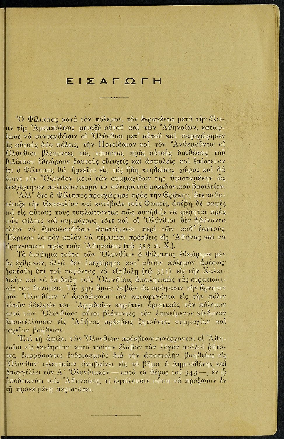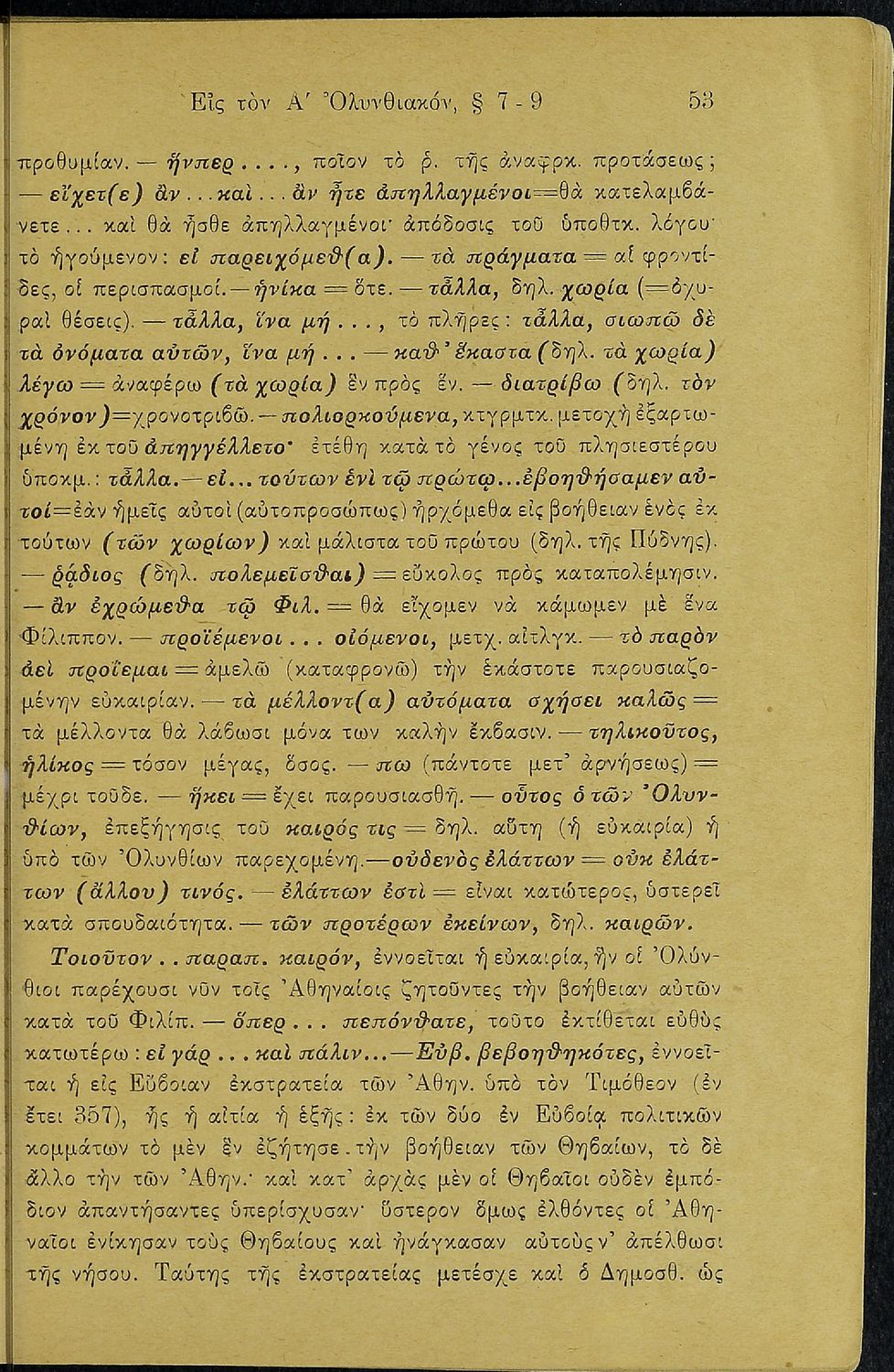Σχολικό εγχειρίδιο Αρχαίων Ελληνικών Β΄ Γυμνασίου που περιλαμβάνει τους τρεις Ολυνθιακούς Λόγους του Δημοσθένη, εισαγωγικά σχόλια στη ζωή και το έργο του, την υπόθεση των Λόγων, και ερμηνευτικά, πραγματολογικά