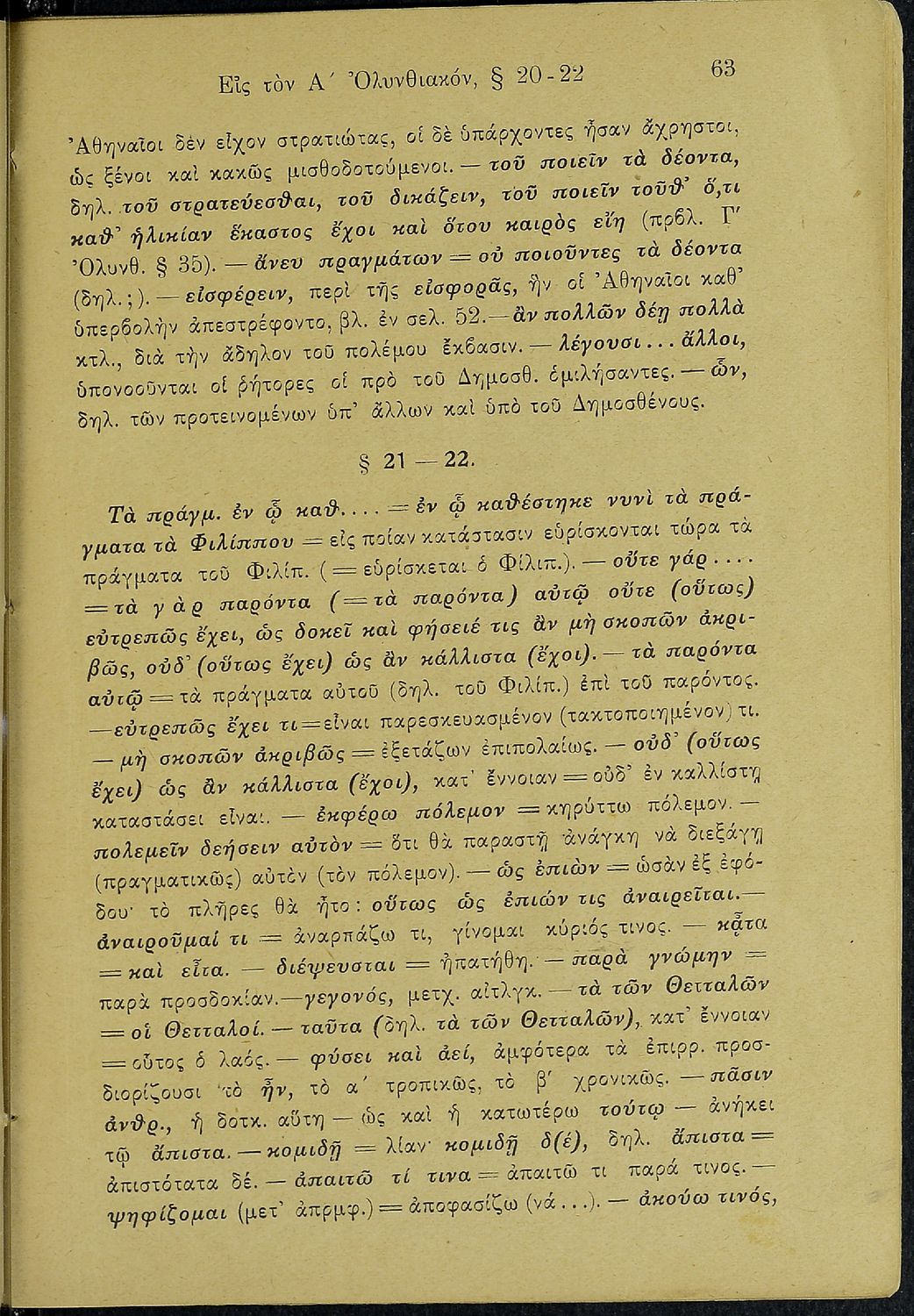 Σχολικό εγχειρίδιο Αρχαίων Ελληνικών Β΄ Γυμνασίου που περιλαμβάνει τους τρεις Ολυνθιακούς Λόγους του Δημοσθένη, ερμηνευτικά και πραγματολογικά σχόλια, λεξιλόγιο, γραμματικές παρατηρήσεις, εισαγωγικά σχόλια για
