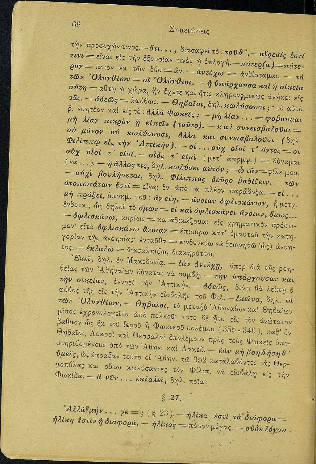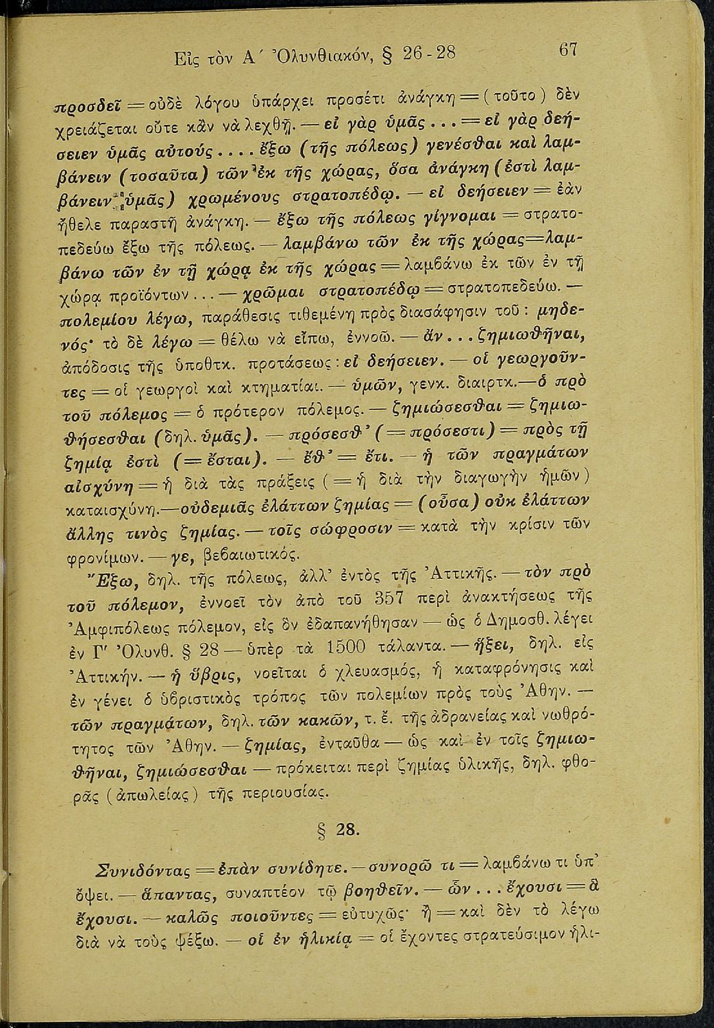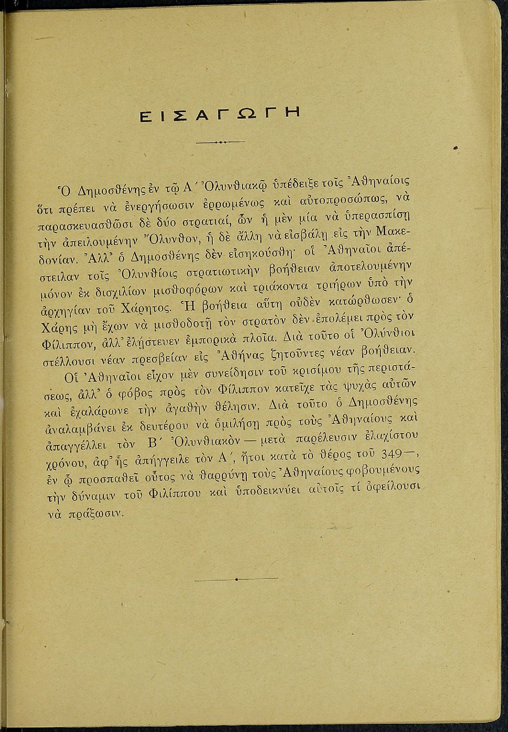 Σχολικό εγχειρίδιο Αρχαίων Ελληνικών Β΄ Γυμνασίου που περιλαμβάνει τους τρεις Ολυνθιακούς Λόγους του Δημοσθένη, εισαγωγικά σχόλια στη ζωή και το έργο του, την υπόθεση των Λόγων, και ερμηνευτικά, πραγματολογικά
