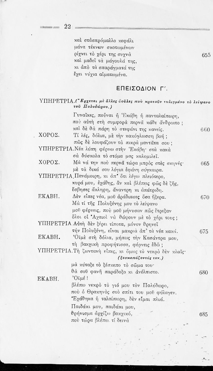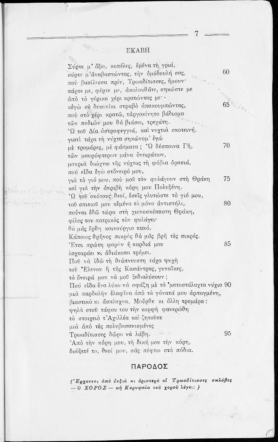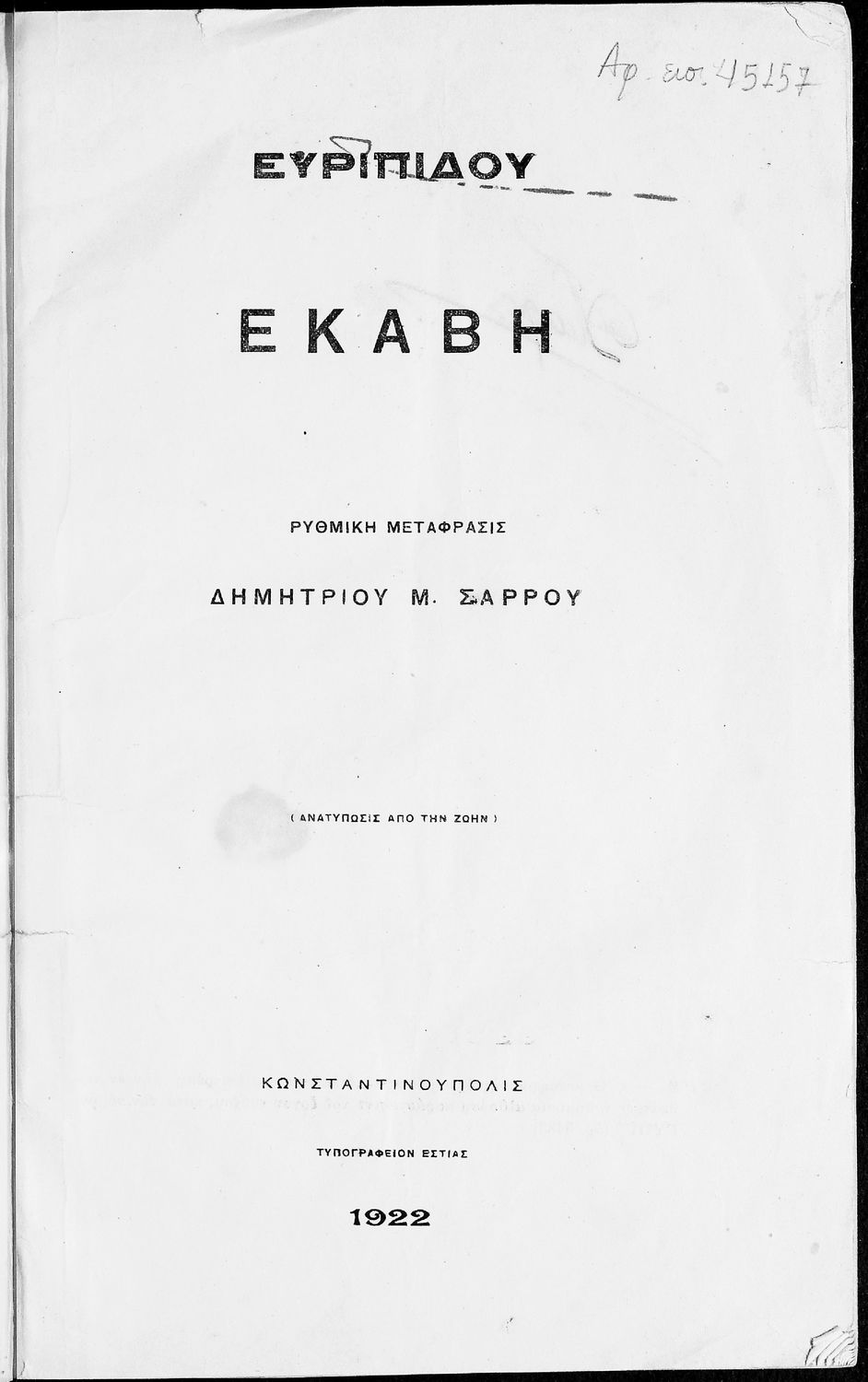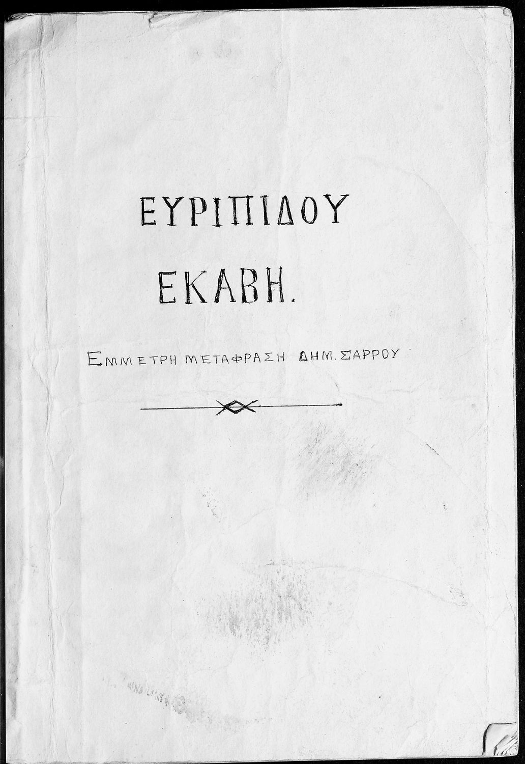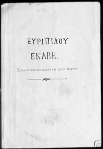 Παιδαγωγικό βοήθημα Αρχαίων Ελληνικών που περιέχει την έμμετρη μετάφραση της τραγωδίας του Ευριπίδη Εκάβη.