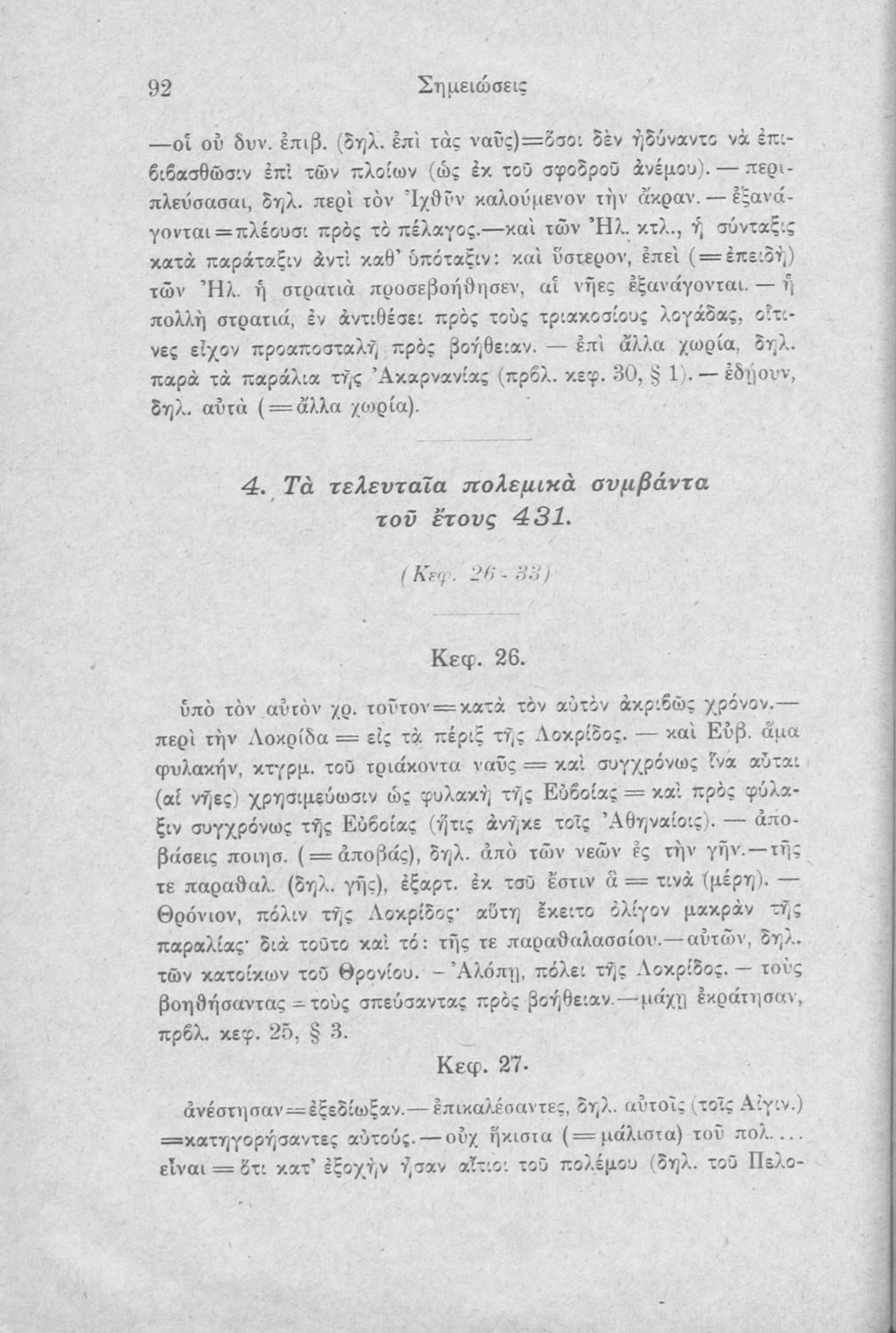 Σχολικό εγχειρίδιο Αρχαίων Ελληνικών Β΄ και Γ΄ Γυμνασίου που περιέχει αποσπάσματα από το έργο του Θουκυδίδη Ιστορία, και με ερμηνευτικές και πραγματολογικές παρατηρήσεις.