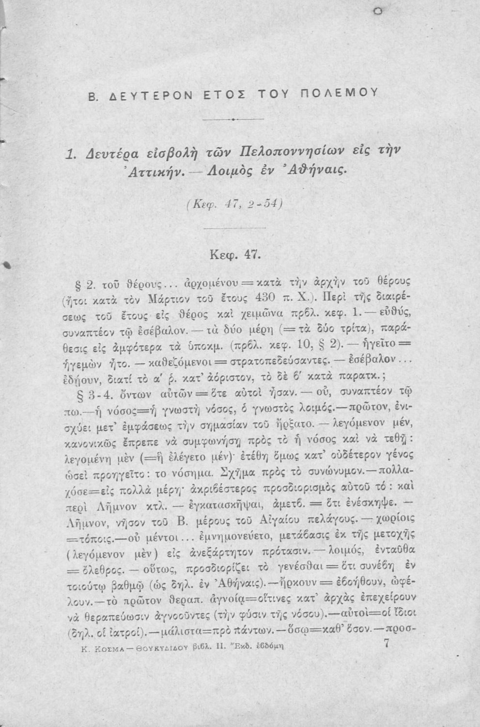Συγγραφέας: Θουκυδίδης, Κυριάκος Κοσμάς (σχόλια)