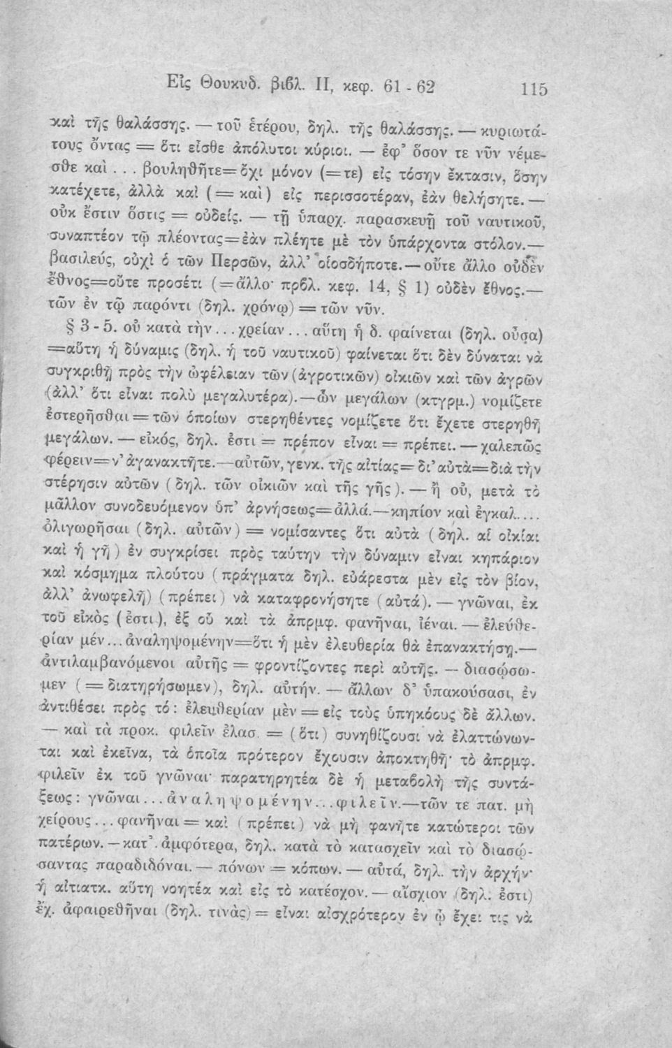 Σχολικό εγχειρίδιο Αρχαίων Ελληνικών Β΄ και Γ΄ Γυμνασίου που περιέχει αποσπάσματα από το έργο του Θουκυδίδη Ιστορία, και με ερμηνευτικές και πραγματολογικές παρατηρήσεις.