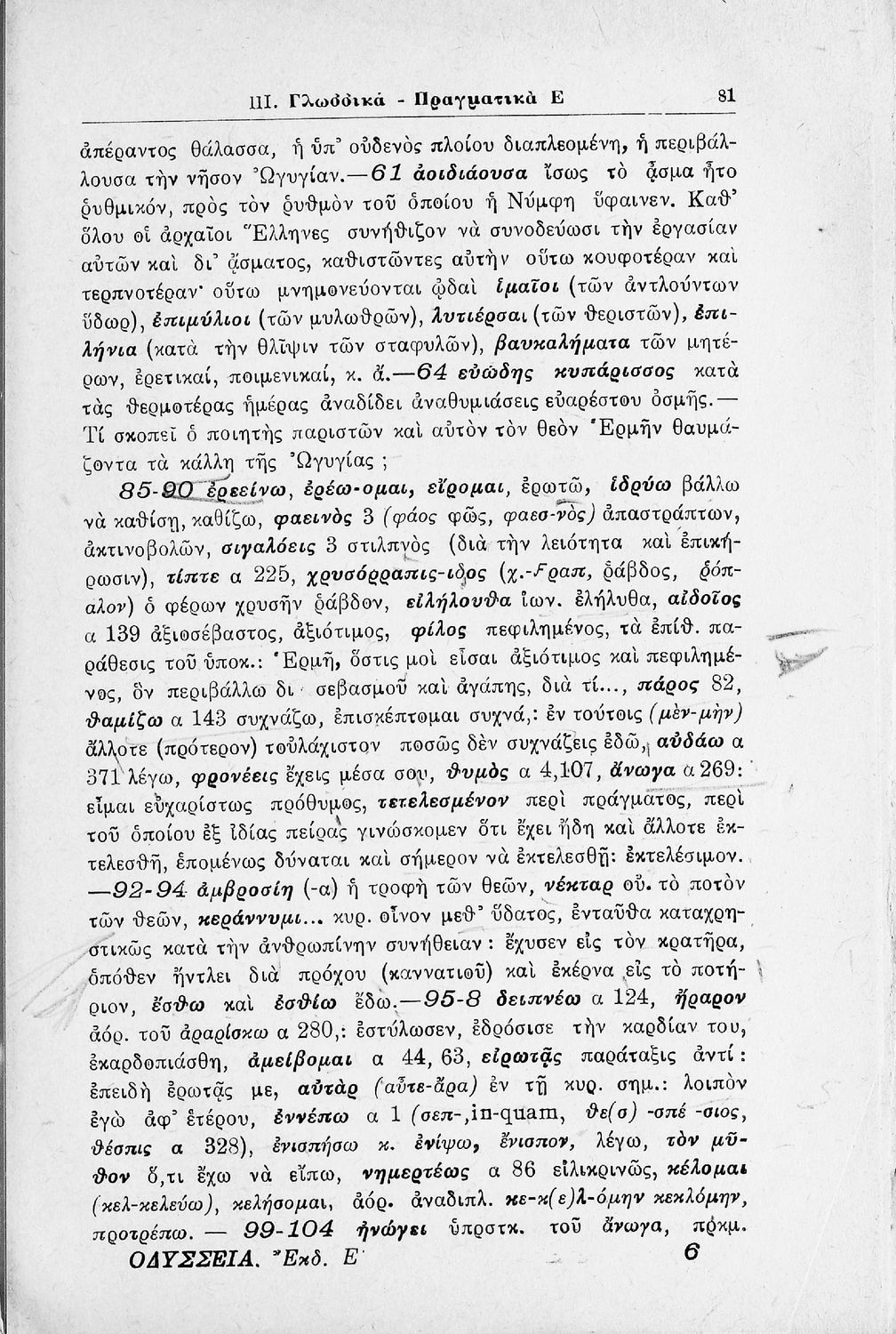 Μαθητικό βοήθημα εγκεκριμένο για το μάθημα των Αρχαίων. Περιλαμβάνει ραψωδίες της Οδύσσειας με ερμηνευτικές του συγγραφέα.