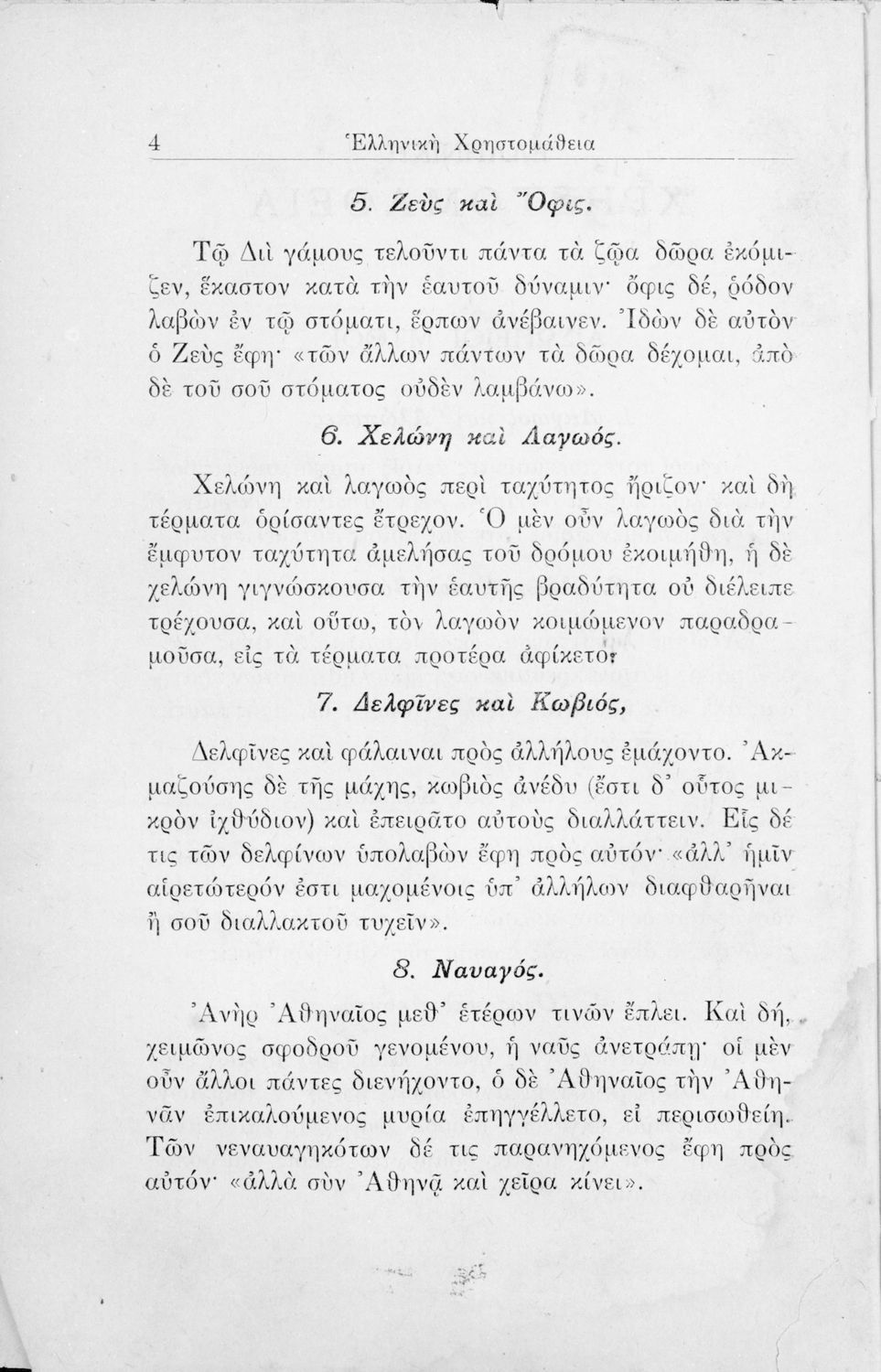 Σχολικό εγχειρίδιο Αρχαίων Ελληνικών για τις Ε΄ Δημοτικού και Α' Ελληνικού Σχολείου που περιλαμβάνει σύντομα διηγήματα εμπνευσμένα από τους μύθους του Αισώπου, περιγραφές ελληνικών πόλεων, επιστολές και ...