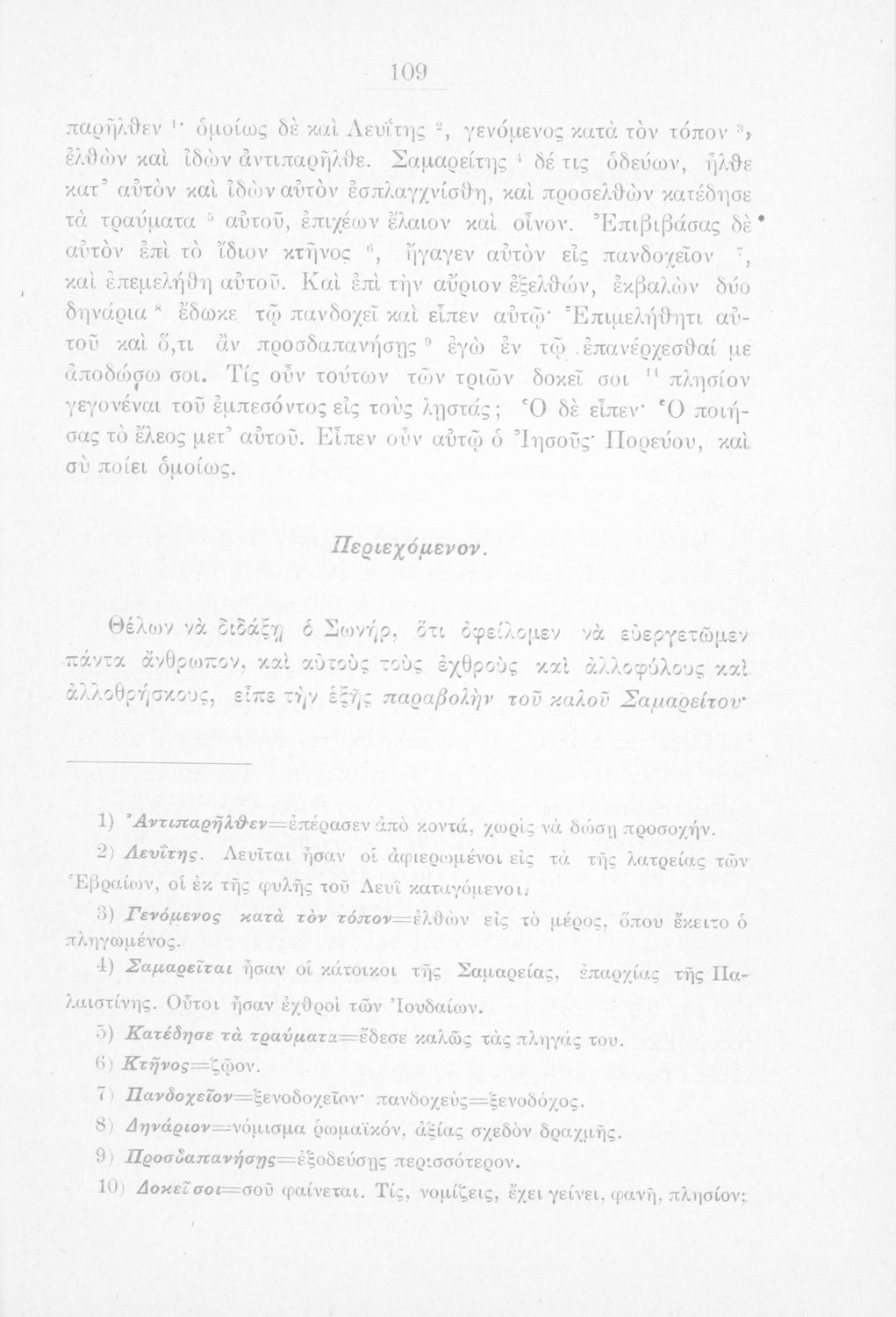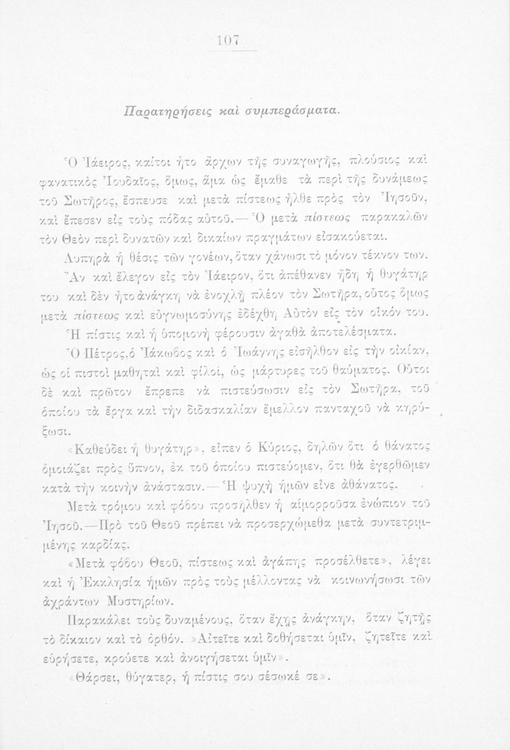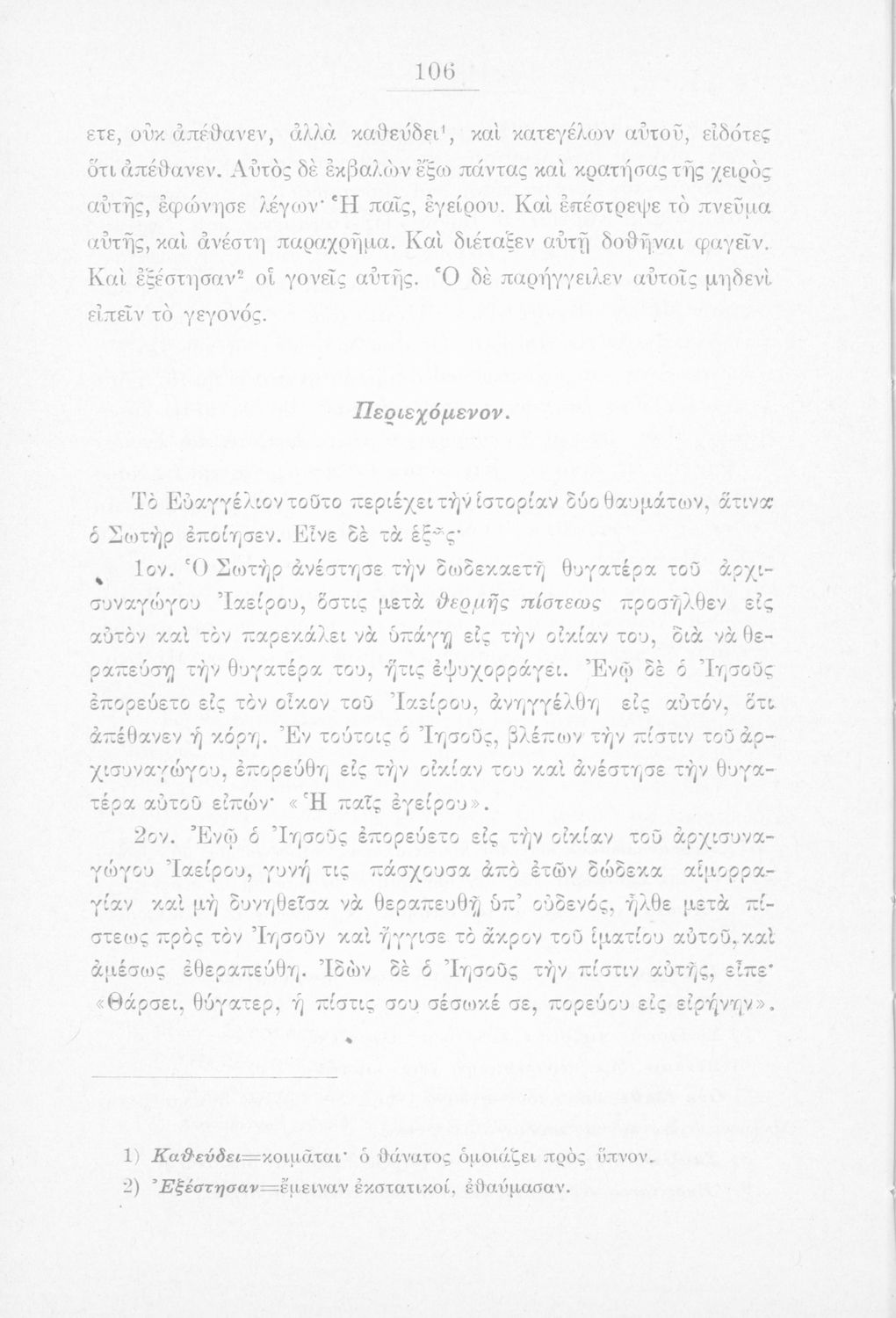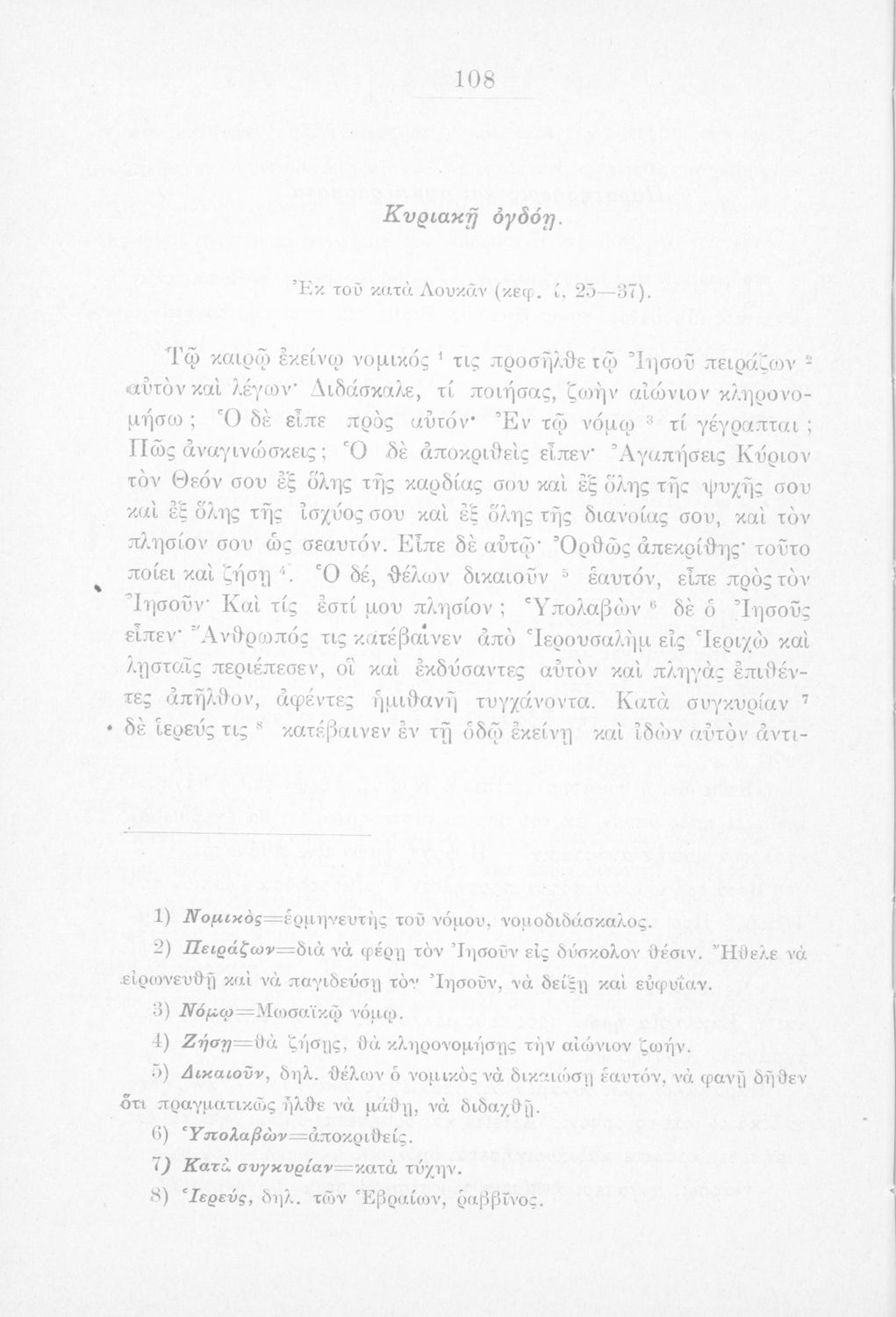 Παρουσίαση περιεχομένου: Σχολικό εγχειρίδιο Θρησκευτικών για τα Γυμνάσια, Ελληνικά Σχολεία και τα Παρθεναγωγεία που περιλαμβάνει εισαγωγικά σχόλια στα βιβλία της Παλαιάς και Καινής Διαθήκης, βιογραφικά σημειώματα των ευαγγελιστών περικοπές, και ερμηνευτικές και πραγματολογικές σημειώσεις. Ο συγγραφέας υπήρξε καθηγητής του Πανεπιστημίου. Το βιβλίο έχει την έγκριση της Ιερά Συνόδου με αρ.πρ.1632/7-12-1889.