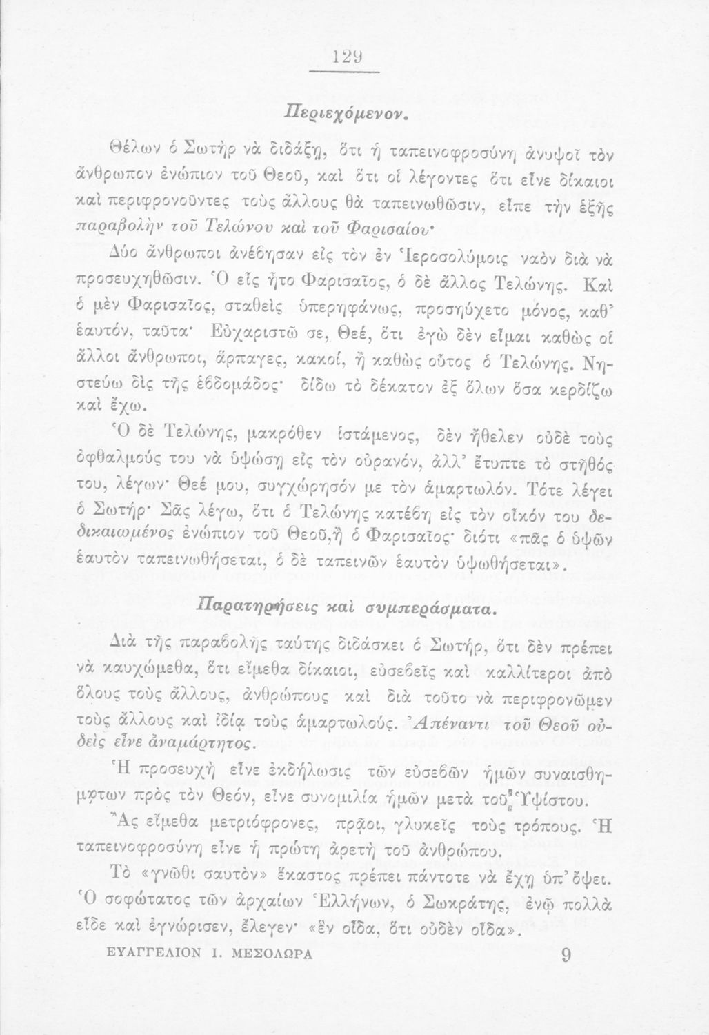 Παρουσίαση περιεχομένου: Σχολικό εγχειρίδιο Θρησκευτικών για τα Γυμνάσια, Ελληνικά Σχολεία και τα Παρθεναγωγεία που περιλαμβάνει εισαγωγικά σχόλια στα βιβλία της Παλαιάς και Καινής Διαθήκης, βιογραφικά σημειώματα των ευαγγελιστών περικοπές, και ερμηνευτικές και πραγματολογικές σημειώσεις. Ο συγγραφέας υπήρξε καθηγητής του Πανεπιστημίου. Το βιβλίο έχει την έγκριση της Ιερά Συνόδου με αρ.πρ.1632/7-12-1889.