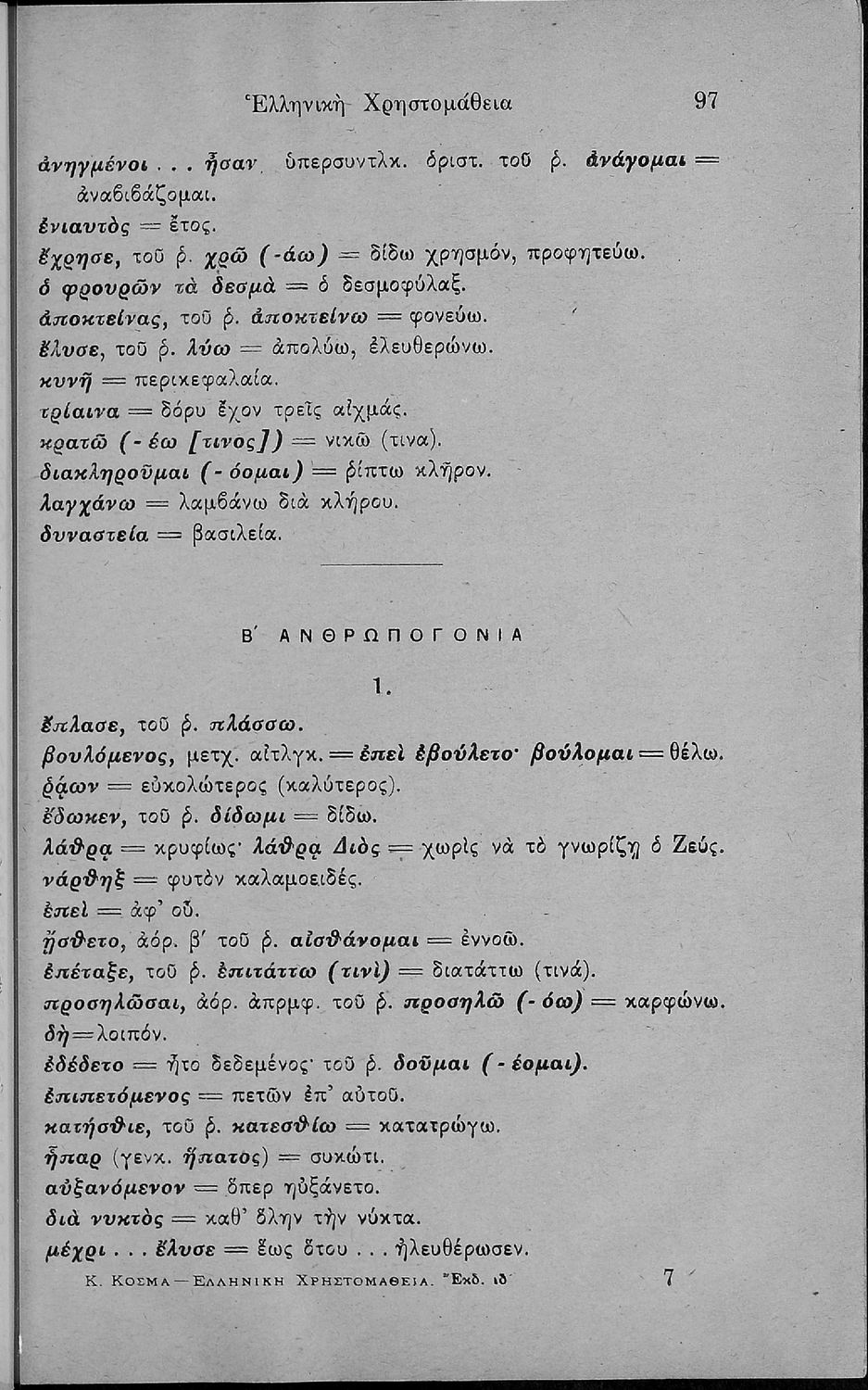 Ελληνική Χρηστομάθεια. Δια την Α΄ Τάξιν των Ελληνικών Σχολείων
