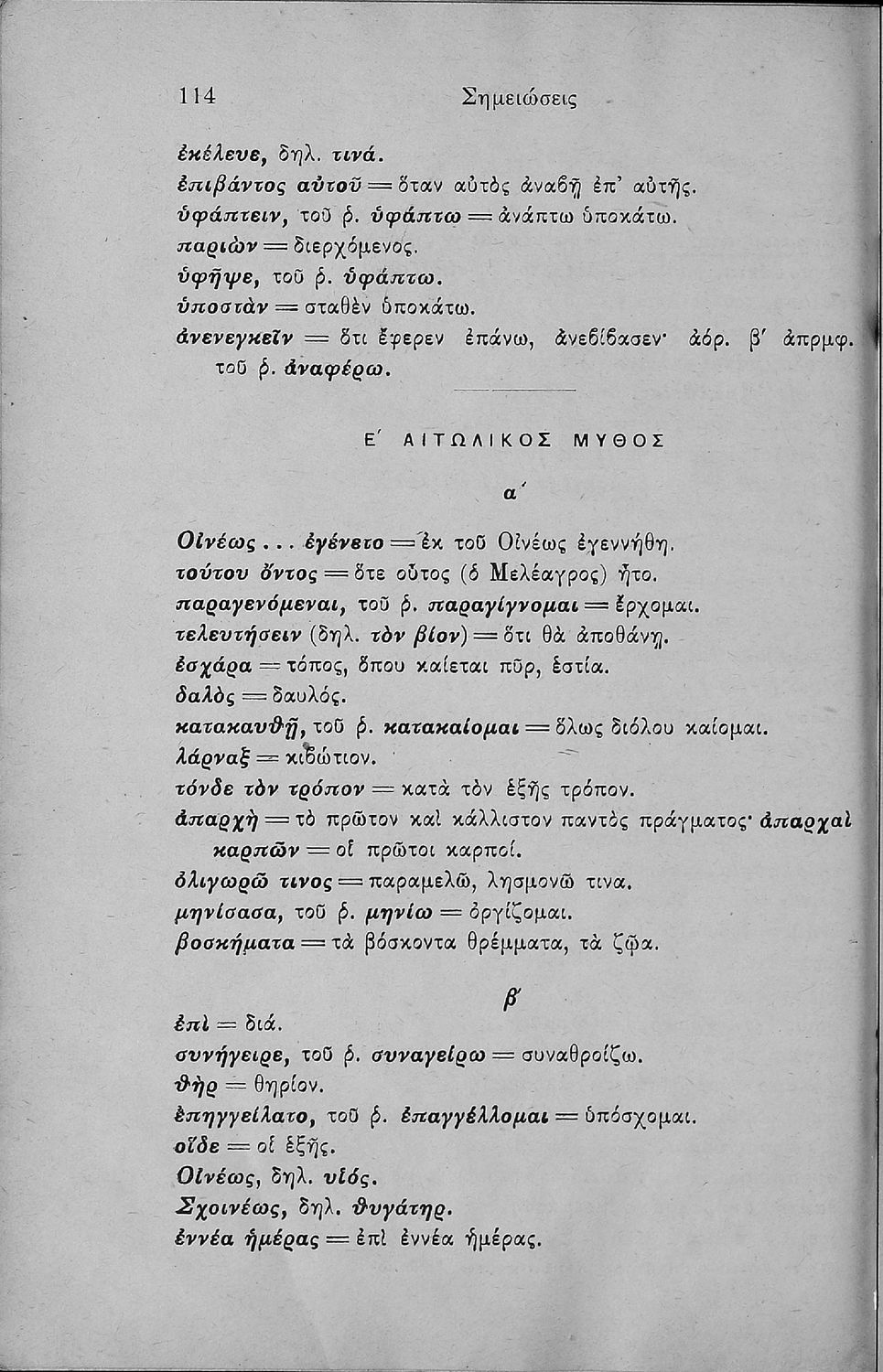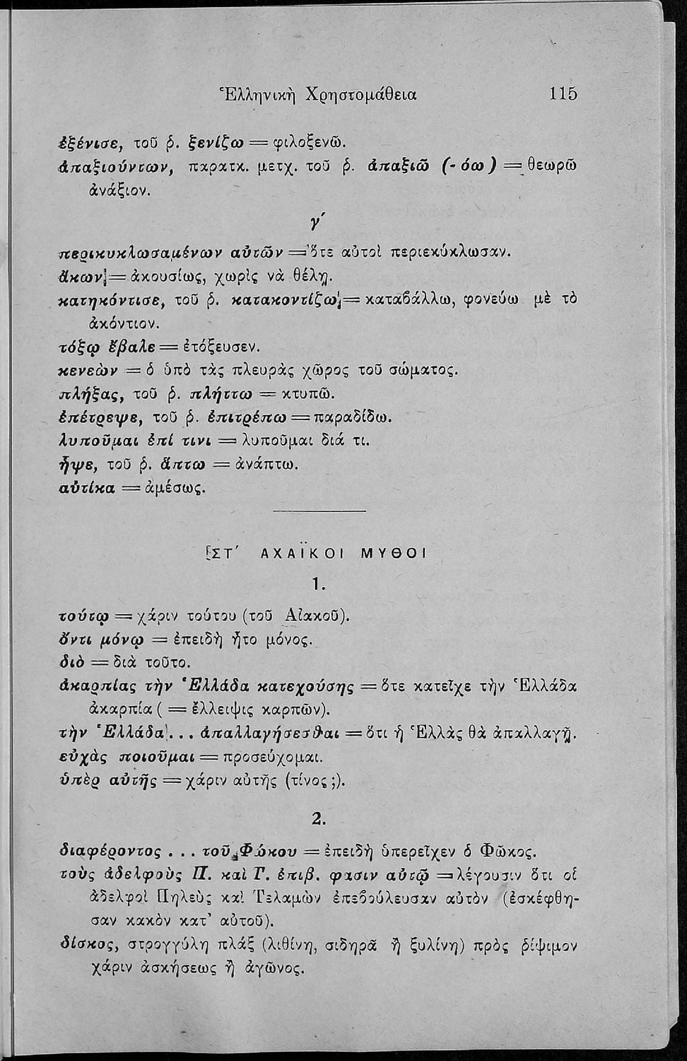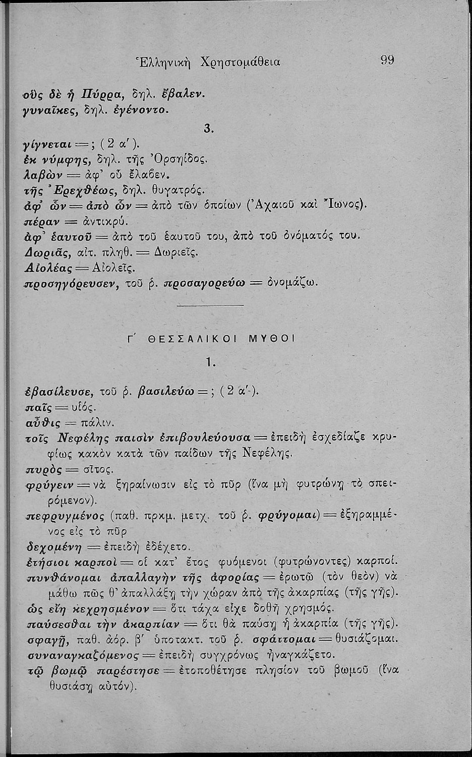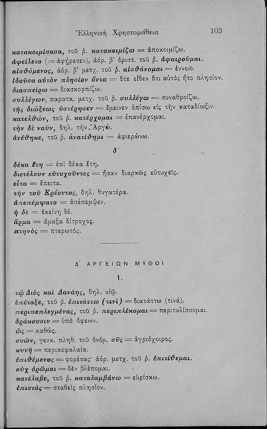 Σχολικό εγχειρίδιο Αρχαίων Ελληνικών για τις Α' Ελληνικού Σχολείου και Παρθεναγωγείου και την Ε΄ Δημοτικού που περιέχει κείμενα στην αρχαία ελληνική εμπνευσμένα από την ελληνική μυθολογία, και γραμματικές, ...