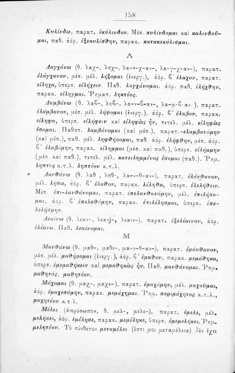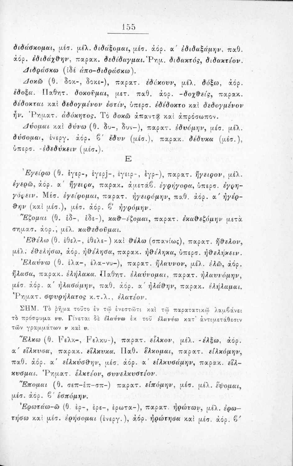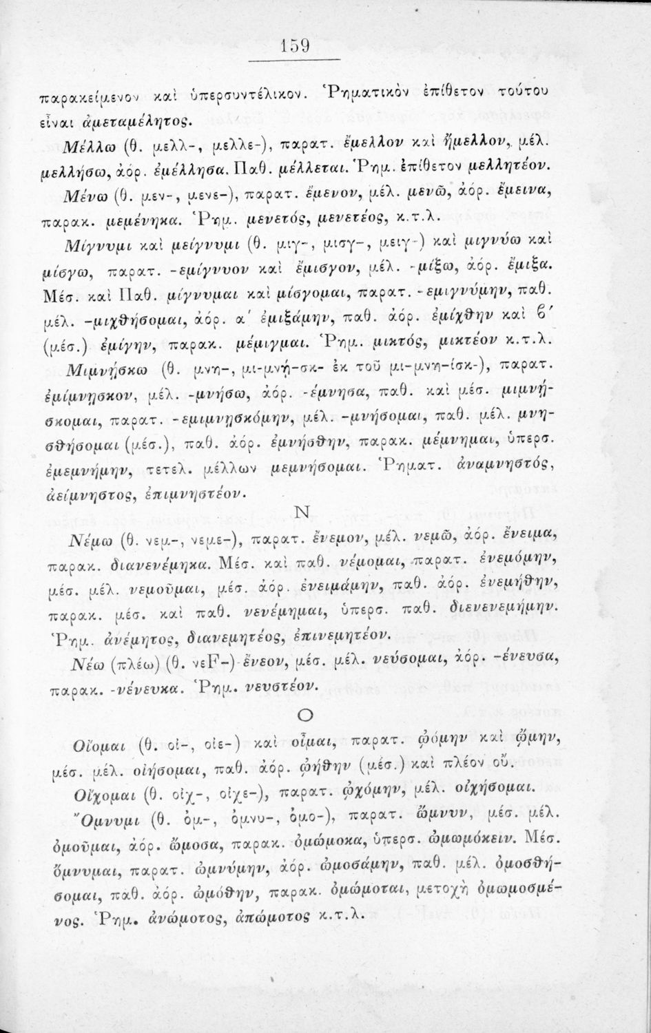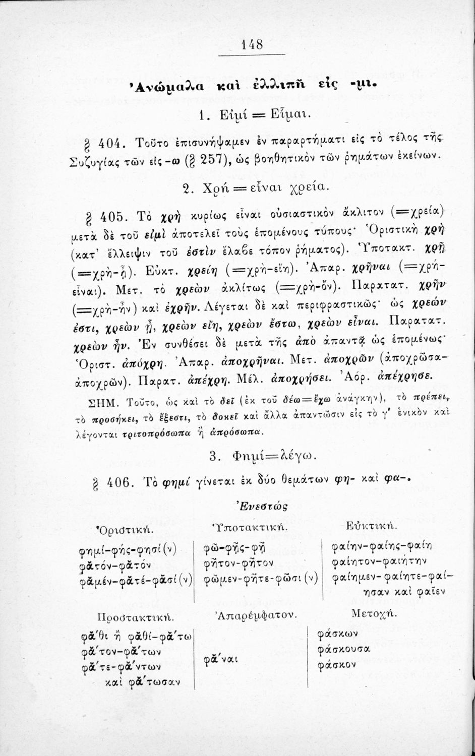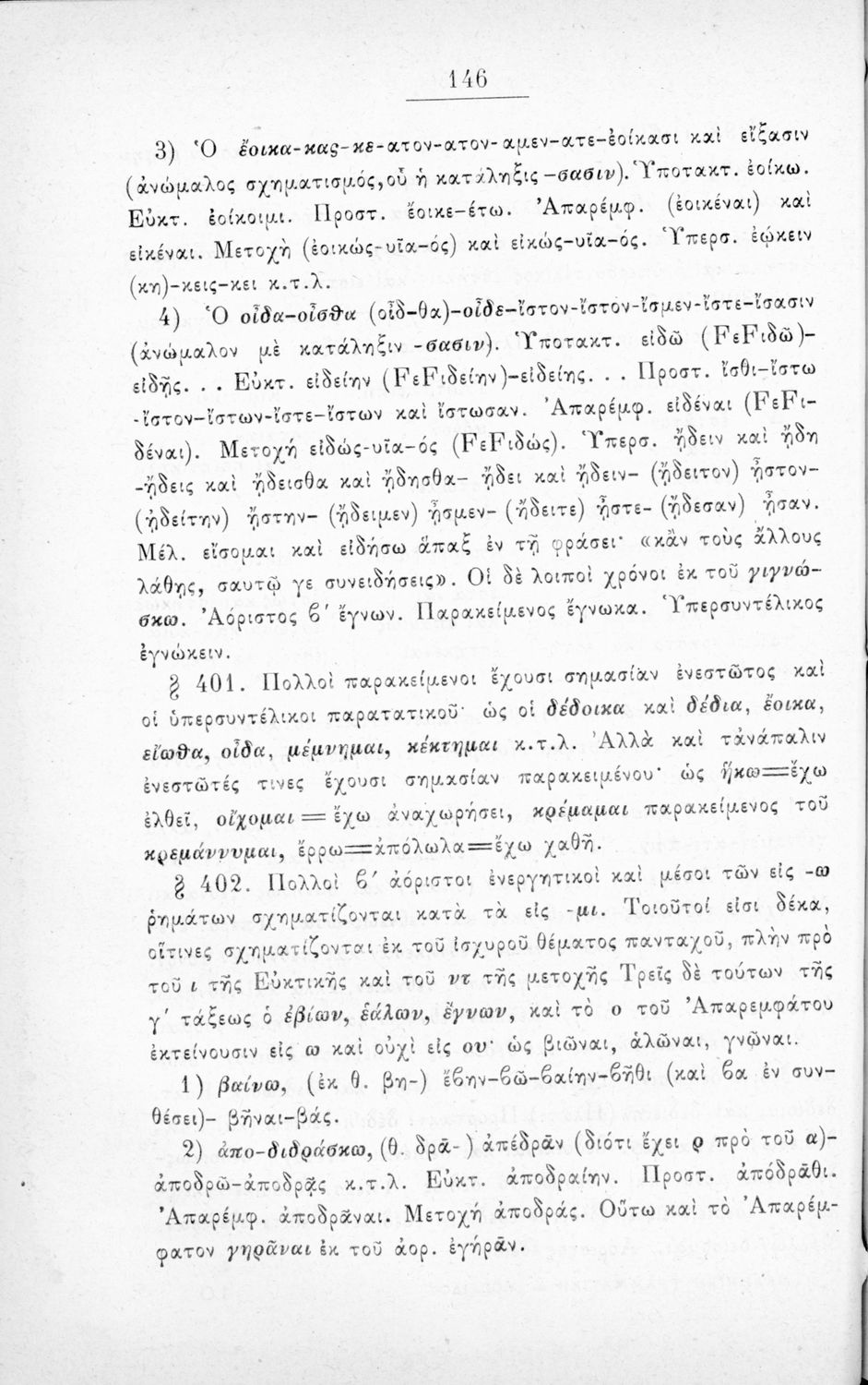 Μαθητικό βοήθημα Αρχαίων Ελληνικών για τα Ελληνικά Σχολεία, Παρθεναγωγεία και Γυμνάσια που περιλαμβάνει γραμματική της αρχαίας ελληνικής και κατάλογο ανωμάλων ρημάτων.