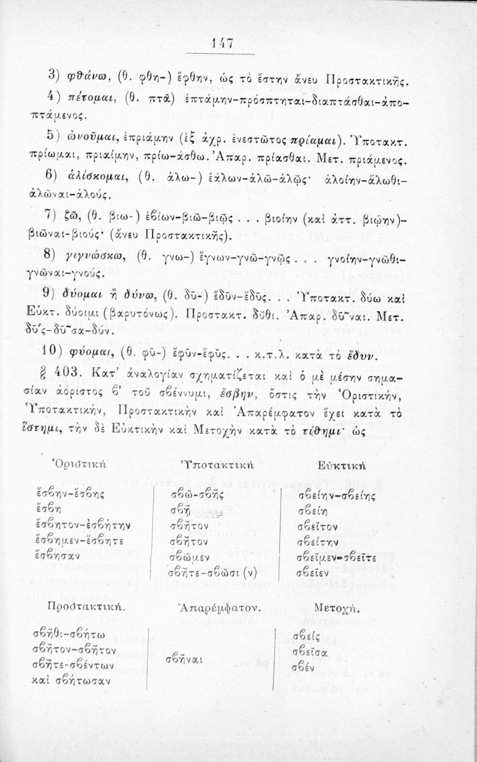 Μαθητικό βοήθημα Αρχαίων Ελληνικών Γυμνασίου, Ελληνικού Σχολείου και Παρθεναγωγείου που περιέχει τα ανώμαλα ρήματα της αττικής διαλέκτου και γραμματικές σημειώσεις.