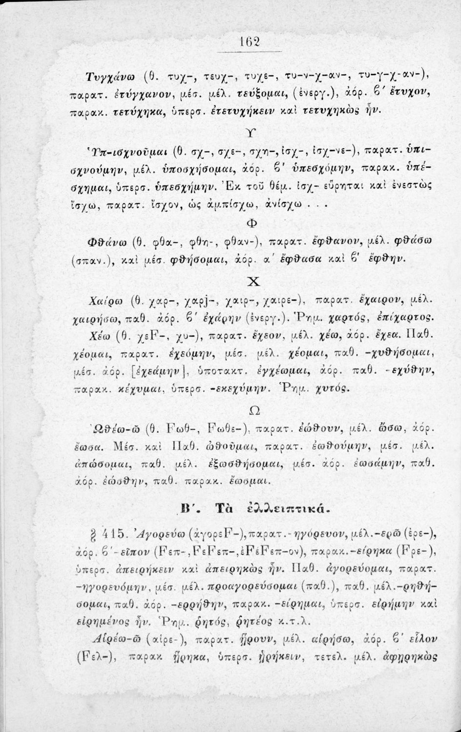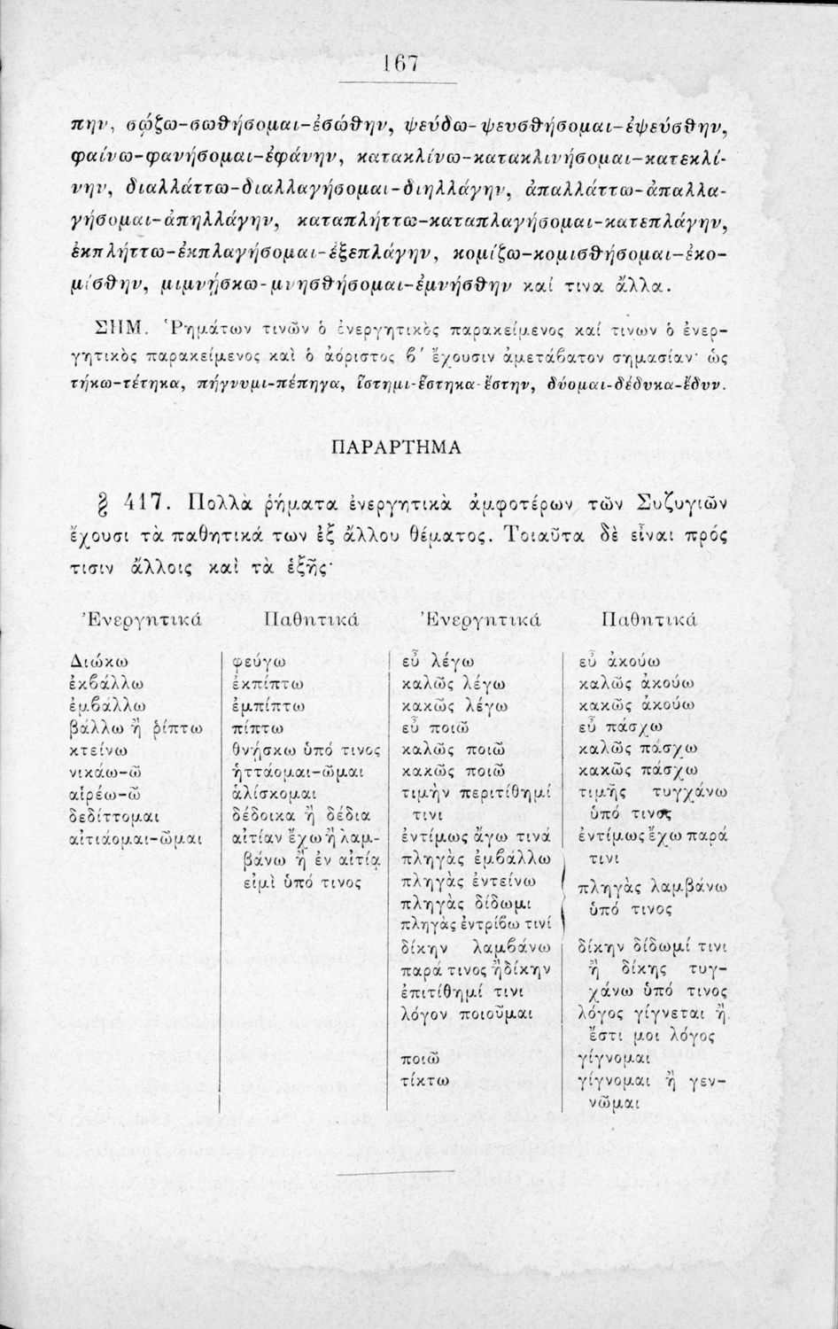 Μαθητικό βοήθημα Αρχαίων Ελληνικών Γυμνασίου, Ελληνικού Σχολείου και Παρθεναγωγείου που περιέχει τα ανώμαλα ρήματα της αττικής διαλέκτου και γραμματικές σημειώσεις.