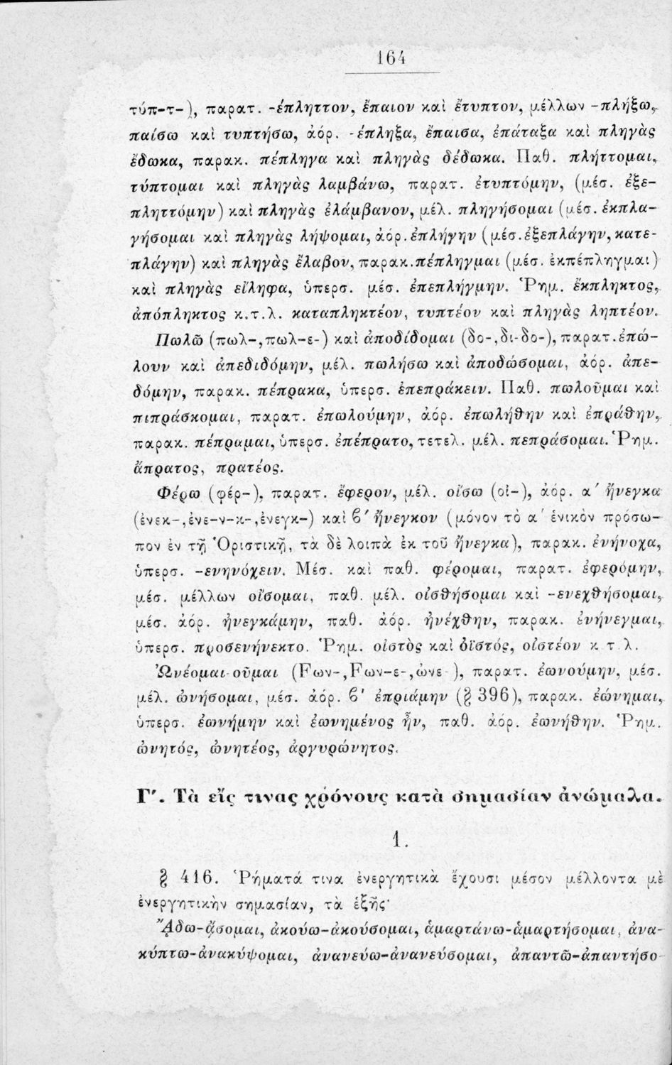 Μαθητικό βοήθημα Αρχαίων Ελληνικών για τα Ελληνικά Σχολεία, Παρθεναγωγεία και Γυμνάσια που περιλαμβάνει γραμματική της αρχαίας ελληνικής και κατάλογο ανωμάλων ρημάτων.