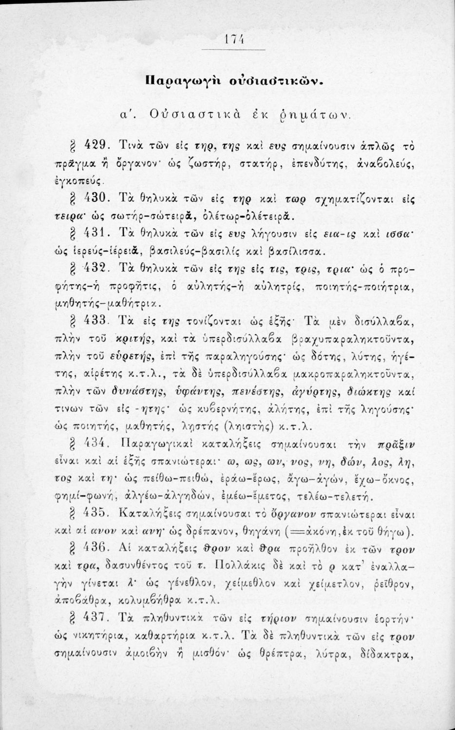 Σχολικό εγχειρίδιο Αρχαίων Ελληνικών για τα Ελληνικά Σχολεία και Παρθεναγωγεία που περιέχει τους κανόνες γραμματικής και είναι χωρισμένο σε φθογγολογικό, τυπολογικό και ετυμολογικό μέρος.