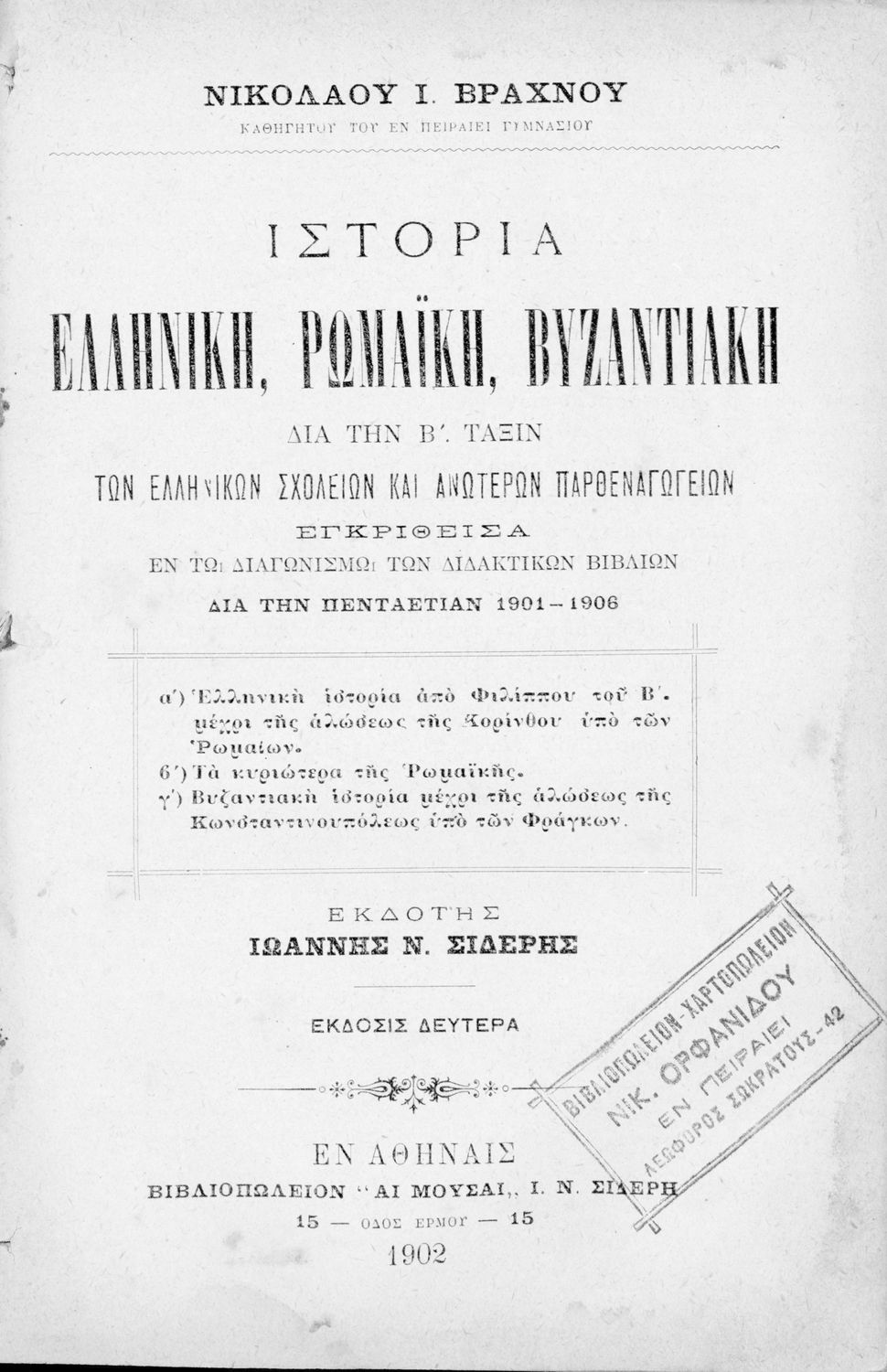 Τίτλος: Ελληνική Γραμματική της Αττικής Διαλέκτου η μόνη εγκριθείσα κατά τον τελευταίον διαγωνισμόν του 1901 επί πενταετίαν. Προς χρήσιν των Ελληνικών Σχολείων και Παρθεναγωγείων.