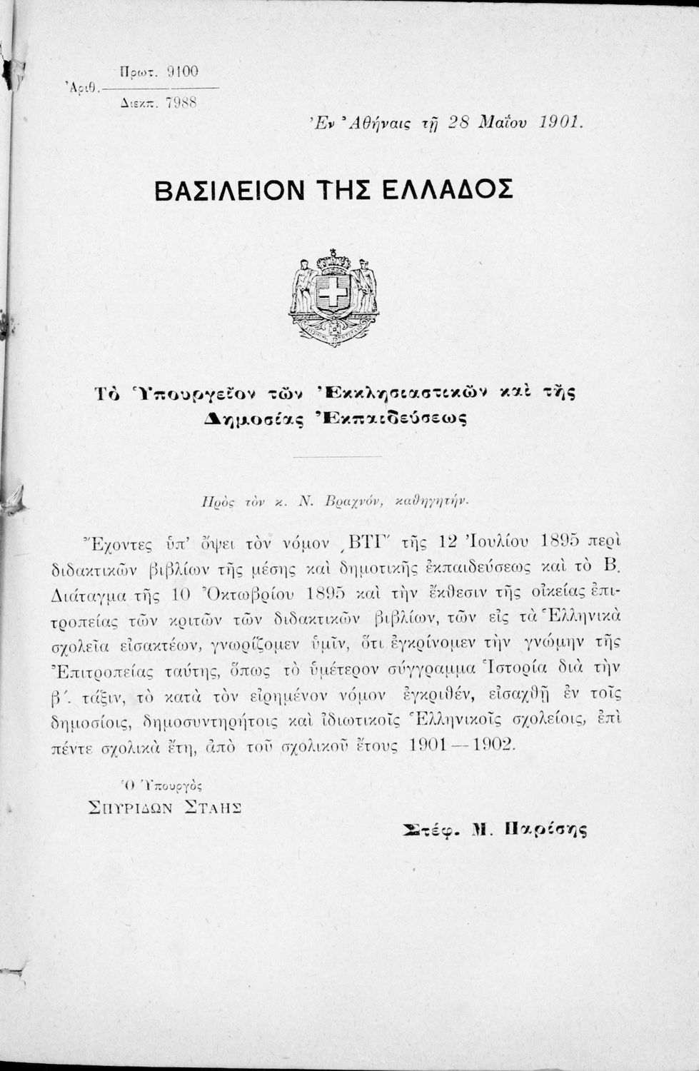 Υπουργική απόφαση / Σύμβαση: 9100/28-5-1901