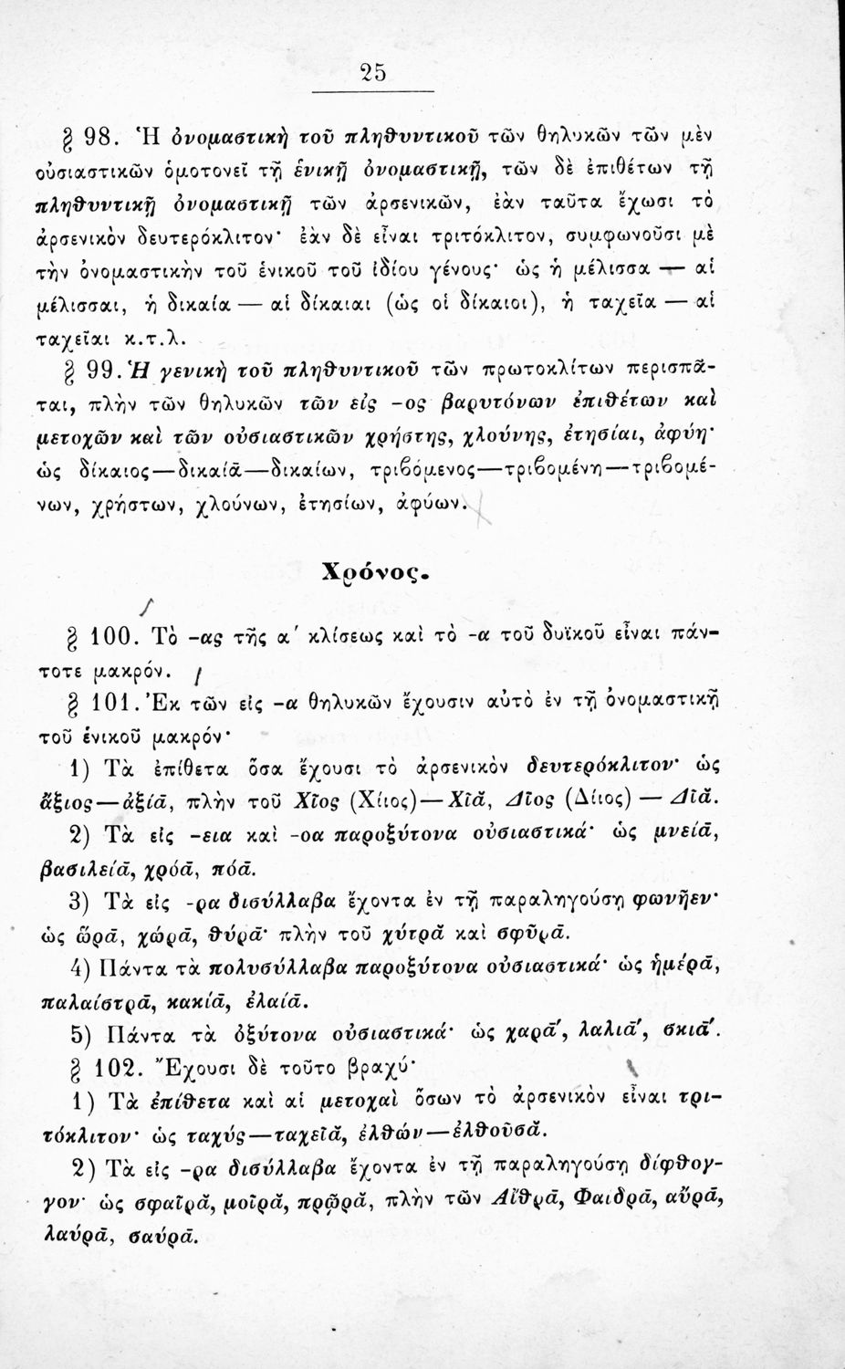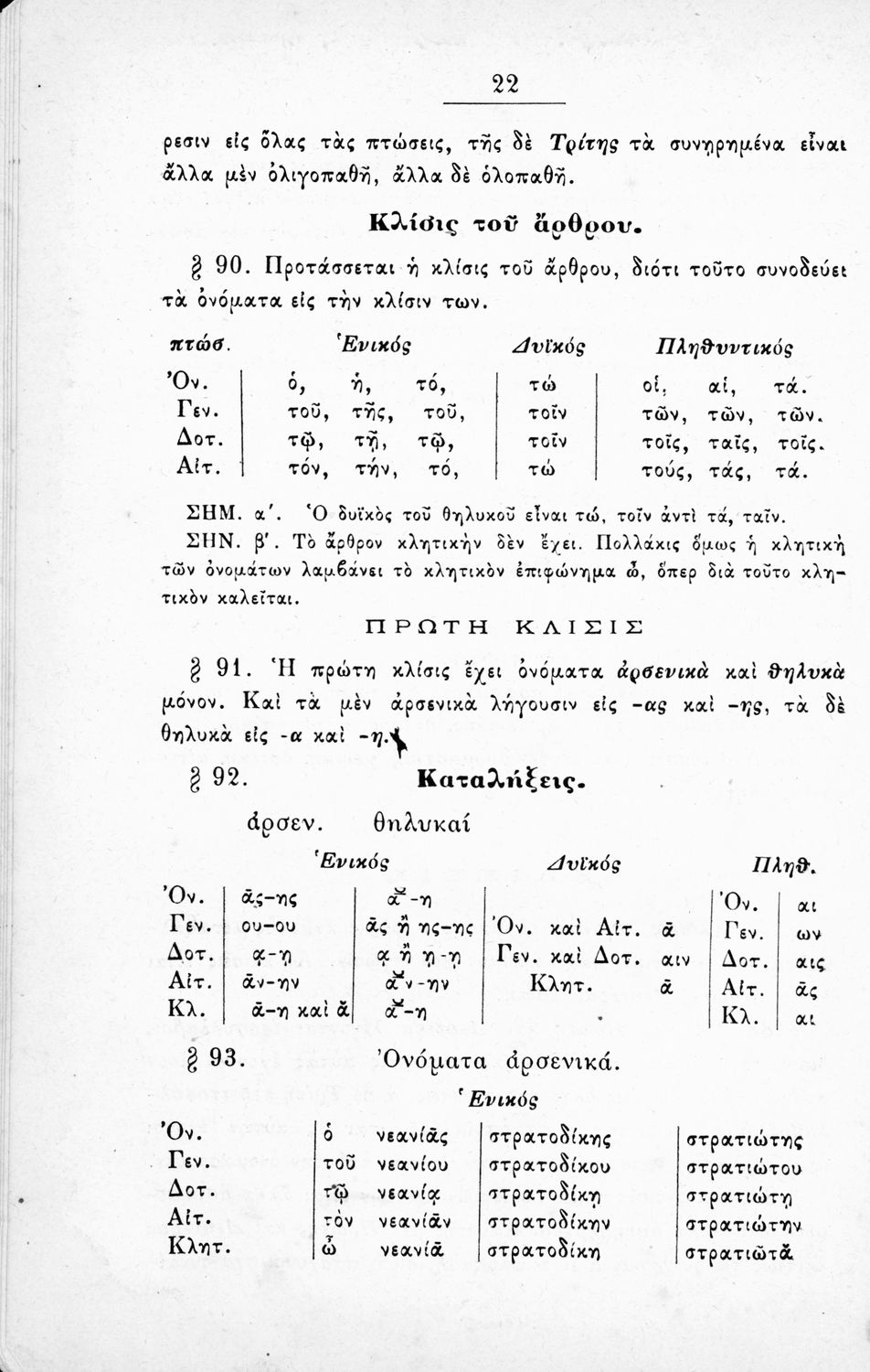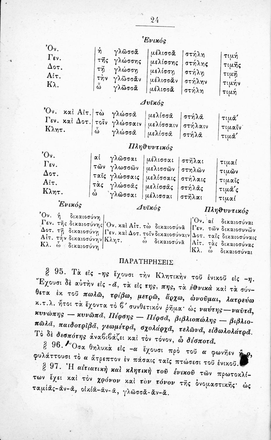 Σχολικό εγχειρίδιο Αρχαίων Ελληνικών για τα Ελληνικά Σχολεία και Παρθεναγωγεία που περιλαμβάνει κανόνες της γραμματικής της αρχαίας ελληνικής και είναι χωρισμένη στο φθογγολογικό και στο τυπολογικό μέρος.