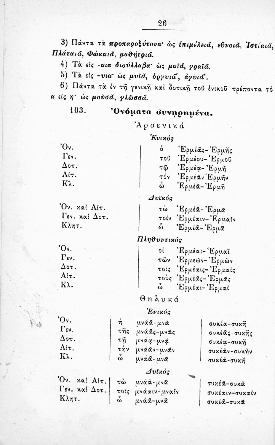 Σχολικό εγχειρίδιο Αρχαίων Ελληνικών για τα Ελληνικά Σχολεία και Παρθεναγωγεία που αποτελεί γραμματική της αρχαίας ελληνικής και είναι χωρισμένο σε φθογγολογικό, τυπολογικό και ετυμολογικό μέρος.