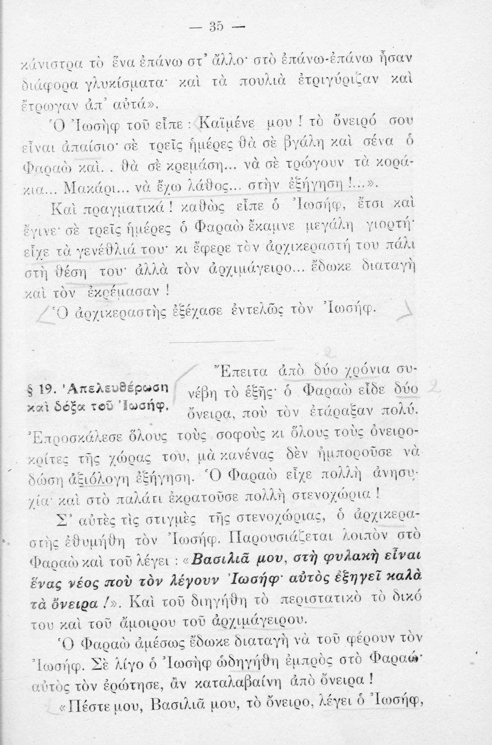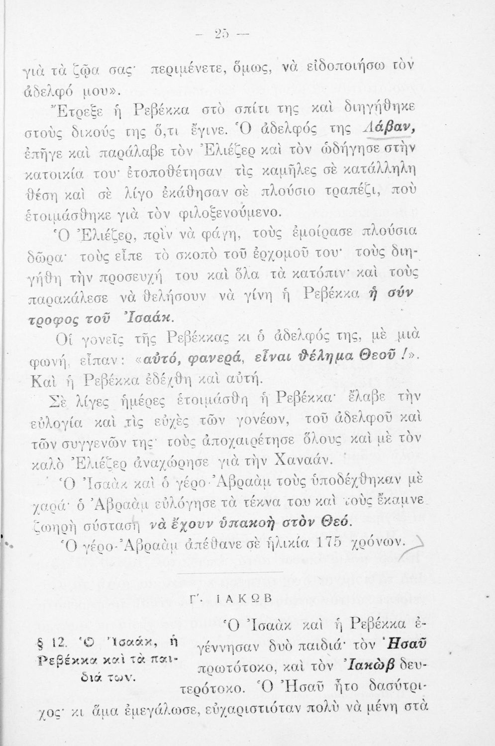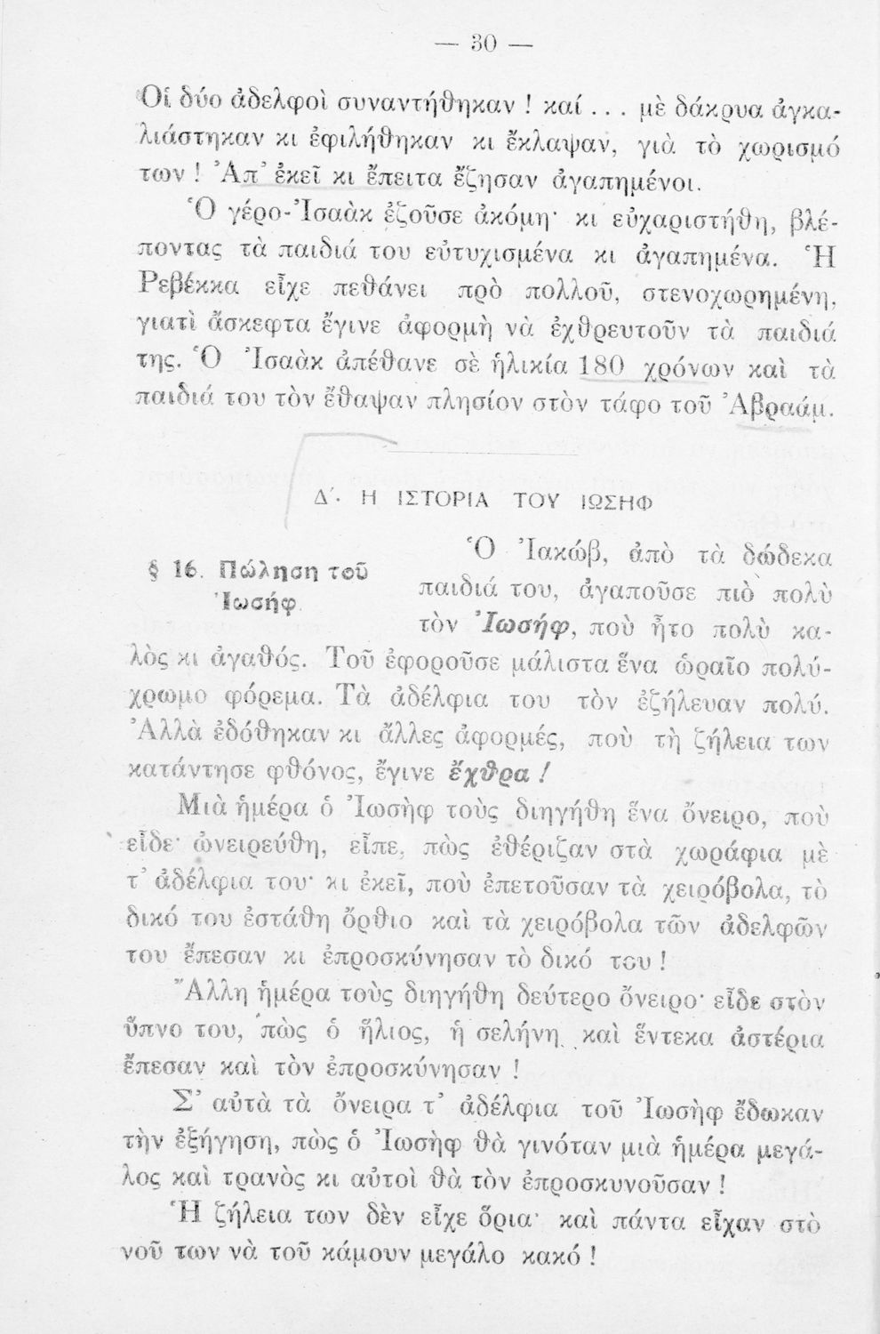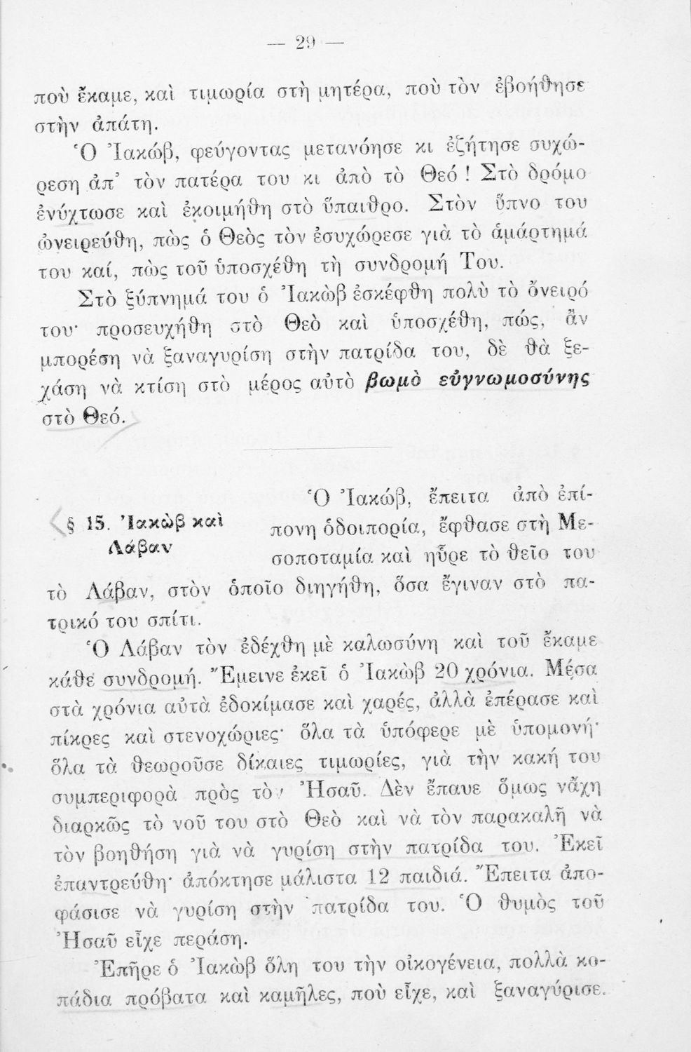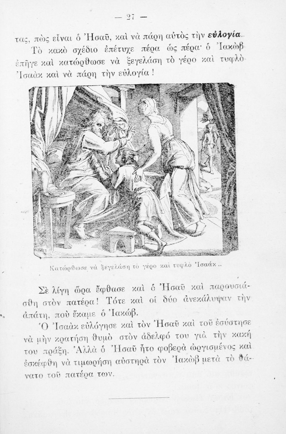 Σχολικό εγχειρίδιο Θρησκευτικών για Δημοτικό. Το βιβλίο περιέχει ιστορίες από την Παλαιά Διαθήκη. Ξεκινά με την δημιουργία του κόσμου και αναφέρει την ιστορία του εβραϊκού λαού.