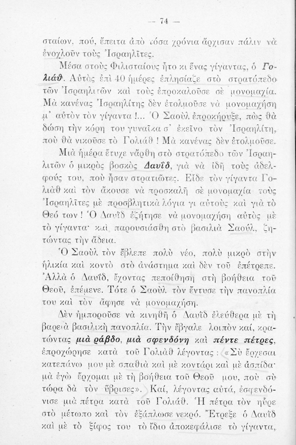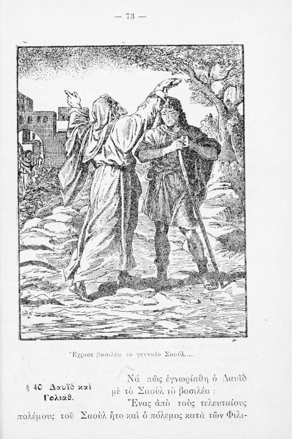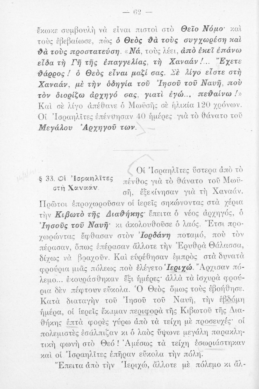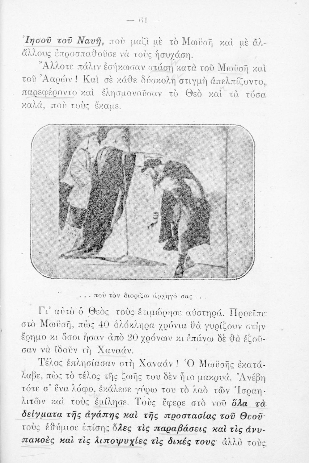 Σχολικό εγχειρίδιο Θρησκευτικών για Δημοτικό. Το βιβλίο περιέχει ιστορίες από την Παλαιά Διαθήκη. Ξεκινά με την δημιουργία του κόσμου και αναφέρει την ιστορία του εβραϊκού λαού.