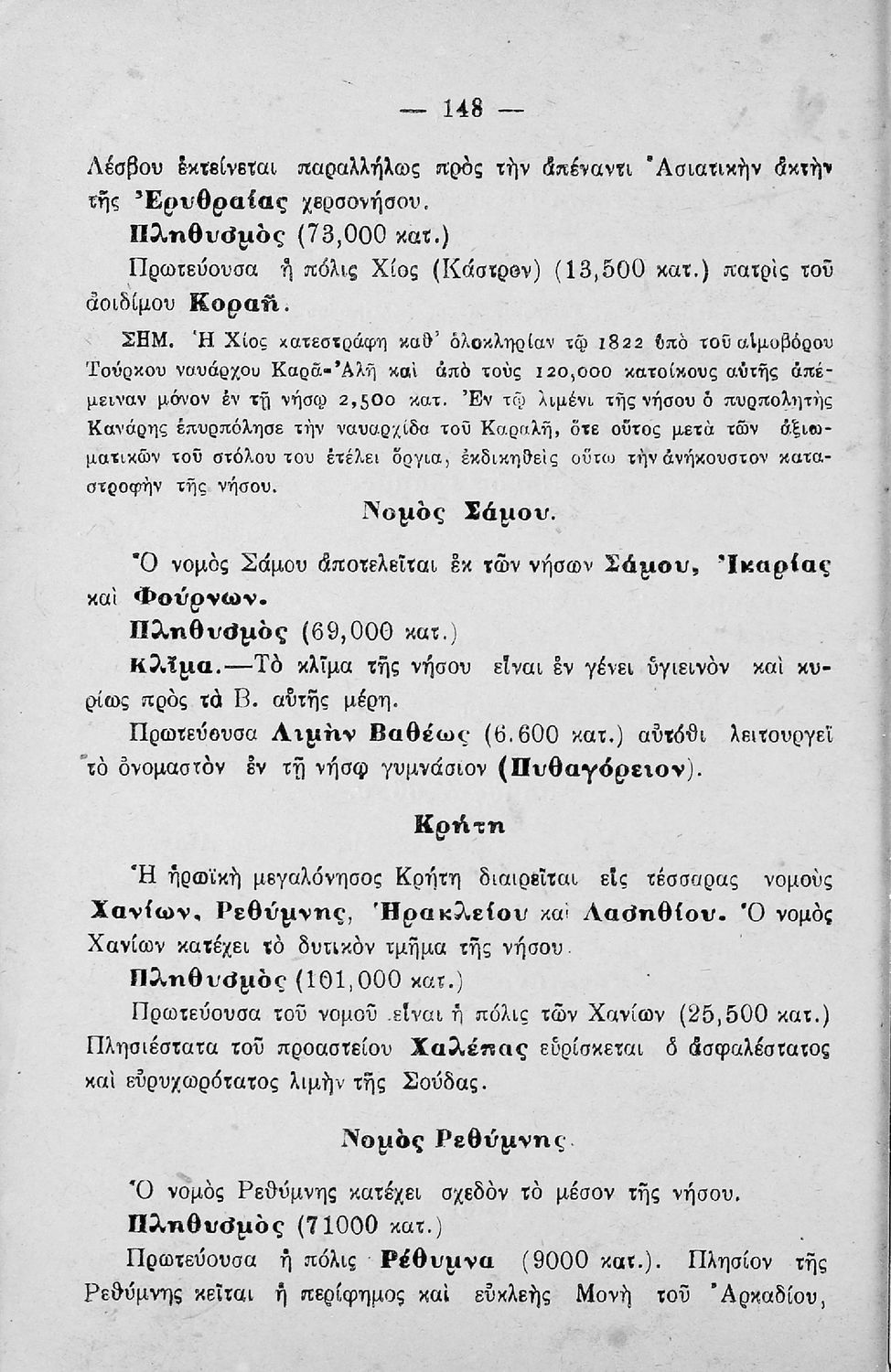 Σχολικό εγχειρίδιο Γεωγραφίας για τους μαθητές της Γ΄ τάξης των Ελληνικών Σχολείων και των Παρθεναγωγείων που περιέχει εισαγωγή στη μαθηματική, φυσική, φυσιογραφική και ανθρωπολογική γεωγραφία και παρουσιάζει ...