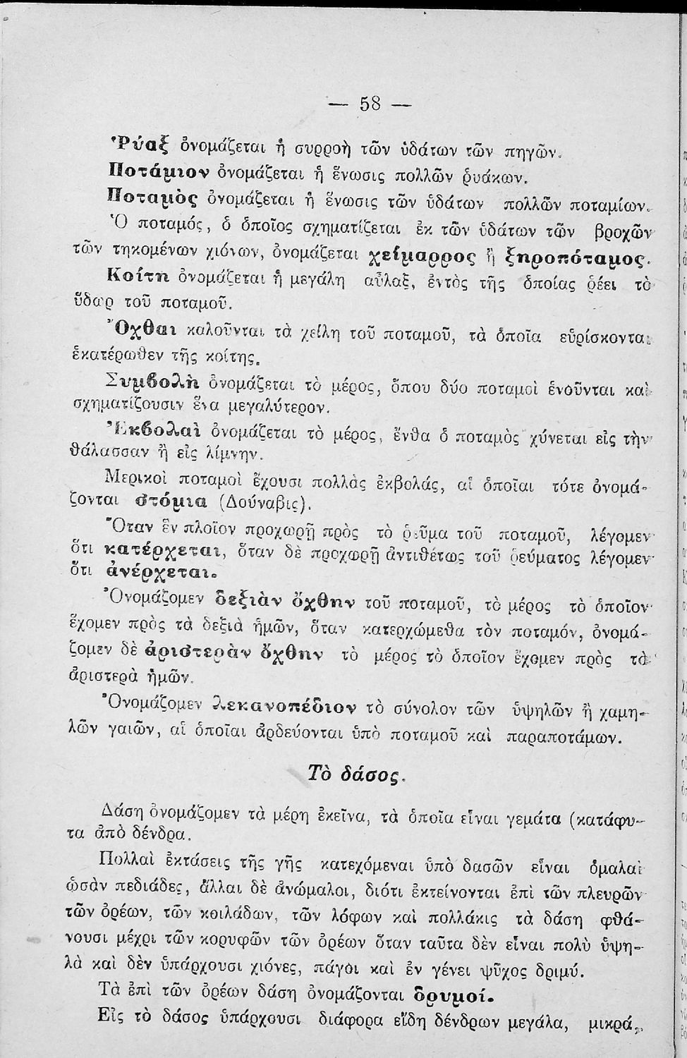 Σχολικό εγχειρίδιο Γεωγραφίας για τους μαθητές της Γ΄ τάξης των Ελληνικών Σχολείων και των Παρθεναγωγείων που περιέχει εισαγωγή στη μαθηματική, φυσική, φυσιογραφική και ανθρωπολογική γεωγραφία και παρουσιάζει ...