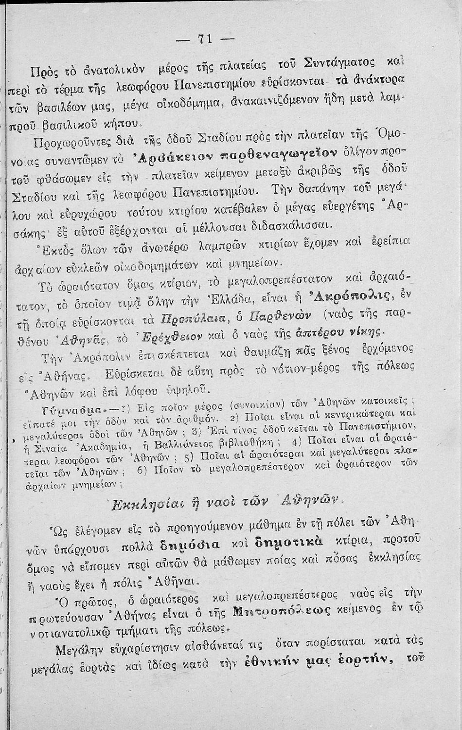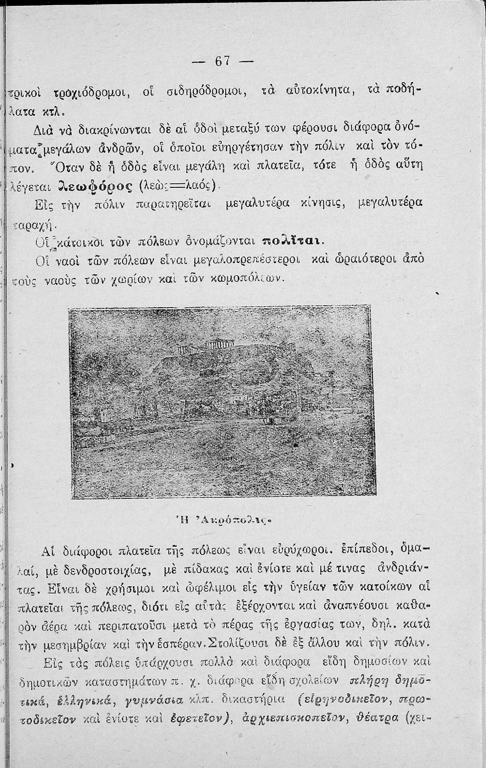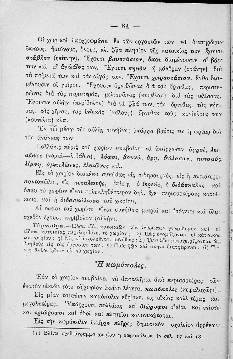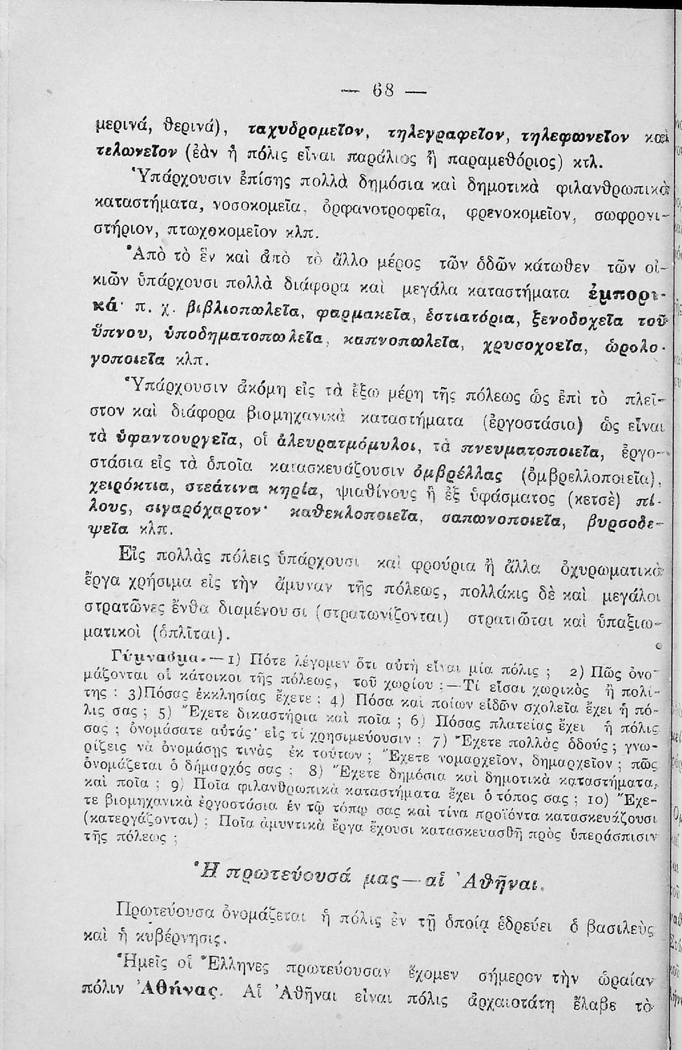 Σχολικό εγχειρίδιο Γεωγραφίας για την Γ' Δημοτικού. Είναι σύμφωνο με το αναλυτικό πρόγραμμα του 1913. Περιλαμβάνει στοιχεία πατριδογνωσίας, γεωγραφικούς ορισμούς και στοιχεία της Αττικής και των επαρχιών της.