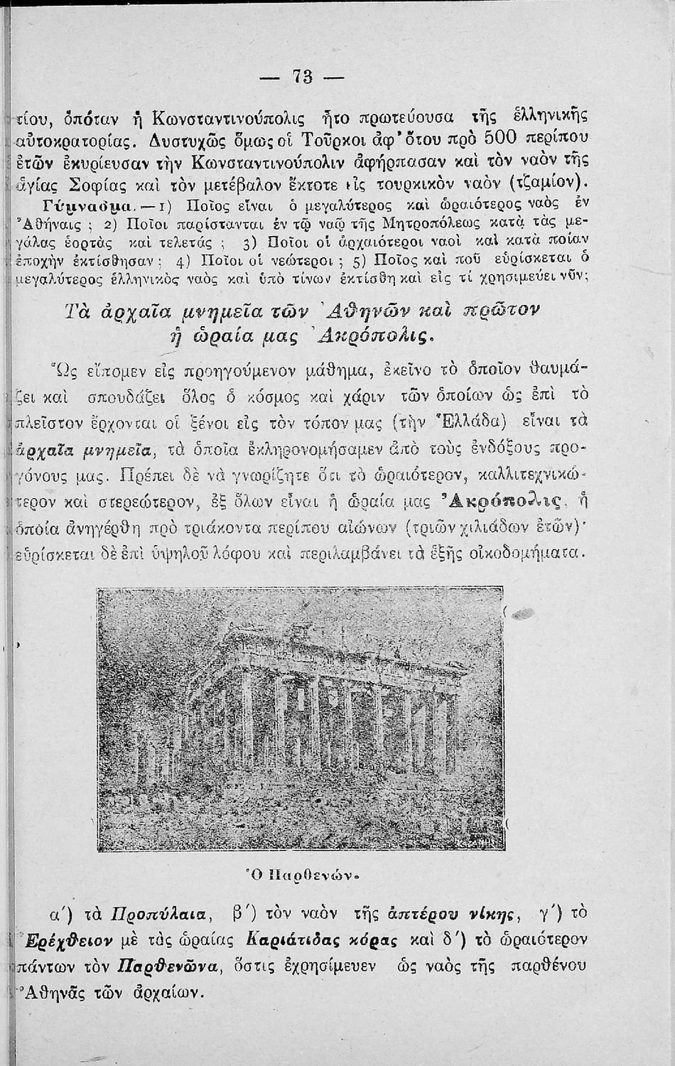 Τάξη:  Γ' Ελληνικού Σχολείου / Παρθεναγωγείο