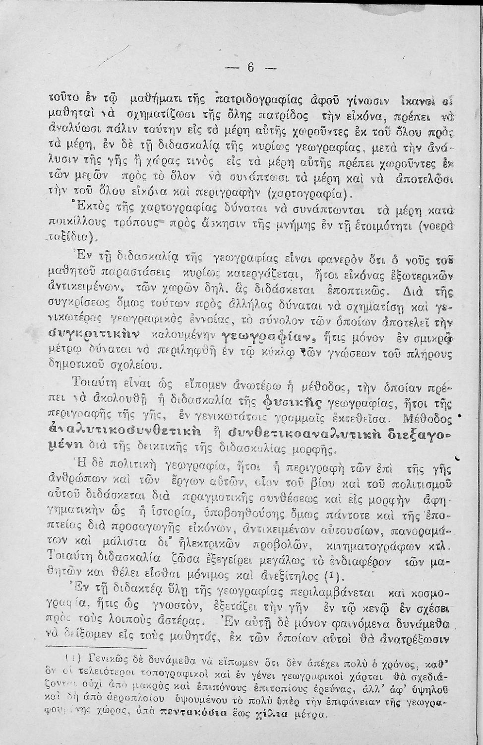 Σχολικό εγχειρίδιο Γεωγραφίας για τις Γ΄, Δ΄, Ε΄, ΣΤ΄ Δημοτικού που περιλαμβάνει εισαγωγή στην πατριδογνωσία και παρουσιάζει την φυσική και πολιτική γεωγραφία της Παλαιάς και Νέας Ελλάδας.