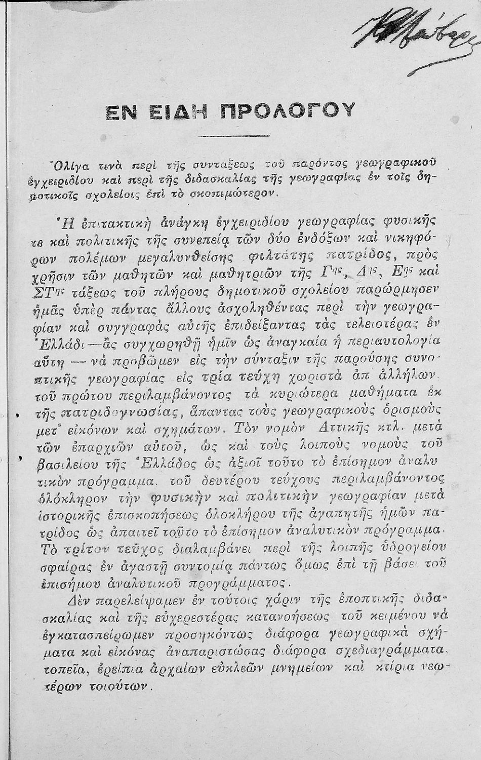 Σχολικό εγχειρίδιο Γεωγραφίας για τους μαθητές της Γ΄ τάξης των Ελληνικών Σχολείων και των Παρθεναγωγείων που περιέχει εισαγωγή στη μαθηματική, φυσική, φυσιογραφική και ανθρωπολογική γεωγραφία και παρουσιάζει ...