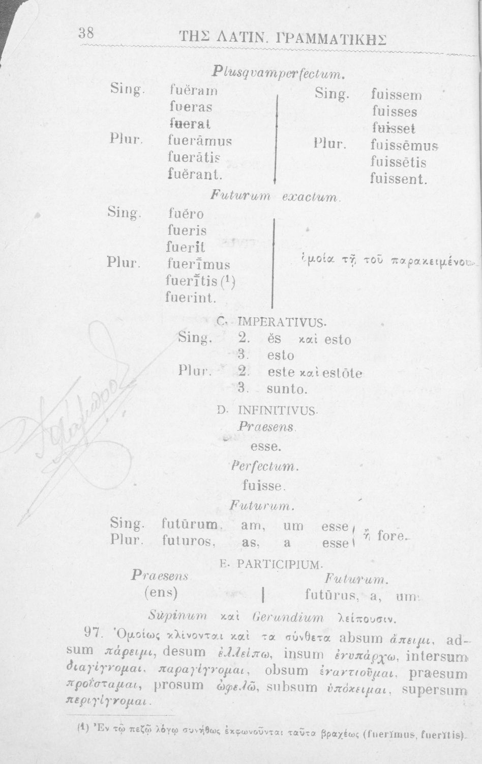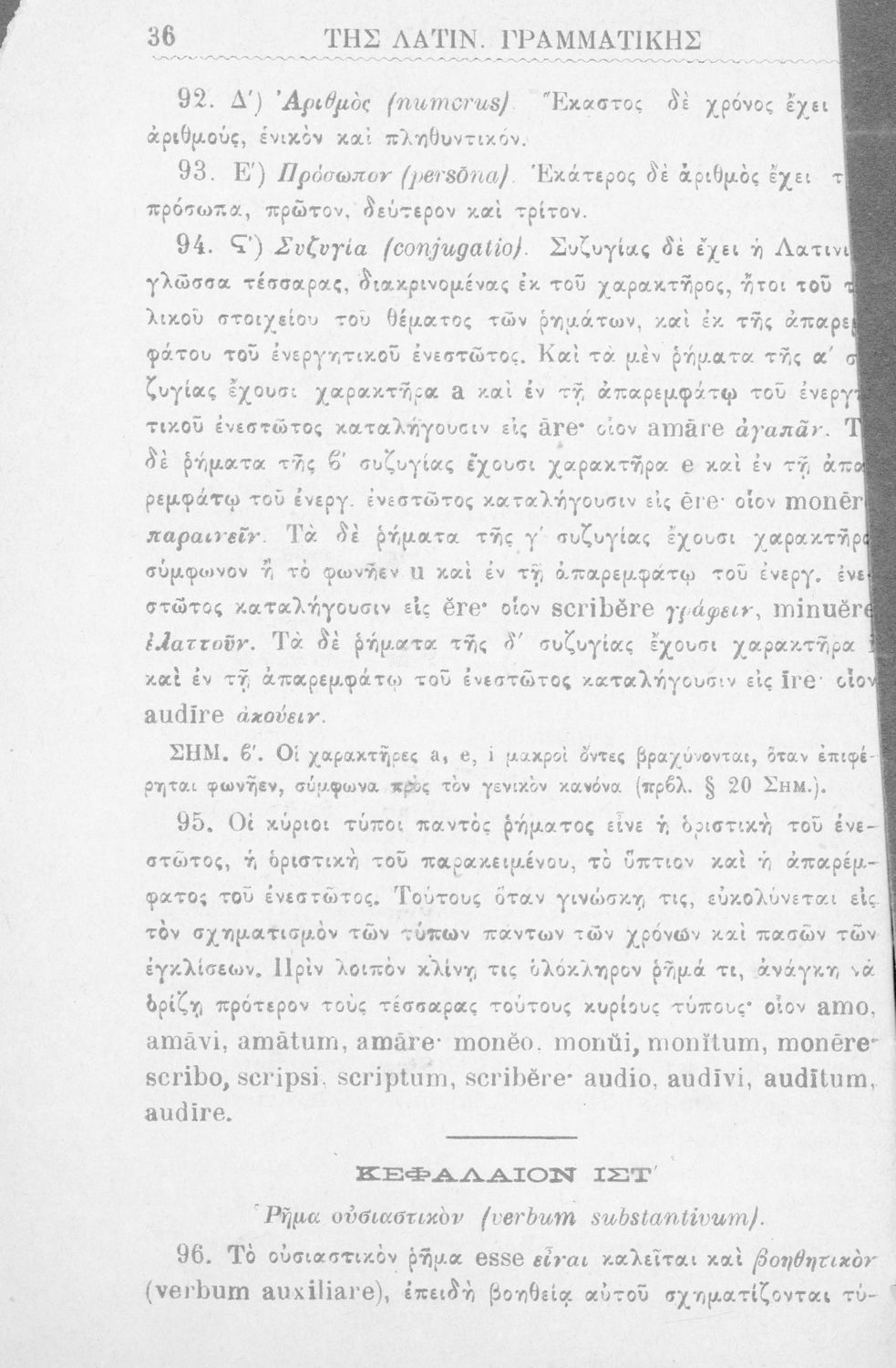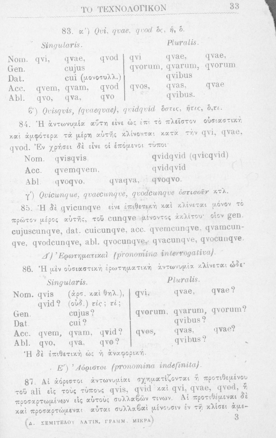 Σχολικό εγχειρίδιο Λατινικών για τα Ελληνικά Σχολεία που περιλαμβάνει τους γραμματικούς κανόνες.