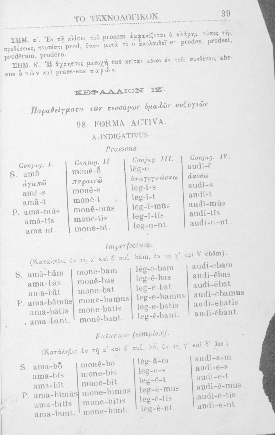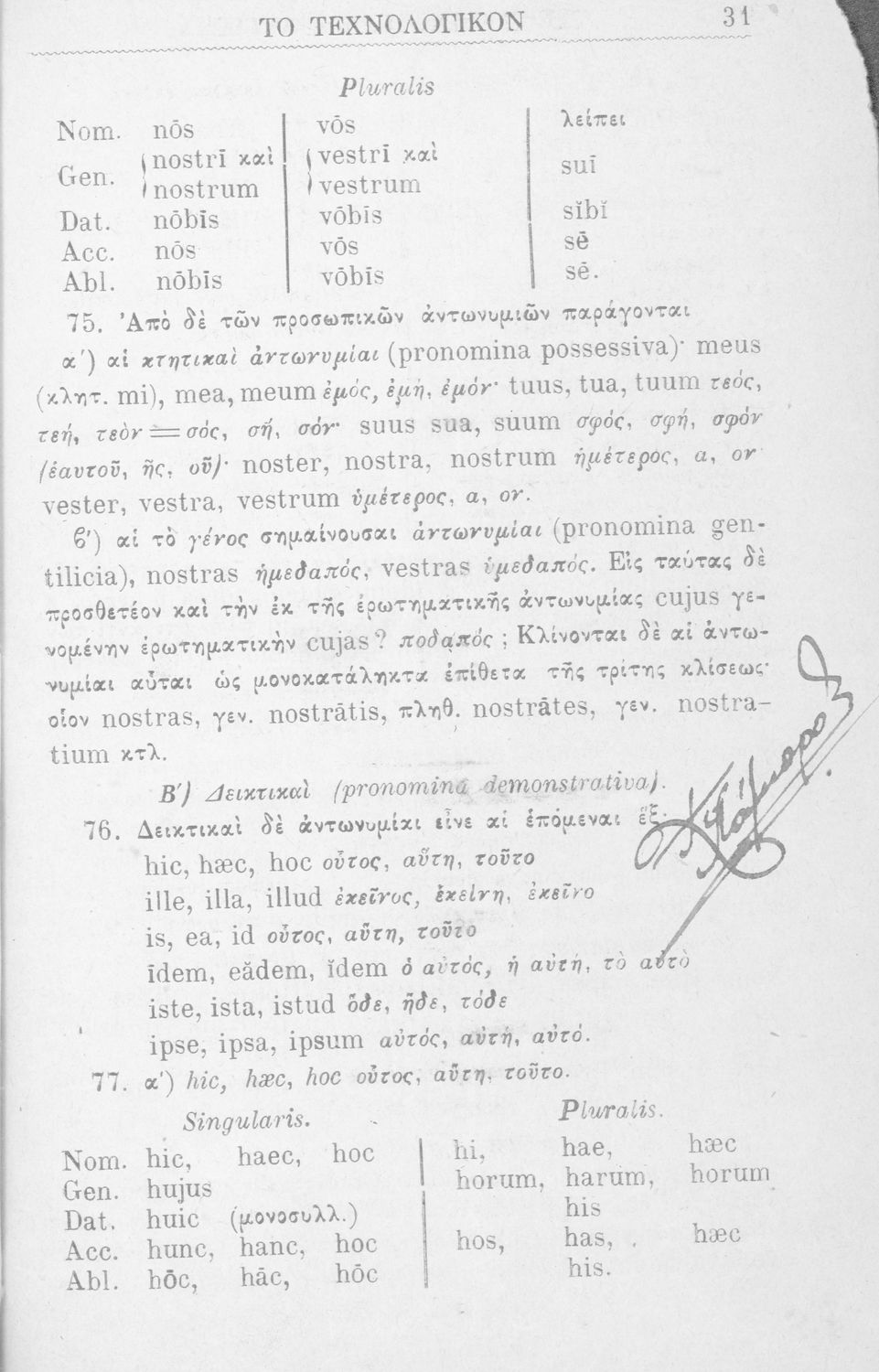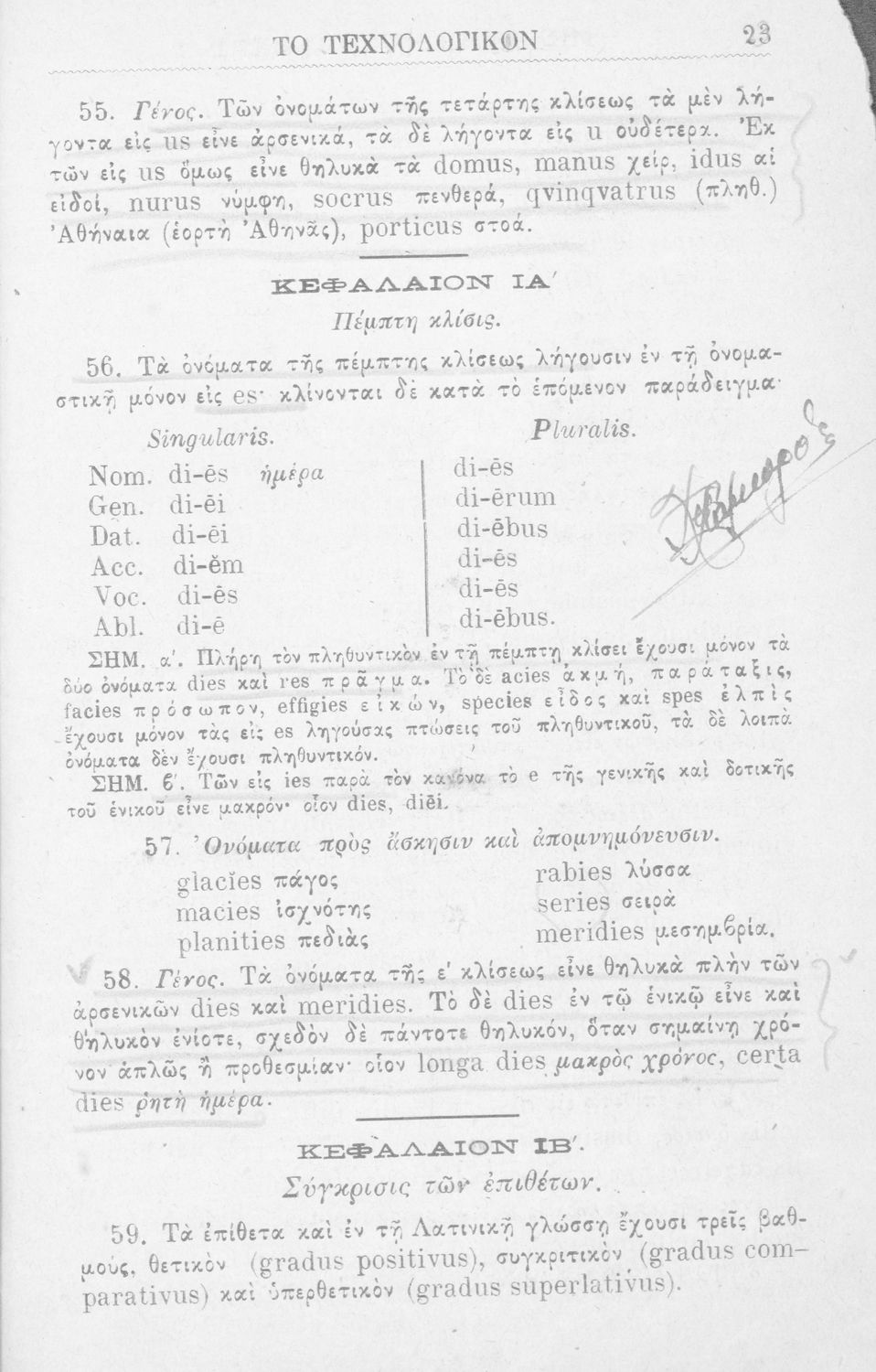 Σχολικό εγχειρίδιο Λατινικών για τα Ελληνικά Σχολεία που περιλαμβάνει τους γραμματικούς κανόνες.