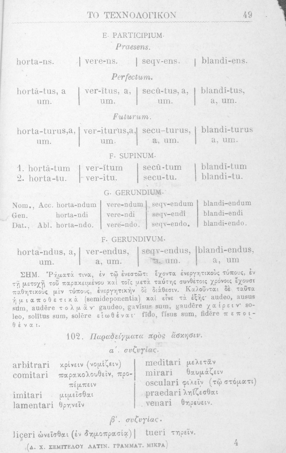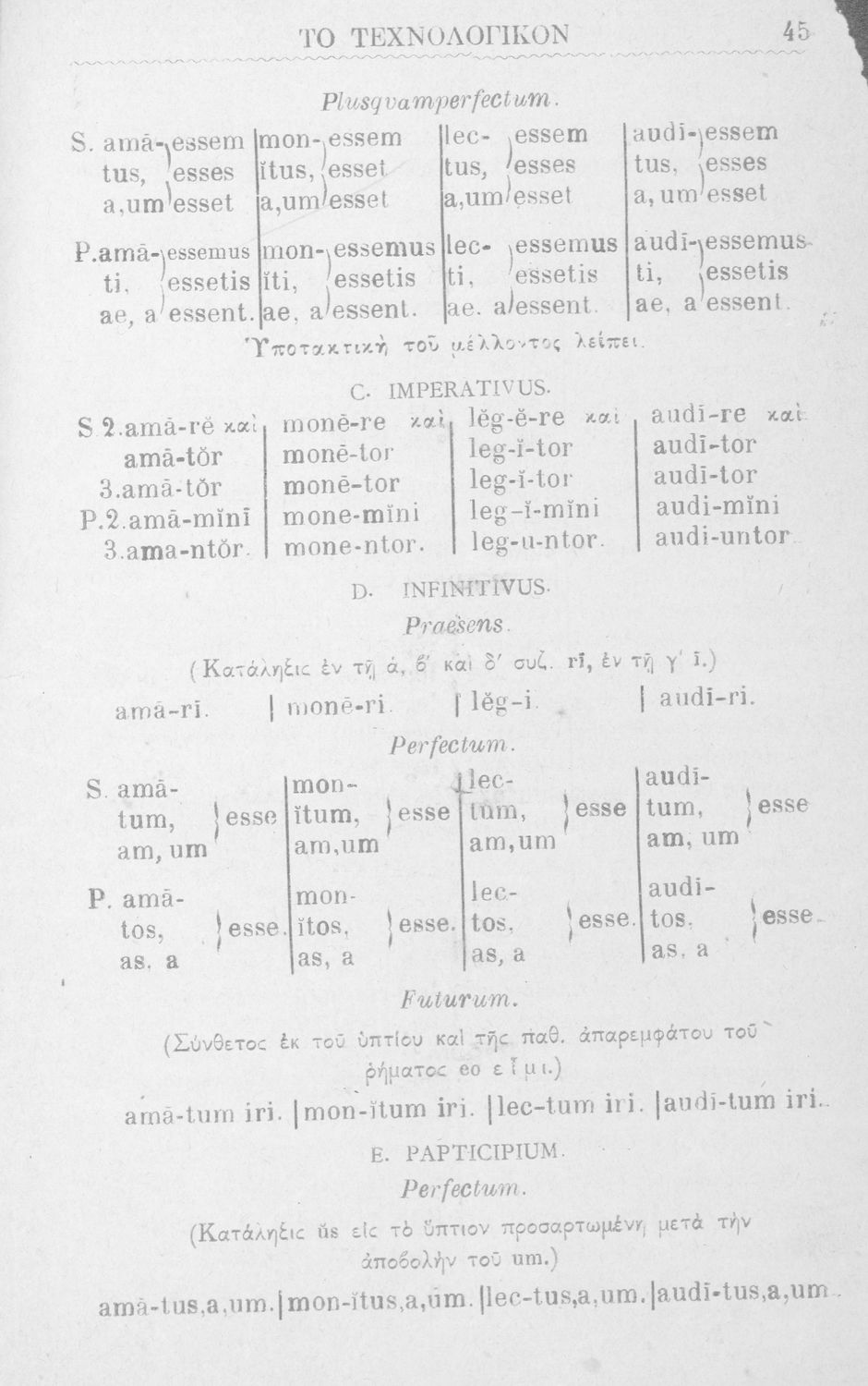Σχολικό εγχειρίδιο Λατινικών για τα Ελληνικά Σχολεία που περιλαμβάνει τους γραμματικούς κανόνες.